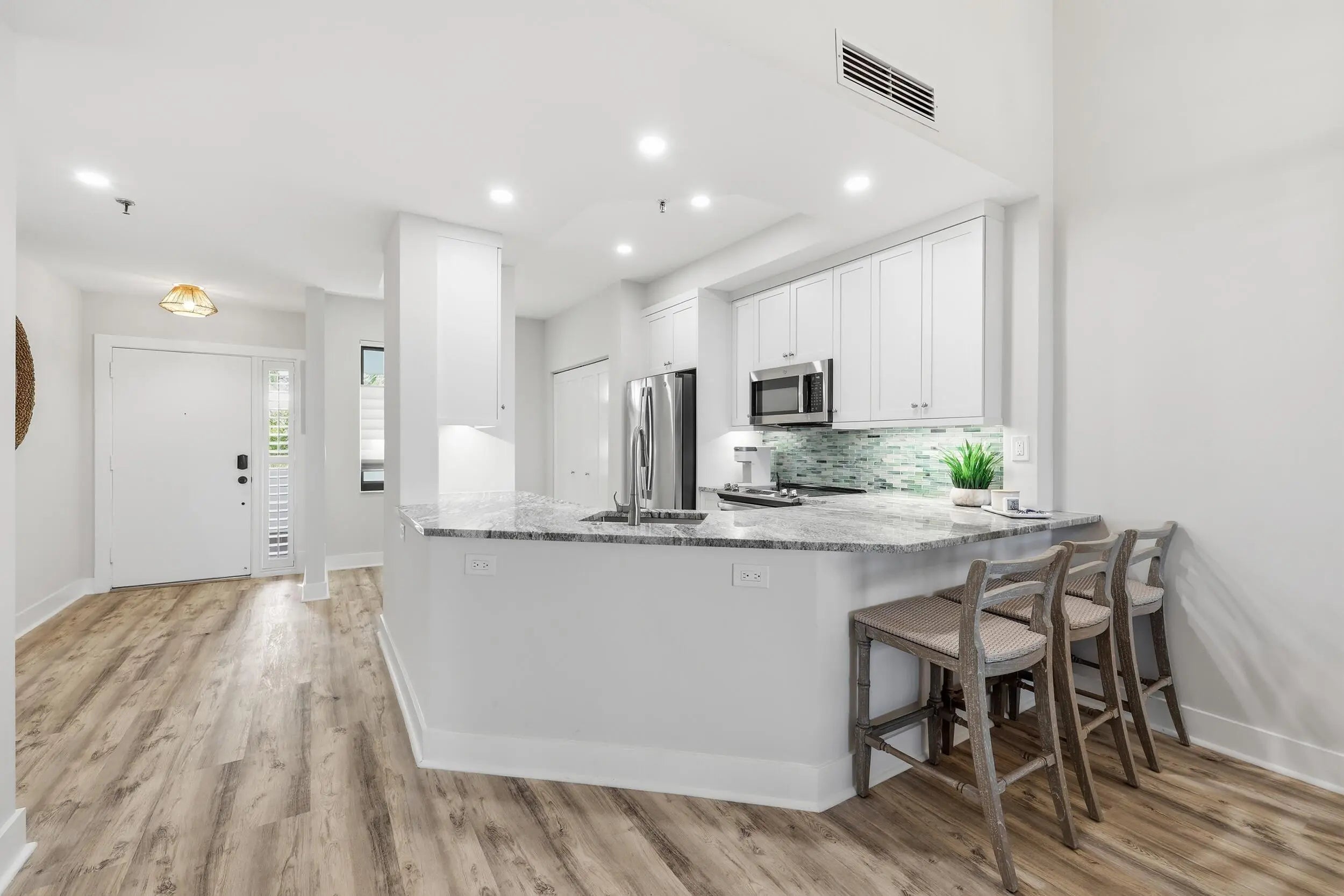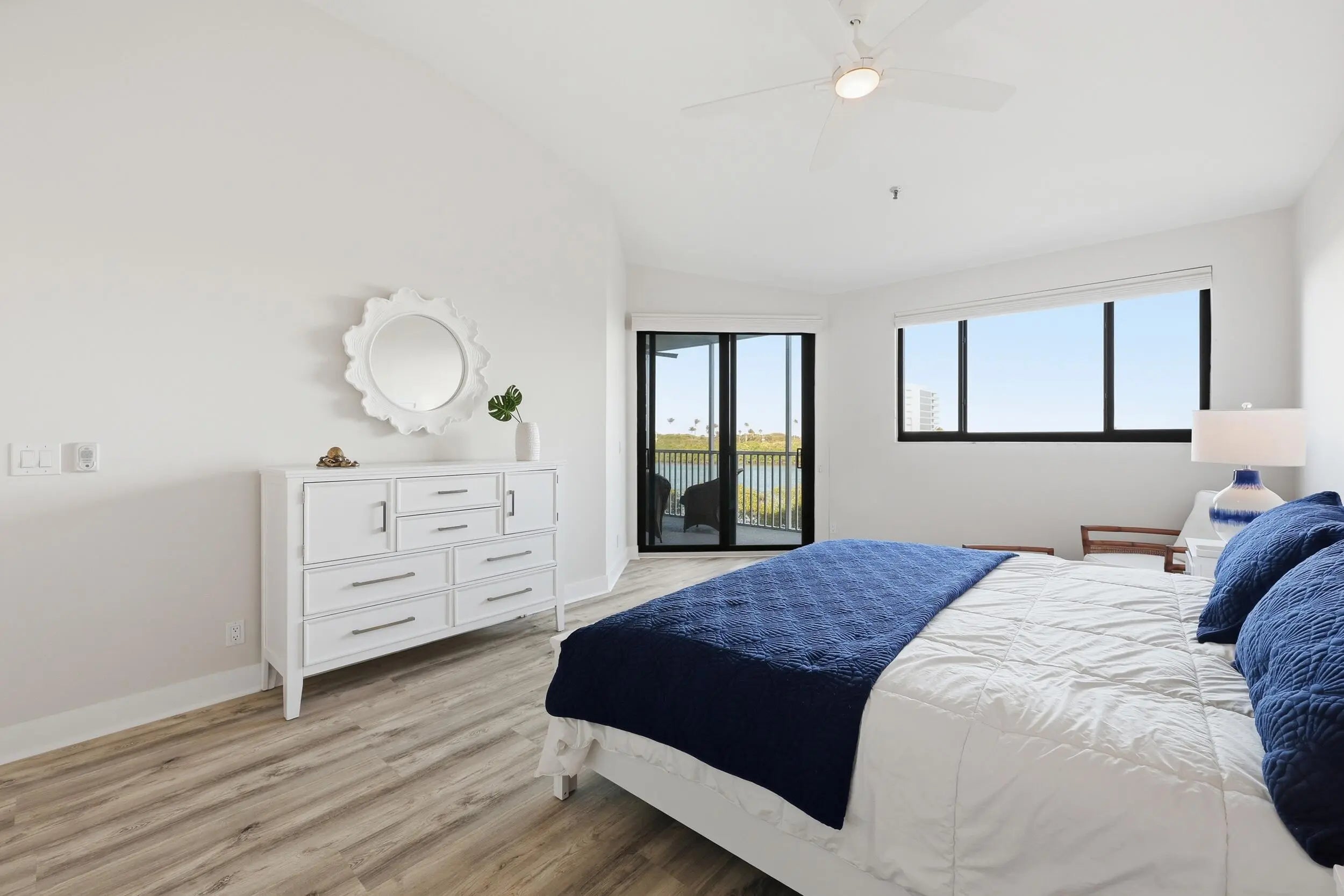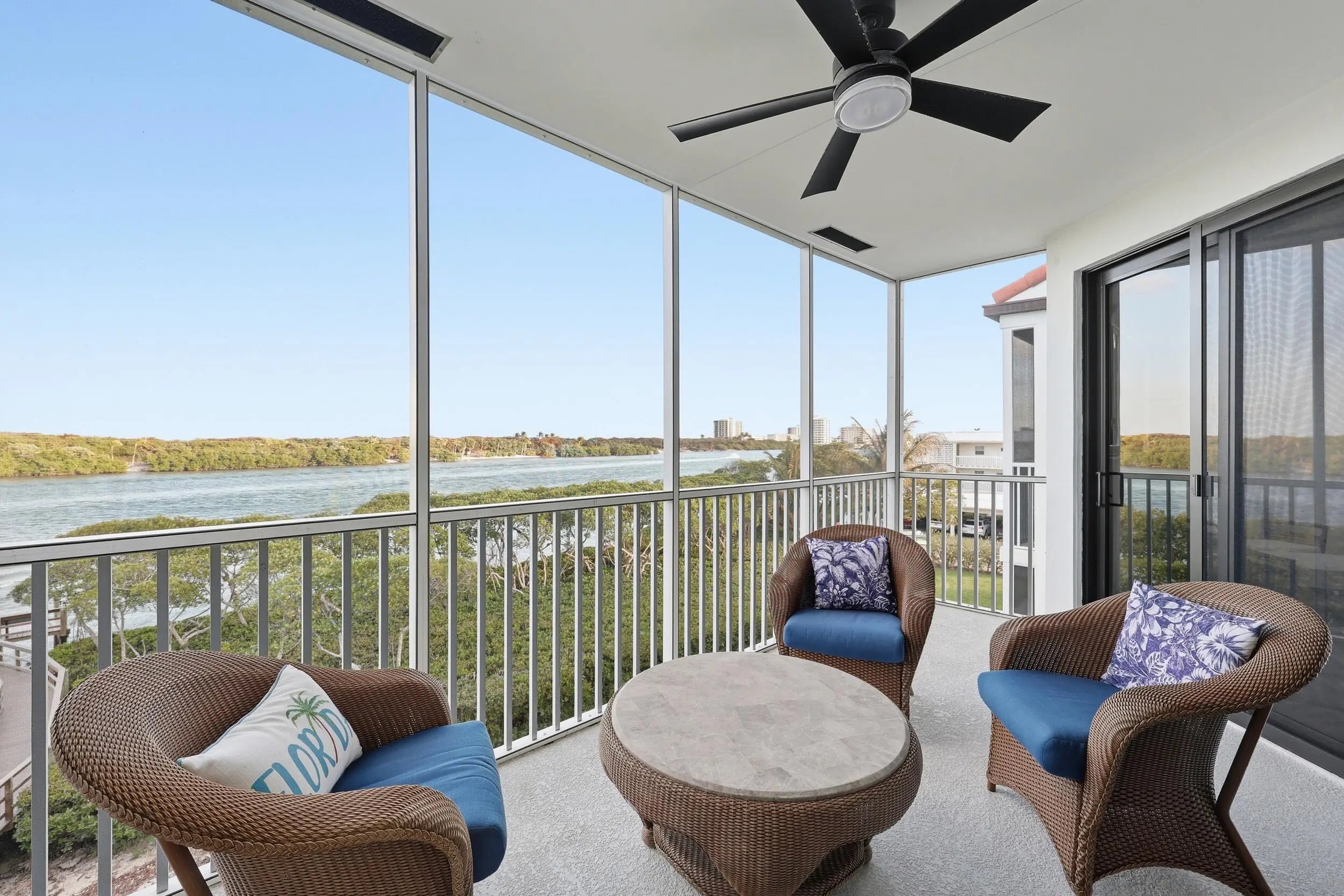 Beautifully updated 2-bedroom, 2-bathroom waterfront condo located on the third floor along the Intracoastal Waterway in Tequesta. This residence offers panoramic water views and high ceilings that enhance the light and open feel. Renovations include luxury vinyl flooring (2021), new paint and trim work, an updated kitchen and bathrooms, impact sliding glass doors and windows and new A/C (2023). The community features a serene pool and day docks for boaters with direct Intracoastal access. Designated, covered parking and ample guests spaces available. Ideally situated within walking distance to Tequesta's restaurants and shops, offering a convenient coastal lifestyle in a quiet, well-maintained setting.