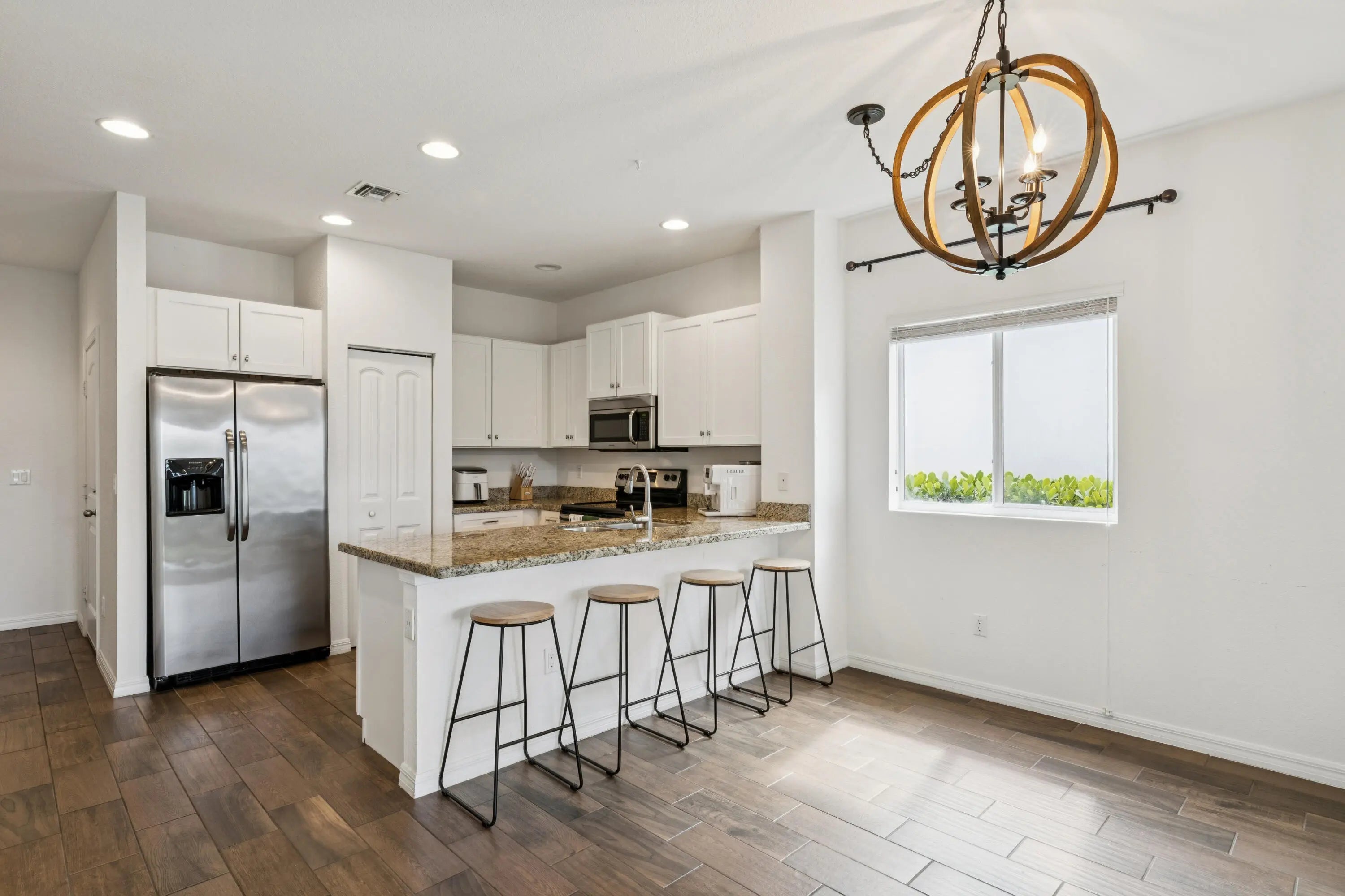 Newer construction corner-unit townhouse filled with natural light and high ceilings. The first floor features wood-look tile flooring, white cabinetry, and beautiful granite countertops. Each bedroom offers a walk-in closet. The spacious primary suite includes a private en-suite bath with double sinks, while the two additional bedrooms share a convenient Jack-and-Jill bathroom. This well-maintained home is equipped with smart features including a Ring doorbell, Nest camera, door lock, smart garage hub, and includes a grill. Ample guest parking is located nearby. Conveniently situated close to I-95, beaches, dining, and shopping. A must-see property offering comfort, style, and modern convenience.
