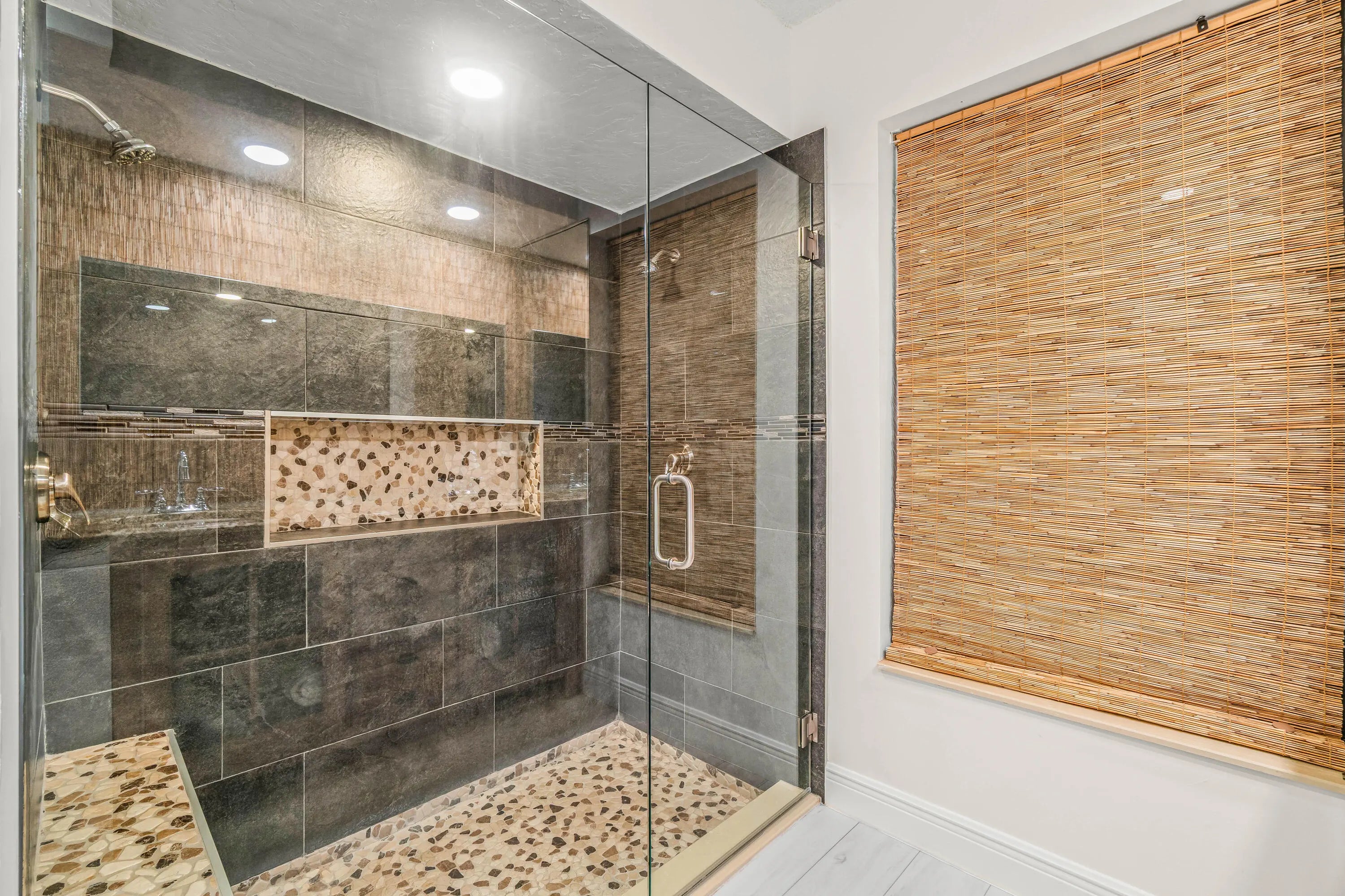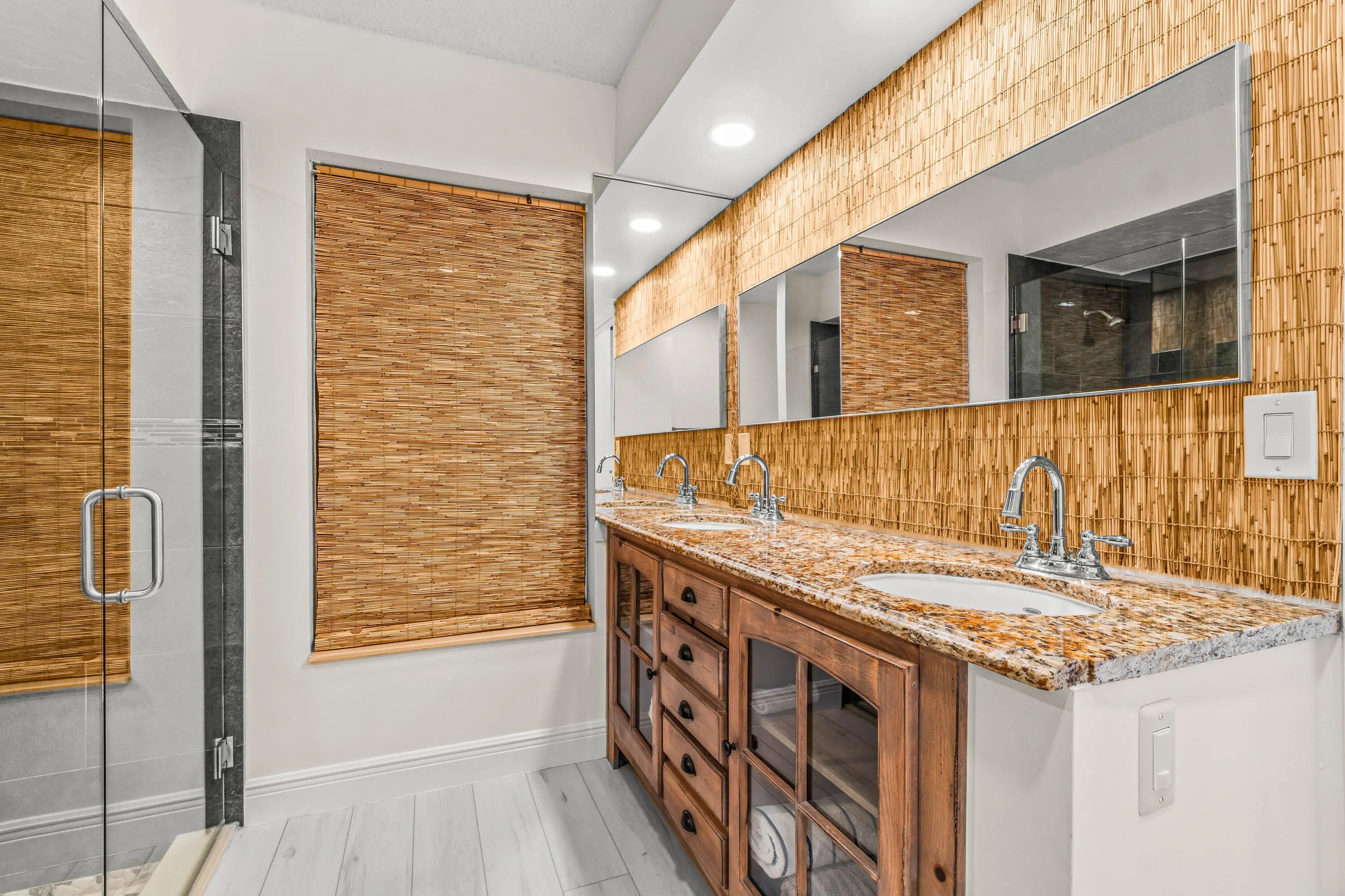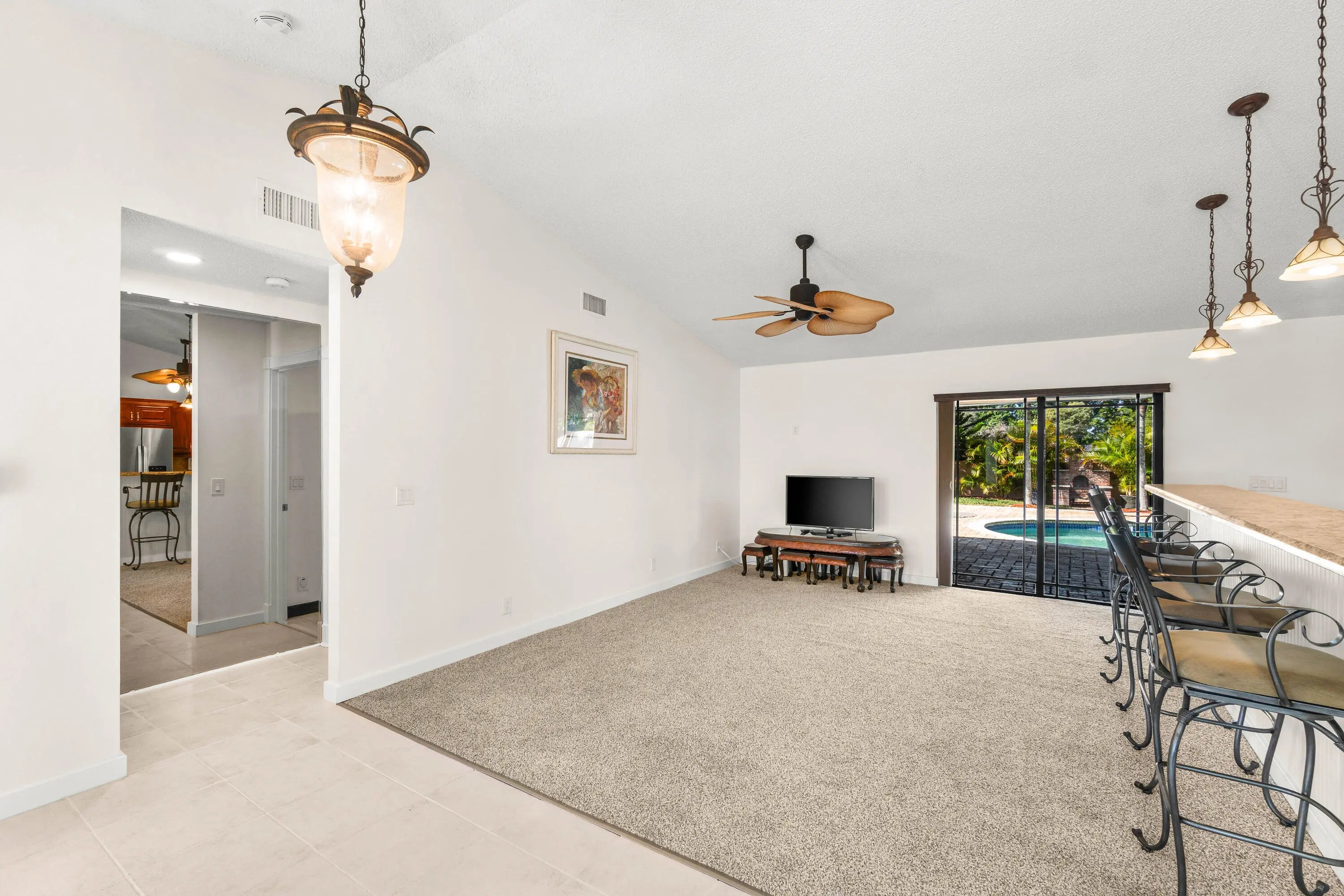 Absolutely stunning 3BR/2BA pool home on an oversized 10,000+ SF fully fenced lot in the highly desirable Estate Section of Boca Fontana! Situated by a quiet cul-de-sac with minimal traffic and A-rated schools, this move-in ready home offers the perfect blend of privacy, space, and style. The backyard is a true showpiece featuring a breathtaking updated freeform pool surrounded by gorgeous travertine marble decking and expansive patio space ideal for entertaining. Inside, enjoy volume ceilings, an open-concept split floor plan, and a beautifully upgraded granite kitchen with stainless steel appliances and center island. The oversized primary suite features a walk-in closet and renovated bath. New Roof 2025. accordion shutters, hurricane-rated garage door. HOA $205 cable tv, 2 heated pools.
