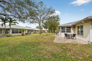 Charming Updated Home with Outdoor Patio Retreat. Step into comfort and style in this beautifully updated 2-bedroom, 2-bath residence with updated kitchen, recently painted, stylish redesigned guest bathroom and for the primary bathroom a walk in shower. Enjoy the spacious living room freshly painted combined with dining area. French doors open to an enclosed patio that can serve as a cozy den, office, or relaxation space. Continue outside to the outdoor patio, perfect for enjoying the Florida weather with friends. This seamless indoor-outdoor flow makes the home feel like your own personal retreat. Located in the desirable Covered Bridge community, residents enjoy a wealth of amenities including a clubhouse, pools, tennis, pickleball, walking trails and enjoying the serene lake views. Shopping, restaurants, golf, theaters, and bus routes are all nearby, and the ocean is about eight miles away. A perfect blend of comfort, convenience is ideal for anyone seeking a fresh, inviting place to call home. Roof Installed 2024.