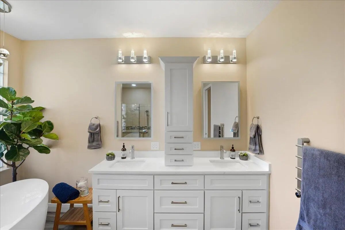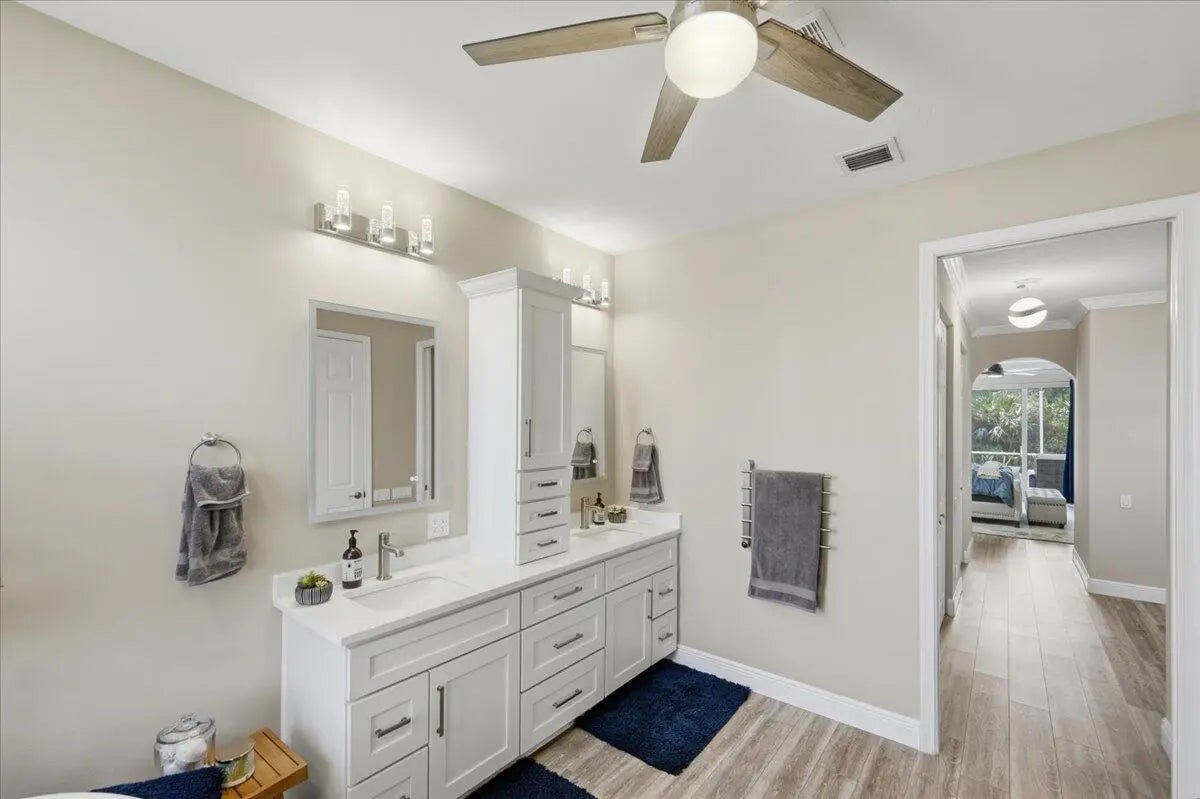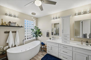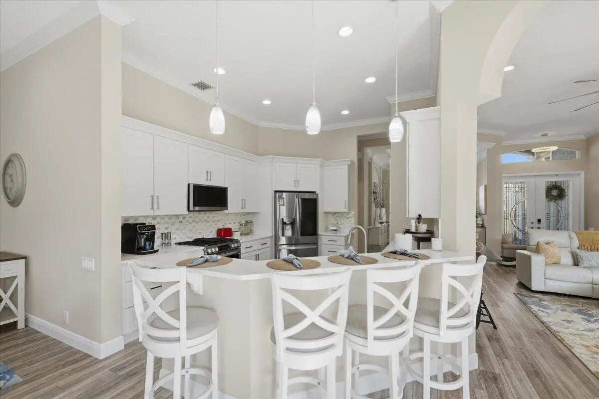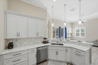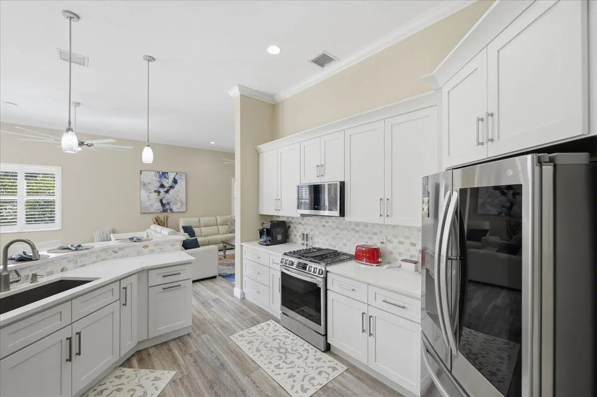 Check out this 3 BED 2 BATH home located in the 55+ Cascades community! This home is loaded with upgrades. The kitchen offers quartz counters, upgraded white cabinets, marble backsplash, gas range, deep granite sink, and all new stainless appliances. You will love the fully redone master and guest bathrooms, whole house smart system, LVP flooring throughout, crown molding, recessed lighting, and plantation shutters. The master suite features a tray ceiling, additional office space, 2 custom walk-in closets, jacuzzi tub, tiled shower with rain head, dual sinks, smart mirrors, and heated towel racks. Additional perks include an epoxy 2 car garage with EV charger, storage racks, new tankless water heater, custom closets, accordion shutters, and an oversized screened patio with preserve view.