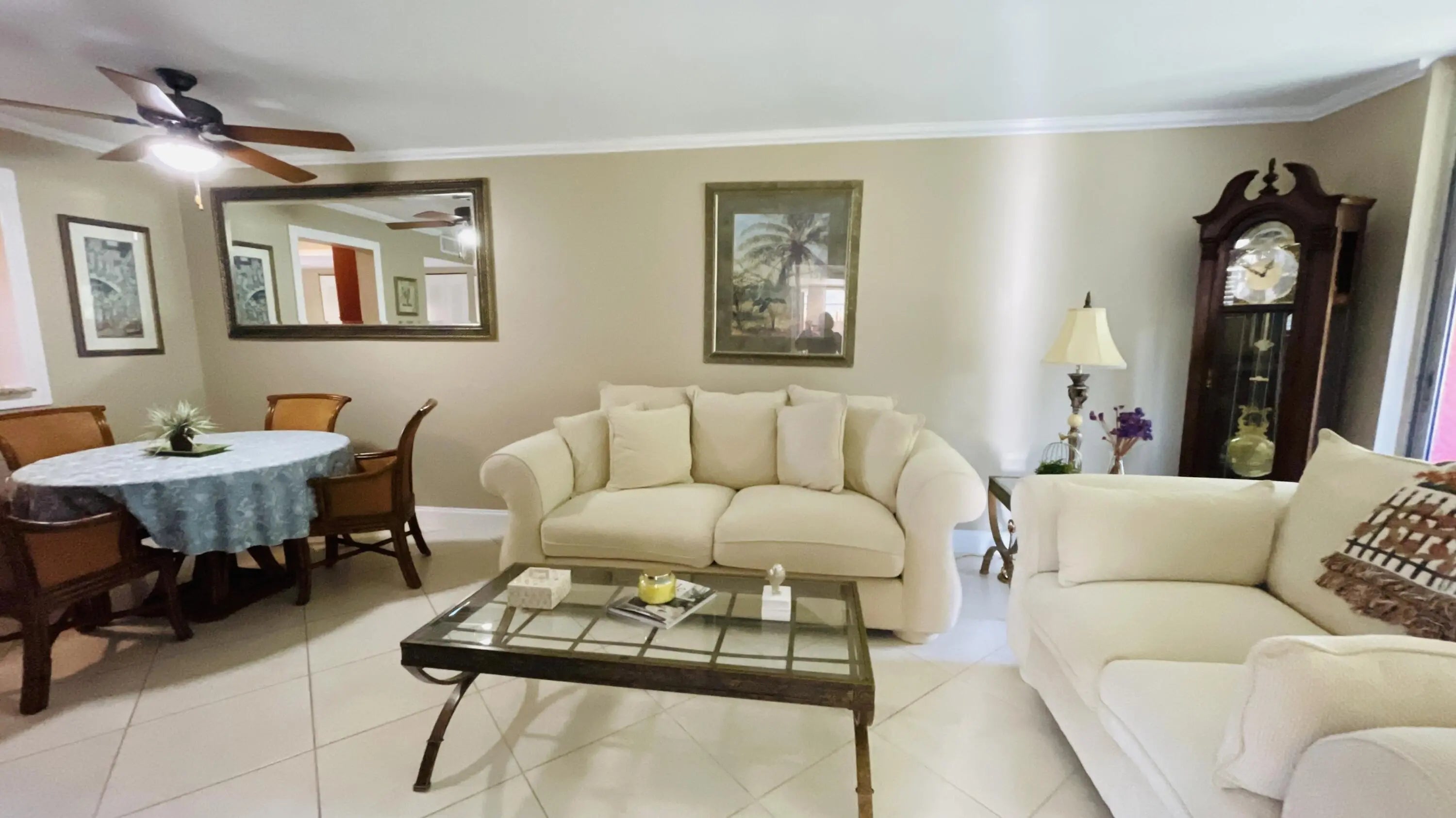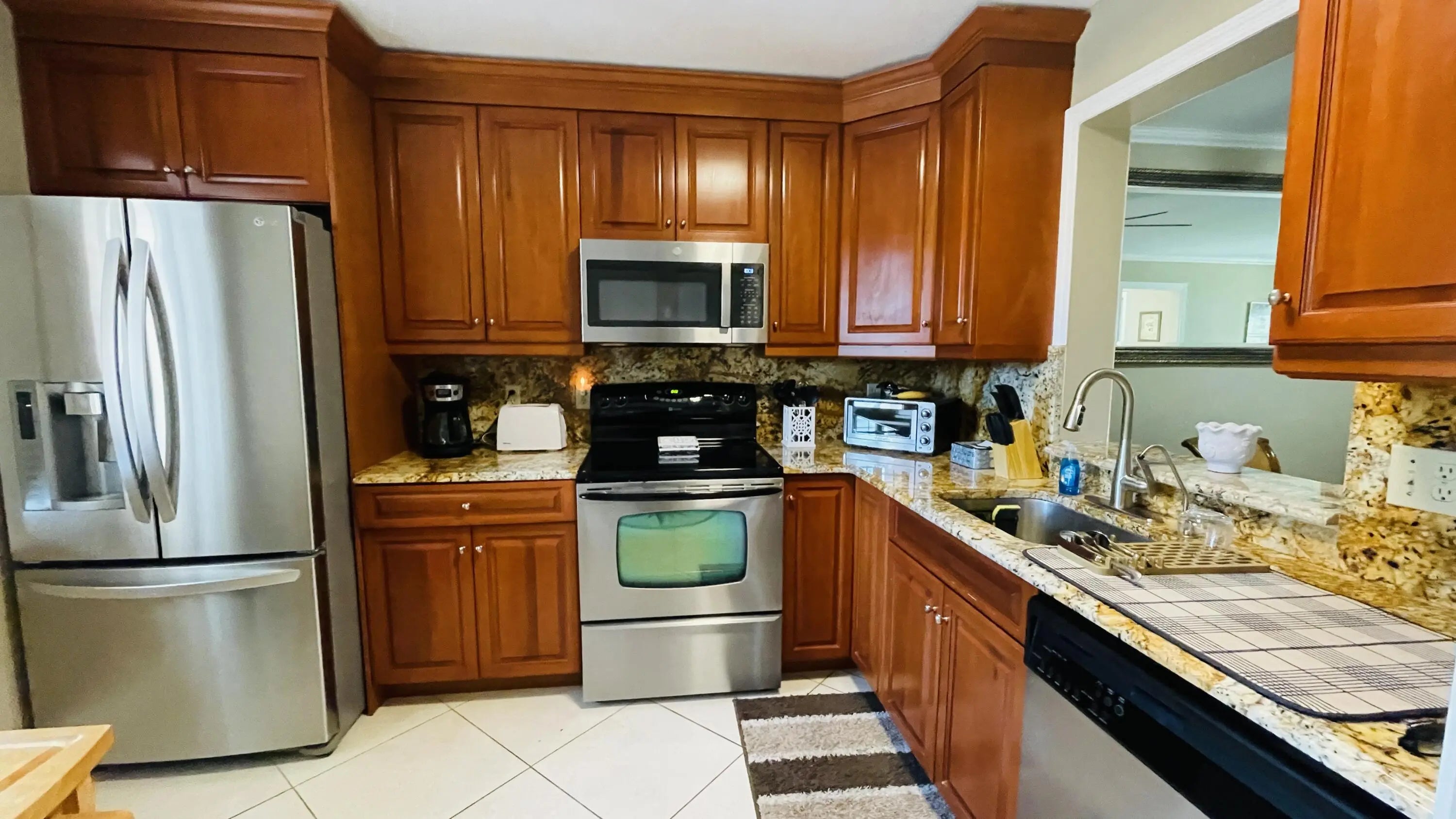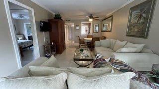 Beautifully renovated second-floor corner furnished annual or seasonal rental available. Many upgrades include tiled floors on the diagonal, granite countertops, plantation shutters, a lazy Susan corner cabinet, crown molding and a glass-enclosed patio. There are built-in closets, a separate laundry room , and upscale amenities including Indoor and outdoor pools, theater of the performing arts, fitness rooms, clubs, shows, tennis and bocce ball courts, and walking paths around the lakes.