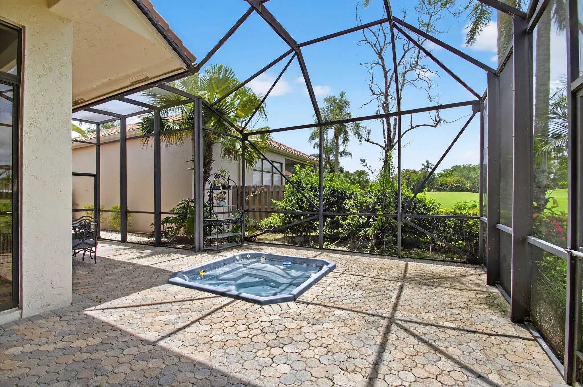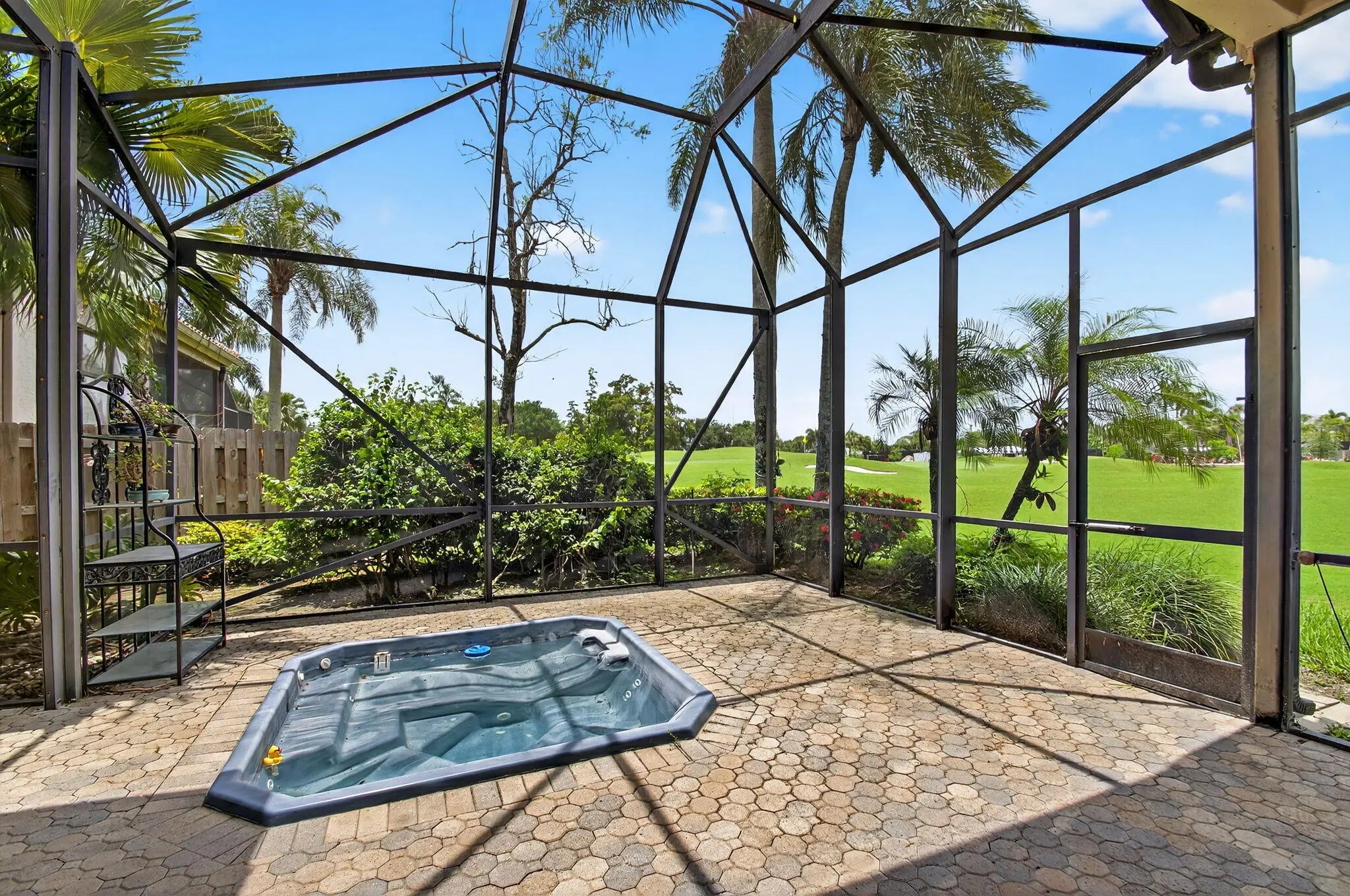 Welcome to your new home in Wycliffe Golf & Country Club! Situated on the 9th hole of the prestigious West Golf Course, this single-family residence offers panoramic golf & clubhouse views right from your backyard. The expansive, screened-in & covered patio with in-ground jacuzzi creates the perfect setting for outdoor living, relaxation, & entertaining. The home features a new roof (2021) and a remodeled open-concept kitchen that flows seamlessly into the main living space. A Social membership is available for purchase, giving you access to Wycliffe's renowned amenities, social events, dining, and more. Whether you're starting your mornings with a golf course sunrise or winding down in the jacuzzi under the stars, this home offers the ideal setting to enjoy the best of Florida living. Wycliffe Golf & Country Club Is a mandatory membership community, with one of the best lifestyles In South Florida. Showcasing two newly renovated challenging 18 hole championship golf courses, with contrasting styles. There are 14 Har-Tru tennis courts, with center court Stadium seating. The sports court features 8 pickle ball courts, plus 4 Bocce courts. Private dining room "Flavours" surpasses the highest expectation. The "Watermark", dining room continues to have great parties and entertainment, and who doesn't love our "Grill" for breakfast, lunch and dinner. Wait until you see "The Cliff". This lobby bar and lounge is the highlight of the recent renovation. In addition, we love our state-of-the-art fitness center, with Pilates studio and classes, aerobics, yoga, spin, water aerobics, personal trainers and more fitness classes than a person could take in a day. Thyre is our full-service spa, offering retail products along with fine services. Enjoy the sauna, steam, and Olympic Size Swimming pool. Wycliffe offers Ladies and Men's card rooms, clubs and organizations for every interest. Fabulous programs and special events, lots of dinner dances, trivia nights, shows and activities. When needed we even have physical therapy on campus. Best of all we are located just minutes from the International Polo and Dressage and Jumping events, at the Wellington Equestrian Center. Centrally located, Wycliffe has easy access to Boca Raton, Delray Beach, Palm Beach, City Place and the West Palm Beach airport. Wycliffe homeowners association provides Comcast high speed internet, telephone and cable TV to contain the X1 platform with whole-house DVR, High Definition and 3 additional HD boxes which cover up to 4 TVs with voice activated remotes, including HBO and Showtime. The high speed internet service of 150 mbps speed and telephone service, local and long distance calling, included in the HOA. All landscaping maintenance, sprinkler systems, exterior painting, pressure cleaning the roofs, and security is included in the quarterly HOA maintenance fee. Wycliffe has roving guards, paramedics on campus, monitored alarm systems, and manned gates. Yes You Deserve it!