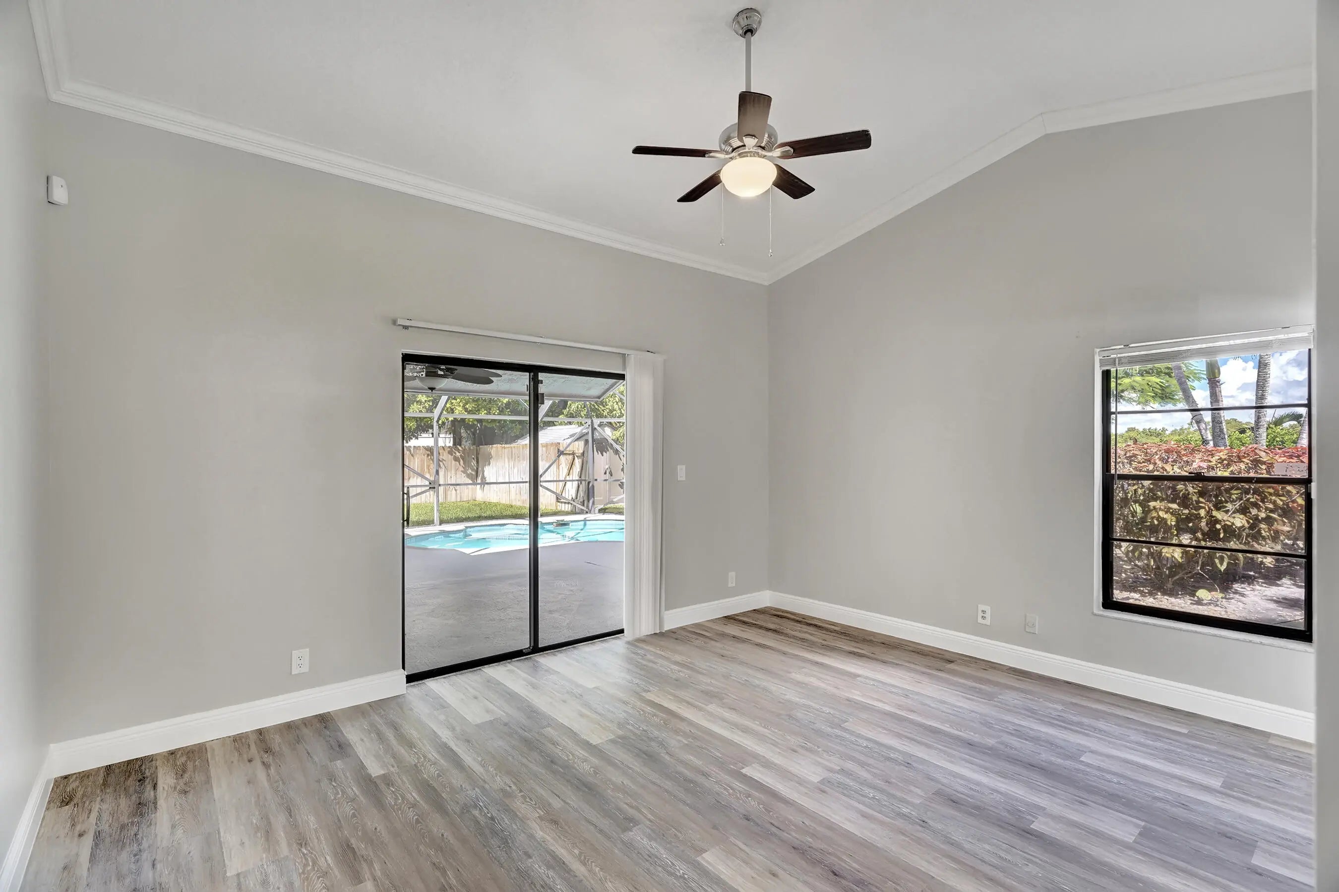 Great cul-de-sac home on lake with pool. Freshly painted inside 3 bedrooms 2.5 bath + bonus living space home for rent in sought after West Boca - Country Landings Estates in Loggers Run. 1680+ sq feet. Single story open concept living area with upgraded white cabinet kitchen: granite countertops, stainless steel appliances, kitchen island, and plenty of storage. Master bedroom has 2 spacious walk-in closets & renovated master bathroom. New floors in all bedrooms. Landscaping is beautifully done with an electronic sprinkler system. Garage has been converted to extra living space, but still space for storage, bikes, etc... Additional outside shed for storage. Fenced backyard and lanai with pool & spacious patio for entertaining. Move in ASAP no approval.