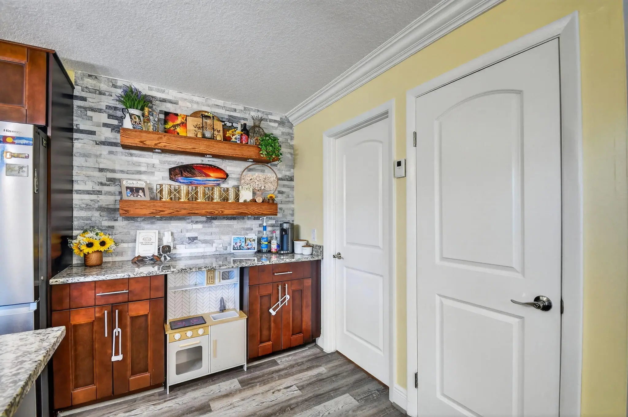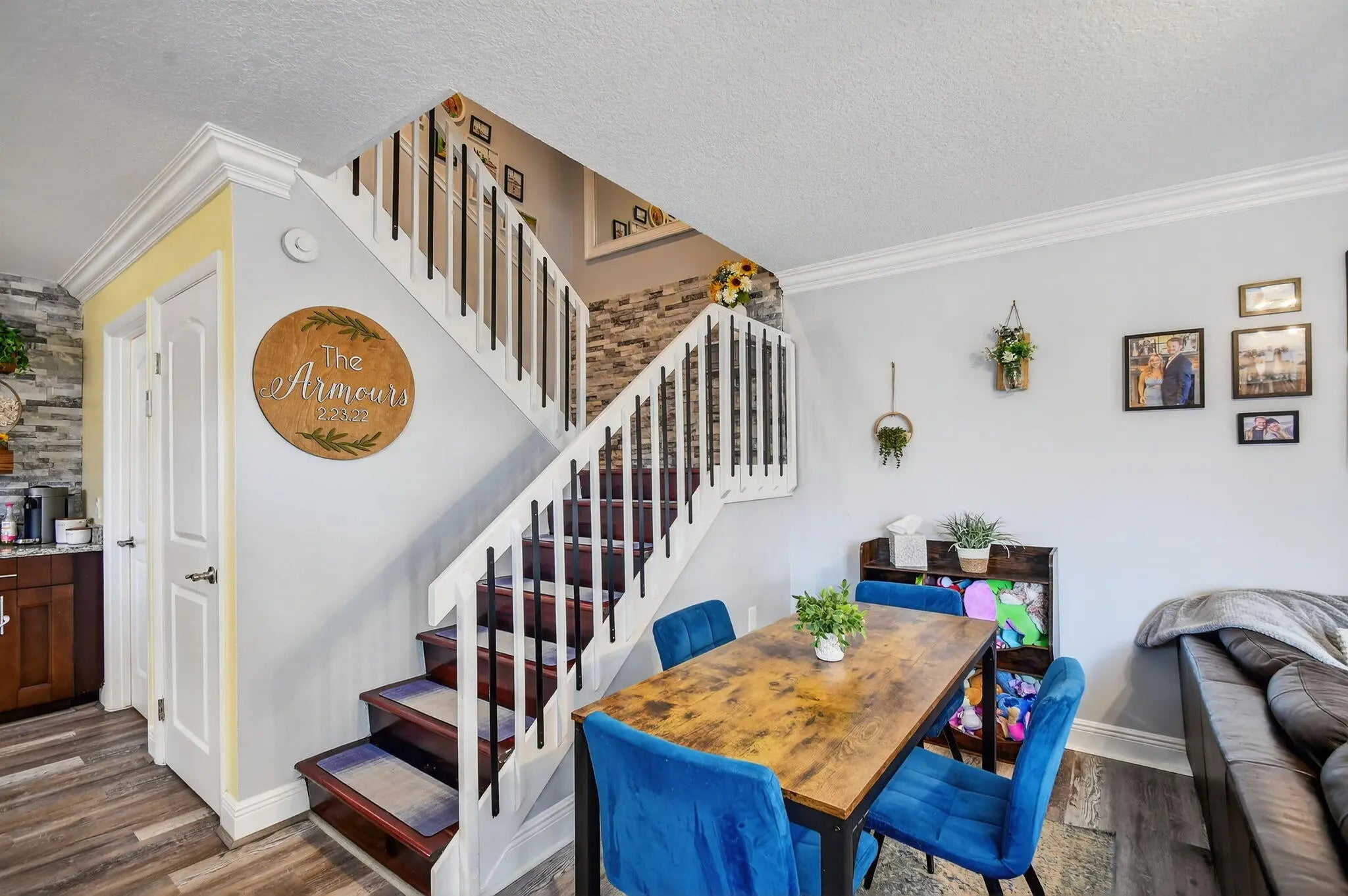 Welcome home **IMPACT WINDOWS COMPLETE*** 2-story townhome, where style, comfort, and functionality come together. This beautiful residence offers peace of mind, energy efficiency, and a quiet indoor retreat. Discover an inviting open-concept living area accented by gorgeous stone walls and a sleek electric fireplace, creating the perfect atmosphere for relaxation or entertaining. The renovated kitchen is a chef's dream, complete with custom cabinetry, high-end appliances, and a built-in coffee bar. Upstairs, enjoy generous bedrooms with built-in closets for smart storage and organization. The renovated bathrooms showcase modern fixtures, tile, and contemporary vanities that add a touch of luxury. With its thoughtful upgrades, durable finishes it's a must see.