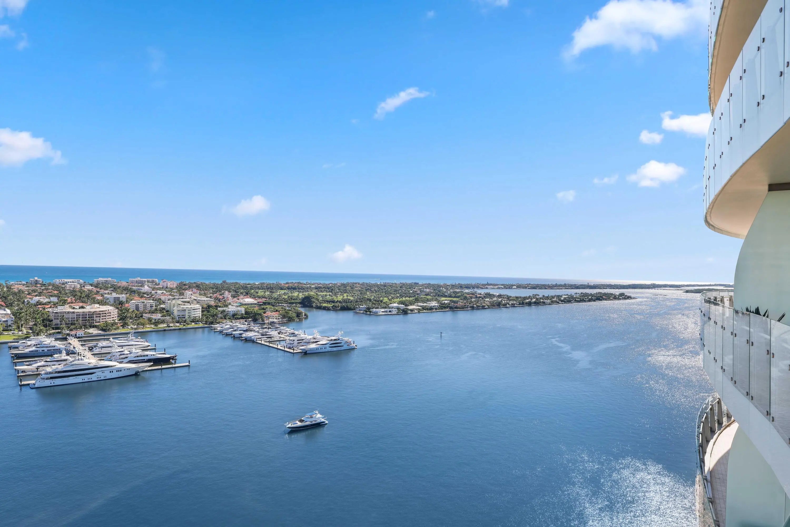 RARE OPPORTUNITY TO OWN THE ONLY AVAILABLE NE CORNER RESIDENCE IN THE BRISTOL!! Panoramic views of the Atlantic Ocean, Direct Intracoastal, Marina, Palm Beach Island, and sparkling city lights unfold from the main living areas, primary suite, and primary sitting area. This 4-Bed/5.1 bath layout is enhanced by an expansive wraparound terrace ideal for seamless indoor-outdoor living. Parking for 4 vehicles. Additional Private 2-Car Garage (creating a total of parking for 6 vehicles) is available for purchase separately. Floor-to-ceiling 11-foot impact glass doors and windows flood the home with natural light, complemented by automated window treatments, custom-built closets, and striking marble flooring throughout. A state-of-the art kitchen features top-of-the-line Gaggenau appliances, gas stove, induction cooktop, 2 dishwashers, 2 ovens, wine fridge & more. The Bristol delivers an exceptional level of luxury service, featuring a waterfront fitness center, full-service salon, dual spa facilities with steam and sauna, treatment rooms, a 75-foot resort-style pool, indoor and outdoor whirlpools, beautifully appointed entertaining terraces, resident lounge, private dining space, card room, and a private dog park. A full-building backup generator, gated entrance, attended lobby, concierge, three chauffeured house vehicles, and 24-hour valet ensure privacy and convenience.