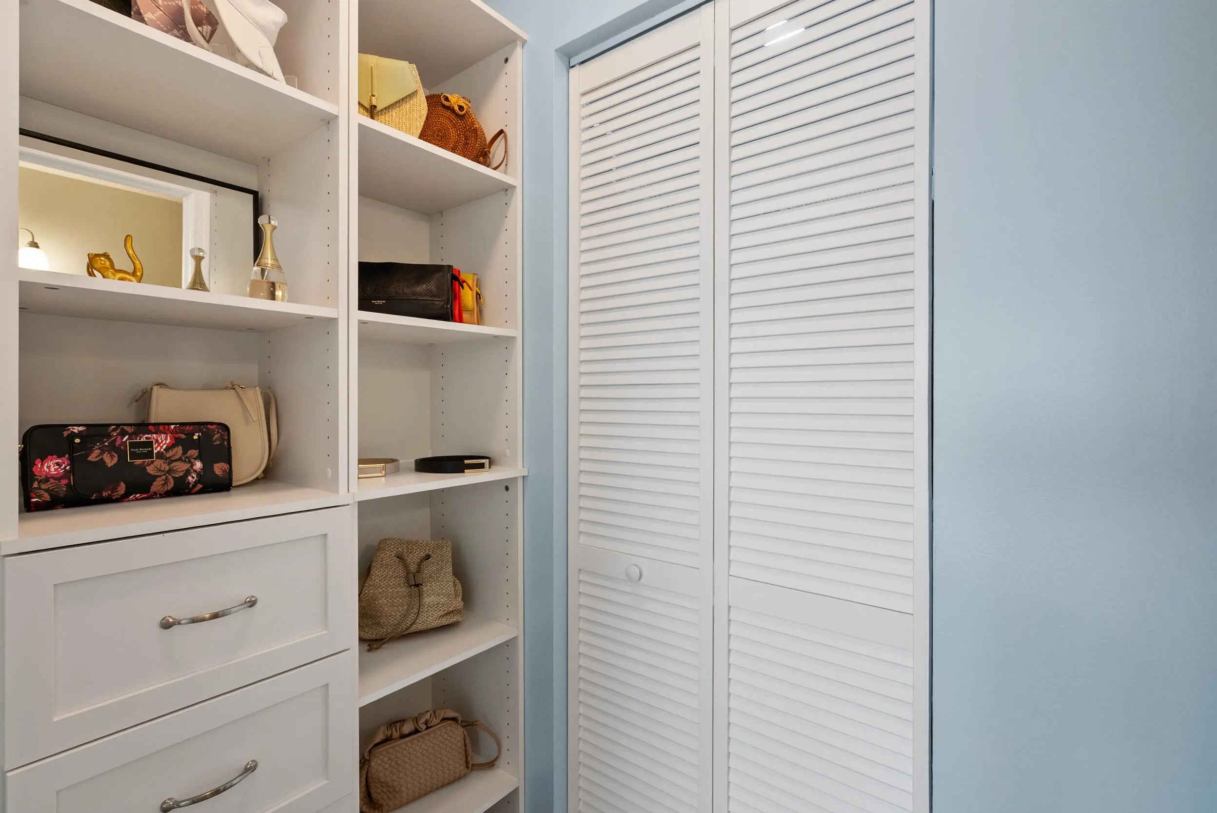Bar, Built-in Features, Walk-In Closet(s), Bedroom Layout - Split, Closet Cabinetry, Storage