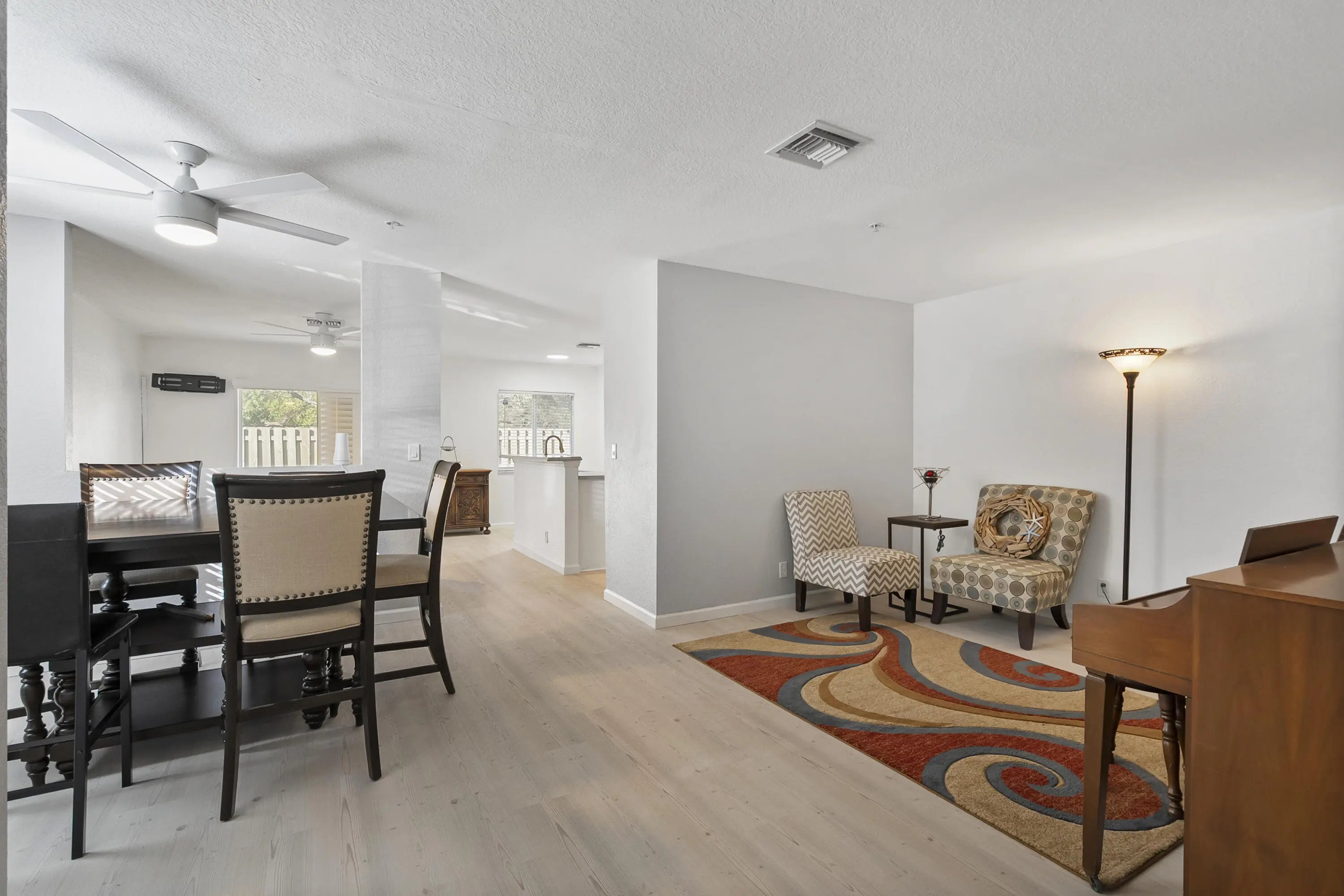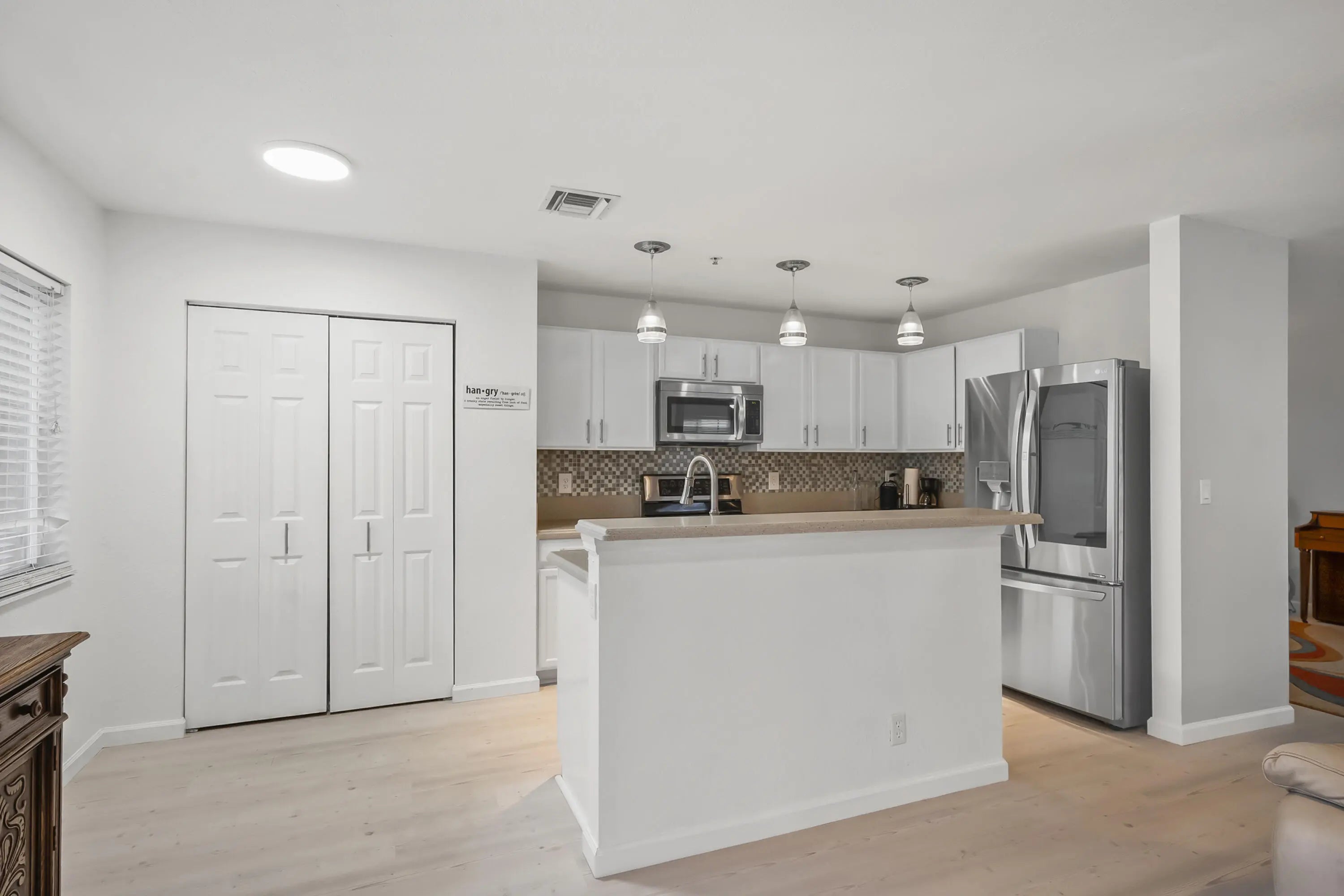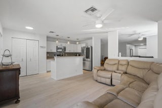 Spacious corner-unit townhome in Martin's Crossing offering flexible living space and modern updates in a prime Stuart location. The first floor features luxury vinyl tile flooring, smooth ceilings, and an open kitchen with tile backsplash and LG appliances, including an LG ThinQ refrigerator. Two separate living areas plus a dedicated dining space provide versatile layout options. A half bath and one-car garage complete the main level. Upstairs, a generous loft creates separation between the primary suite with large walk-in closet and two additional bedrooms. Stackable washer and dryer included. Convenient to I-95, Martin County High School, and Costco.