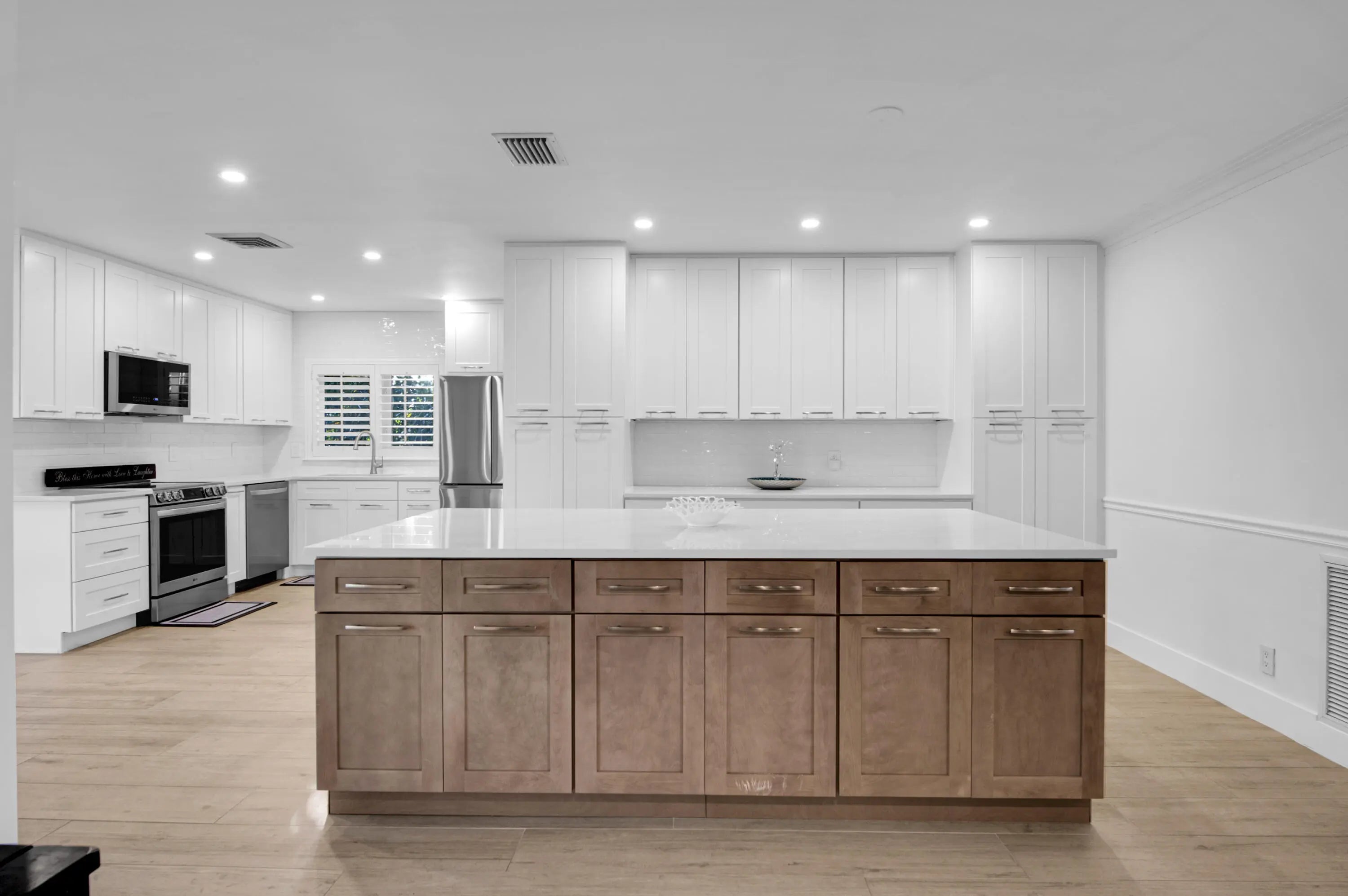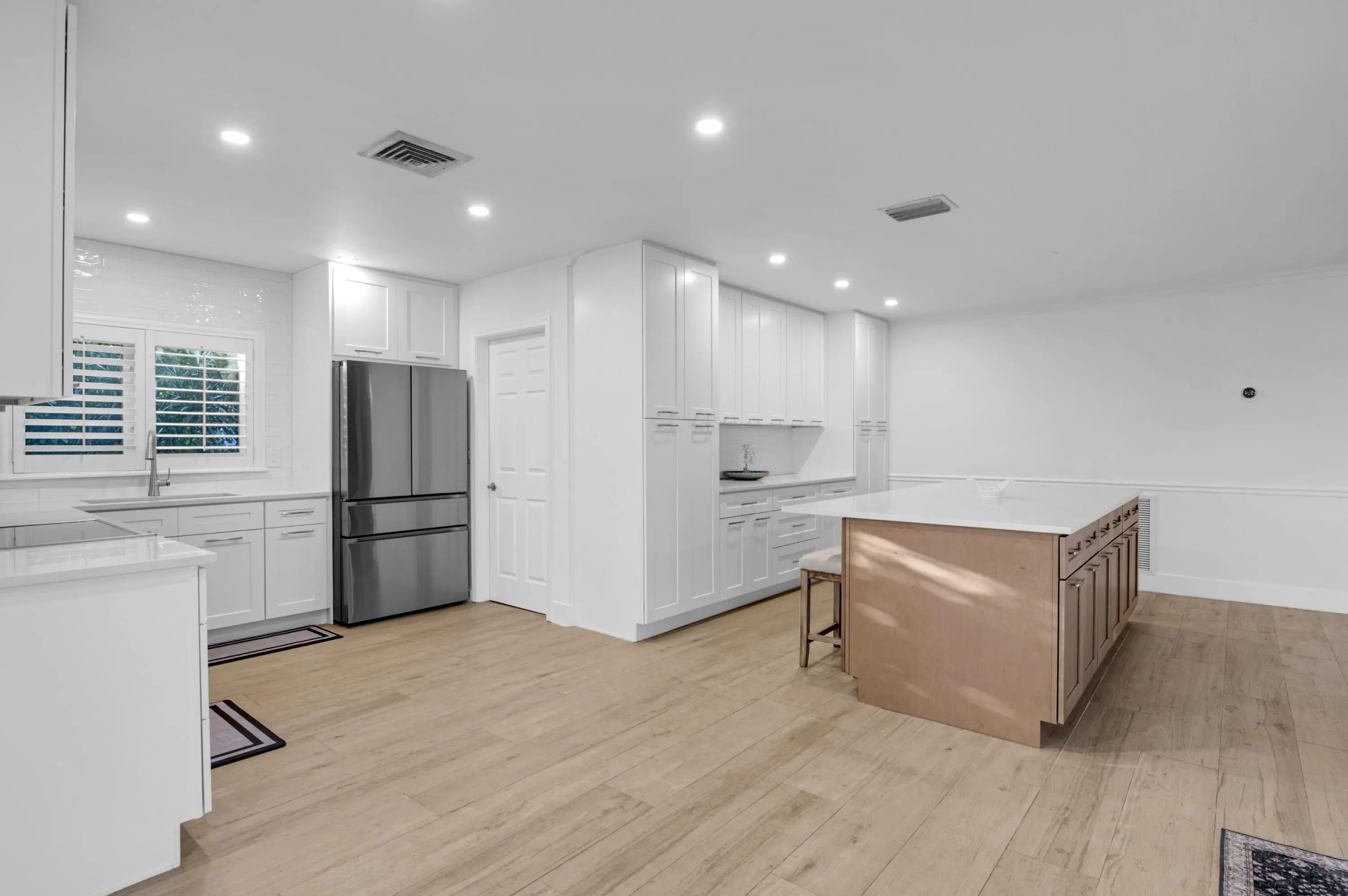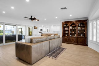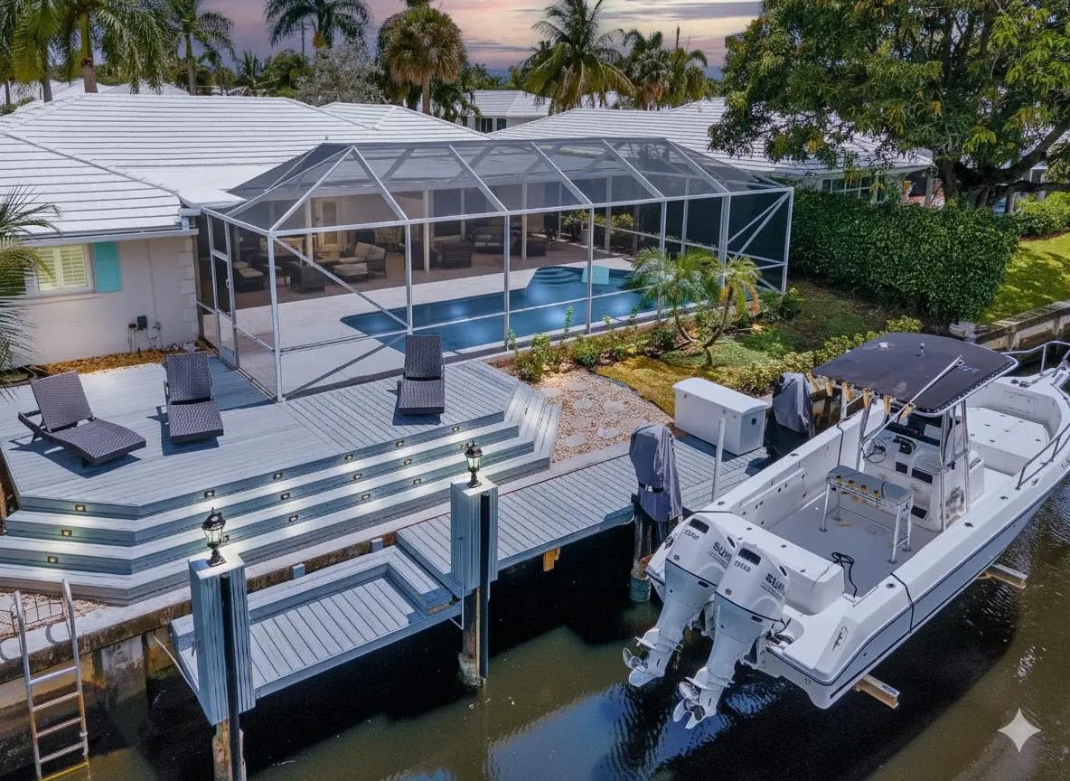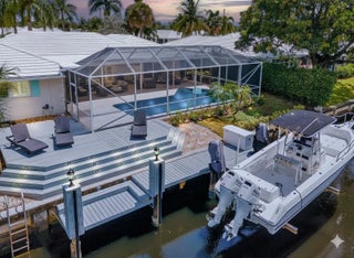 Renovated Camino Gardens Waterfront Residence in East Boca Raton's sought-after enclave. Expansive living spaces immersed in natural light. Open light and bright.Sleek porcelain wood/tile floors lead to a chef-inspired remodeled kitchen featuring custom dovetailed cabinetry,stainless steel appliances and stunning quartz countertops.The newly updated deck/dock provides ample space and provides access to launch your boat from the elevator lift and reinforced seawall. Other notables include hurricane-impact doors and windows,located on a quiet street. Prices are rising don't miss this opportunity to get the only 2200sq/ft under air and 3500sq/ft total sq/ft on the water.Extra large storage ideal for a small office conversion.