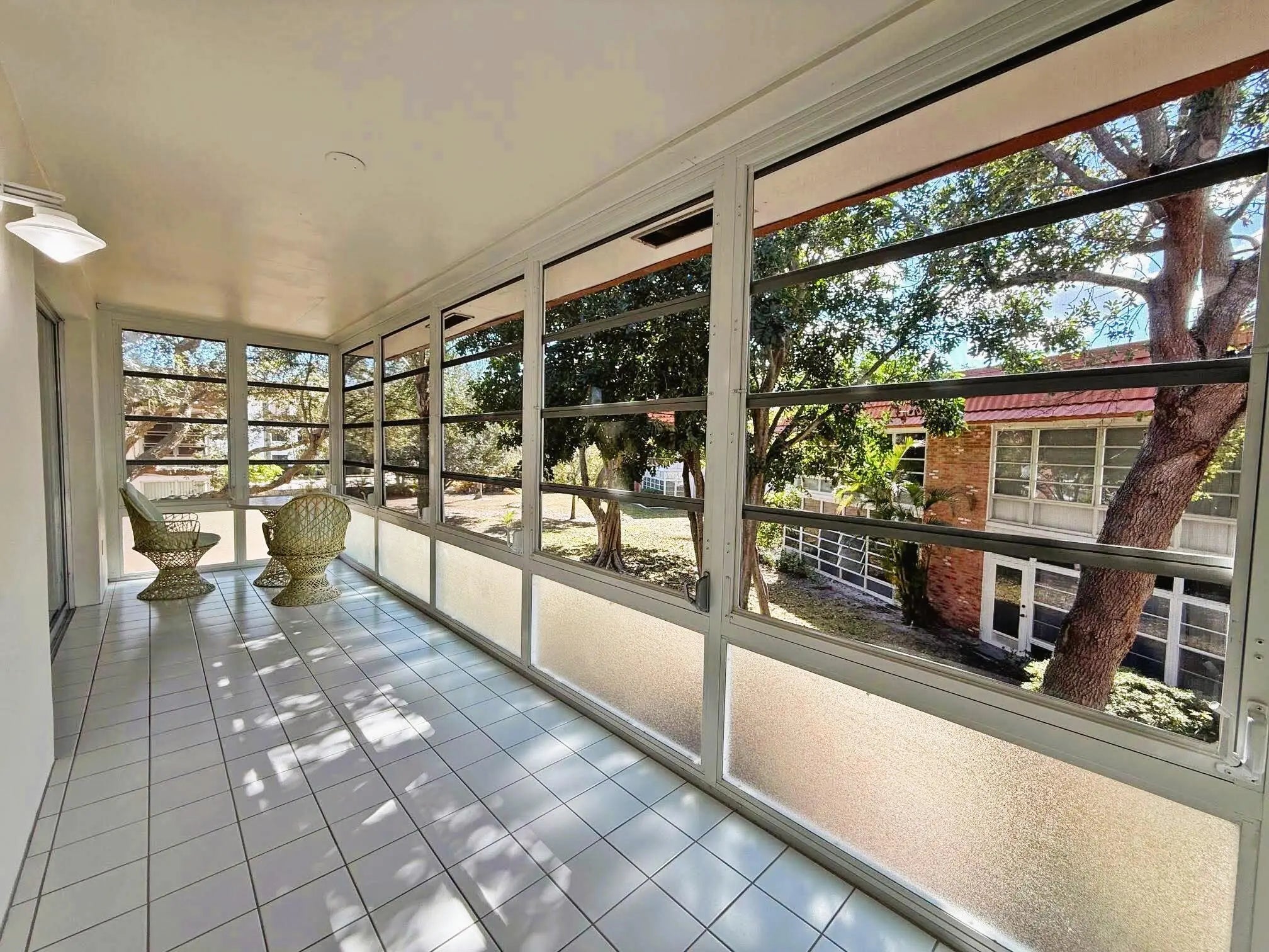 2Bed 2Bath corner condo on the 2nd floor offered partially furnished. Kitchen offers white cabinets & white appliances. 2022 Water heater, 2022 A/C w/UV Sterilizer, Roof 2024, Electric Panel 2025. This condo features partial Accordion hurricane shutters, formal dining room, wood laminate floors throughout the condo with tile in Bathrooms & porch. Main bedroom has walk-in closet & doors to glass enclosed patio. Main bath has walk-in shower with glass doors. Guest bath has Tub/shower combination. Spacious 6'x24' glass enclosed porch with spacious storage closet. Great location just a short walk to community clubhouse with Pool, Dance Hall, Library, Gym, Shuffleboard & workshop. Close to shopping, restaurant, and beaches. Interview required prior to closing. No Lease for 2 years.