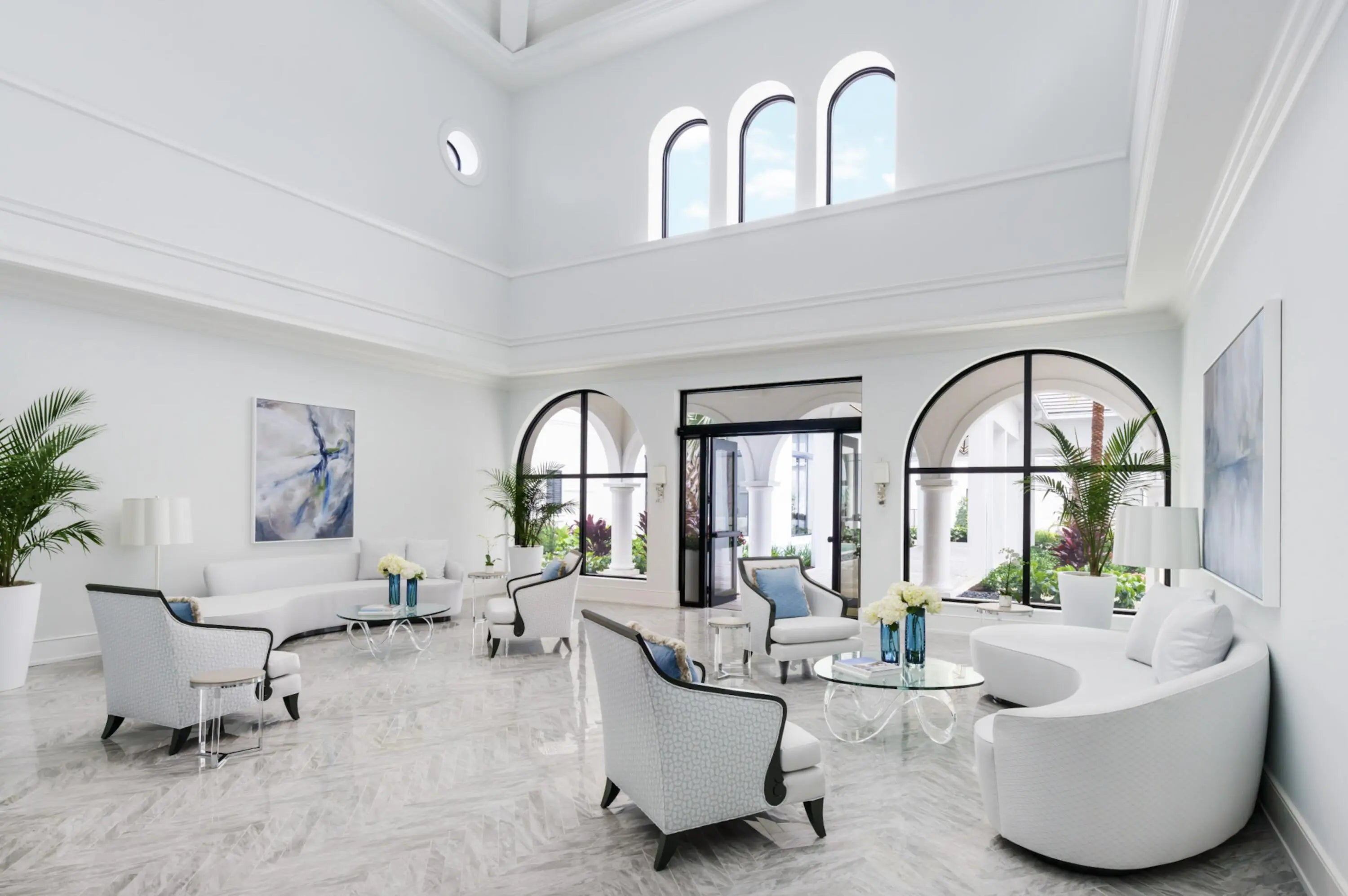 Spectacular golf and water views of this 12th ''island green'' . This corner penthouse unit boosts banquets of windows and has 3000 sq. feet that feels more like a home than an apartment. The 17' high ceilings add to the contemporary yet elegant feel of this home. A full size private elevator elevates to your comfort and large bedrooms with a 3 way split is perfect for families or guests.
