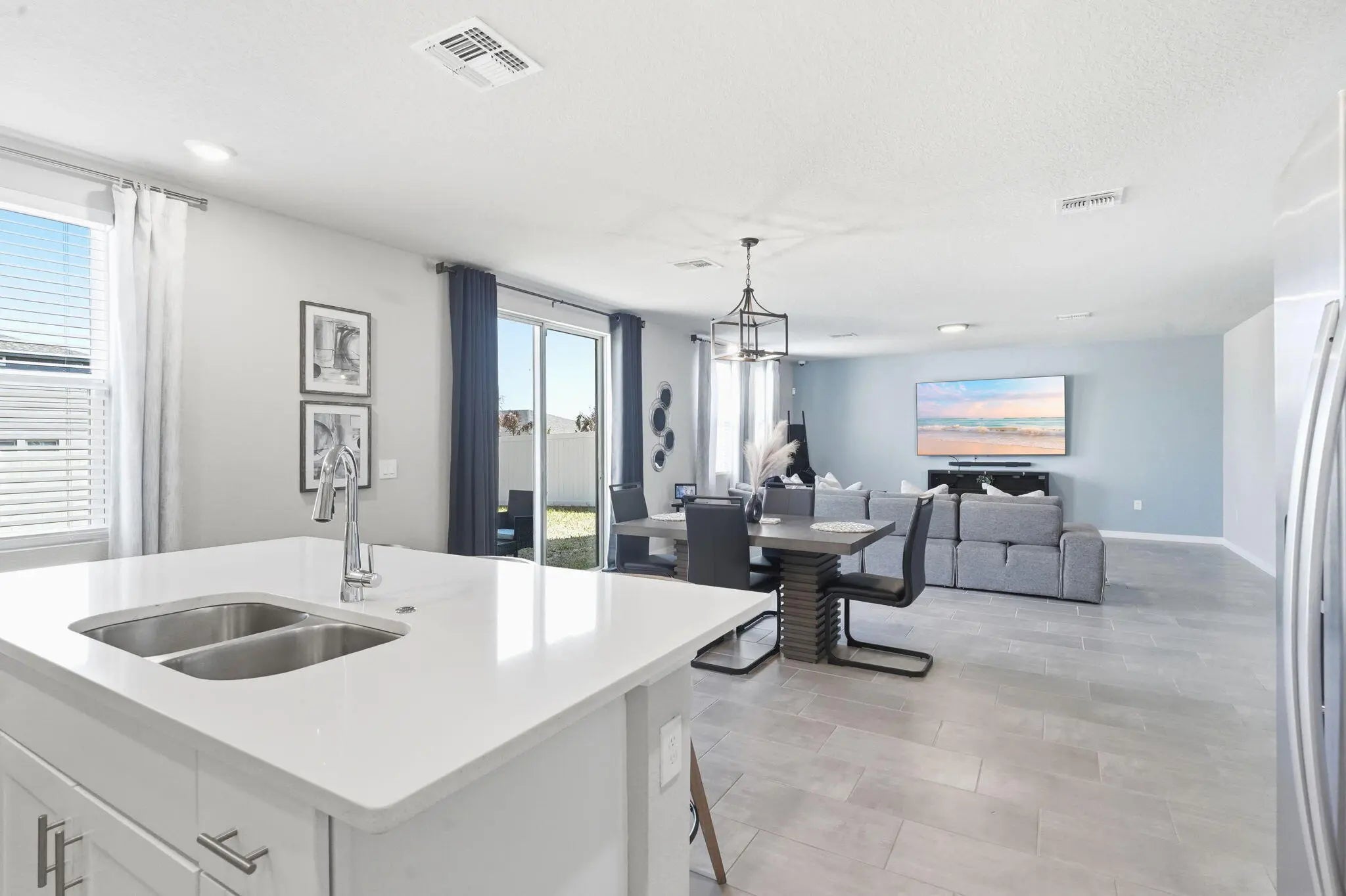 Welcome to your smart and stylish home in the heart of up-and-coming Haines City! This beautifully maintained property features sleek epoxy floors that add a modern touch while being durable and easy to maintain. Enjoy year-round comfort with ceiling fans throughout and a smart thermostat for energy-efficient living. The home is equipped with a full security system, outdoor cameras, and a smart garage system with built-in cameras for added peace of mind. Step outside to a fully fenced yard perfect for relaxing or entertaining. Modern upgrades, thoughtful features, and a growing location make this home a true standout!
