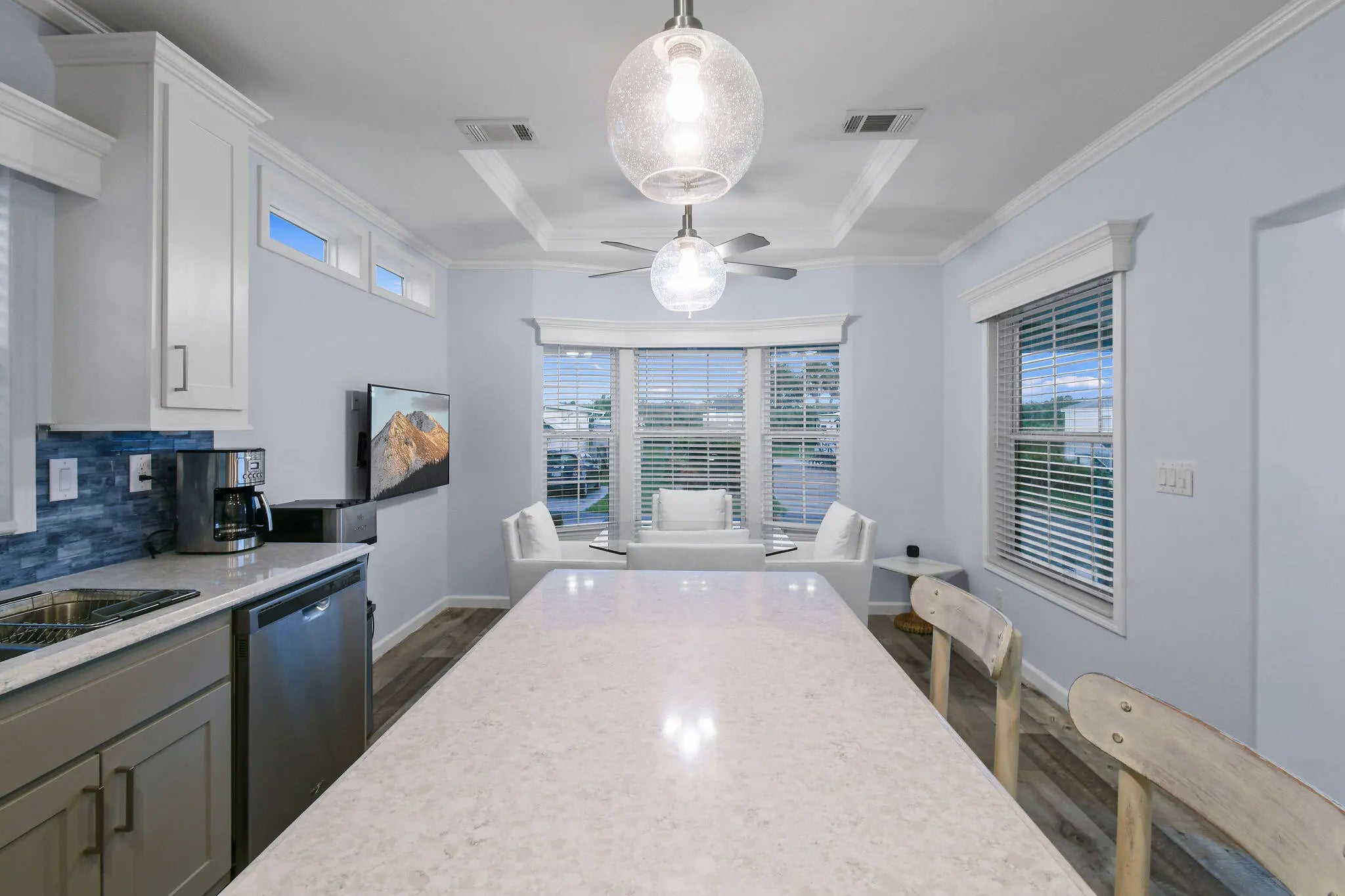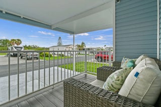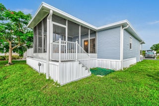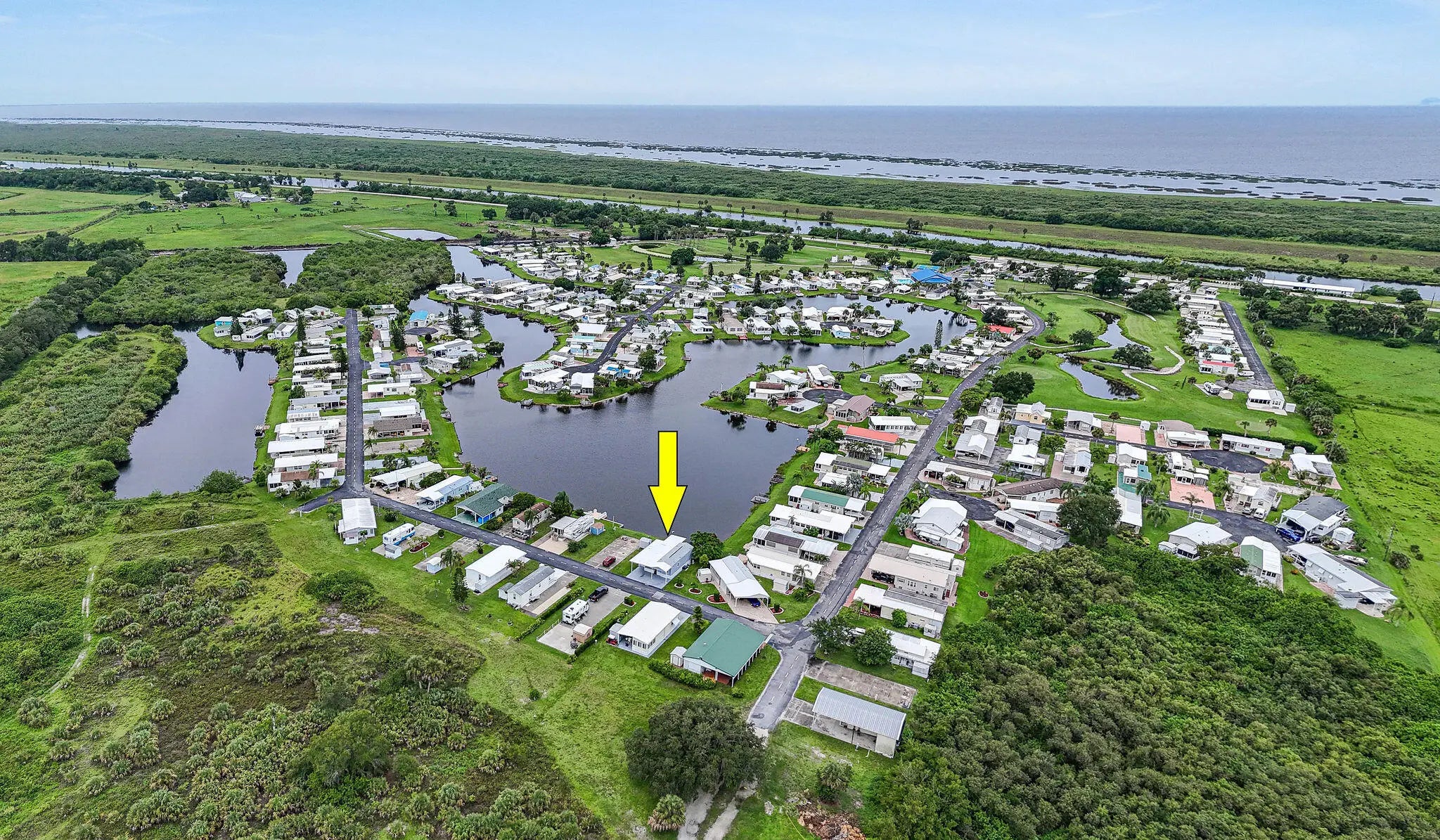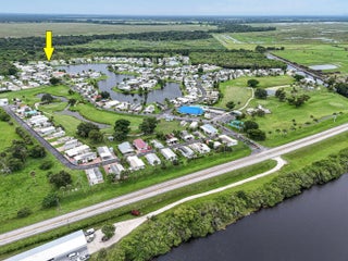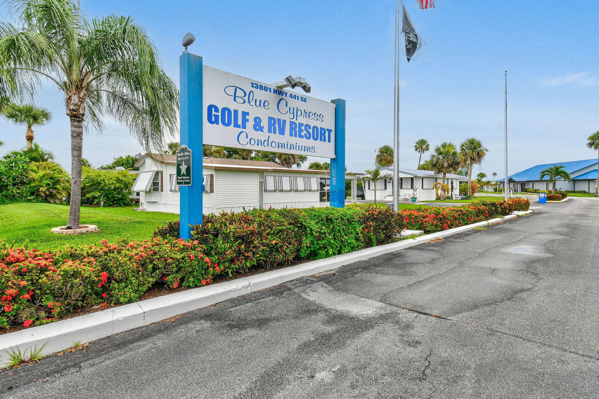 Discover resort-style living close to the shores of Lake Okeechobee at Blue Cypress Golf & RV Resort. Ideally situated along the lake's northeast side, this 55+ and pet friendly community features 248 homes and RV lots. Residents enjoy a 9-hole golf course, vibrant clubhouse, and a sparkling resort pool--heated in winter and cooled in summer--along with pickleball and shuffleboard courts. Multiple tranquil interior lakes provide exceptional freshwater fishing, while the community marina offers complimentary boat docking with access to Lake Okeechobee for qualifying vessels. Renowned for trophy largemouth bass and speckled perch, the lake is a true angler's paradise. FULLY FURNISHED! This FULLY FURNISHED 2022 Skyline Palm Bay Park Model home offers over 3,000 square feet of total space, including approximately 1,100 sqft of air-conditioned living area. The well-appointed kitchen features stainless steel appliances, granite countertops, a center island, and a brand-new Brio water system. The spacious living room overlooks a peaceful lake setting and opens to a 13' x 12' screened patio complete with impact-resistant double doors and a private hot tub. The thoughtfully designed floor plan includes two bedrooms and one-and-a-half baths. The primary suite is enhanced by a premium king-size Tempur-Pedic adjustable mattress (an $8,000 value) and generous built-in storage unit. Additional highlights include a newly installed water softener (2024) with a 10-year warranty, fresh interior paint, vinyl flooring, crown molding, and a full-size washer and dryer. An attached garage provides convenient storage for a golf cart, bicycles, or recreational gear. All information is deemed reliable and subject to errors, omissions and change without notice. All measurements are approximate.