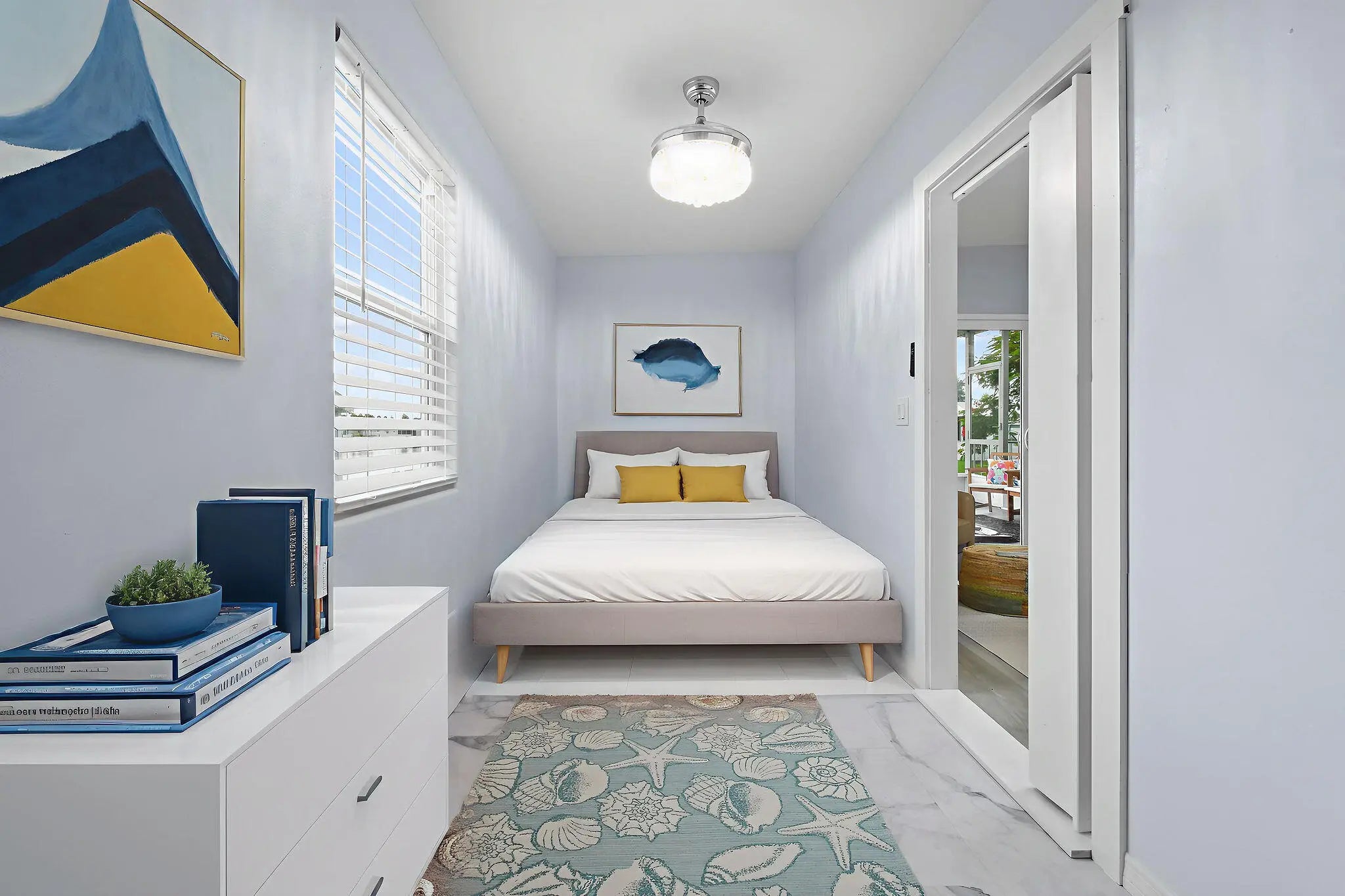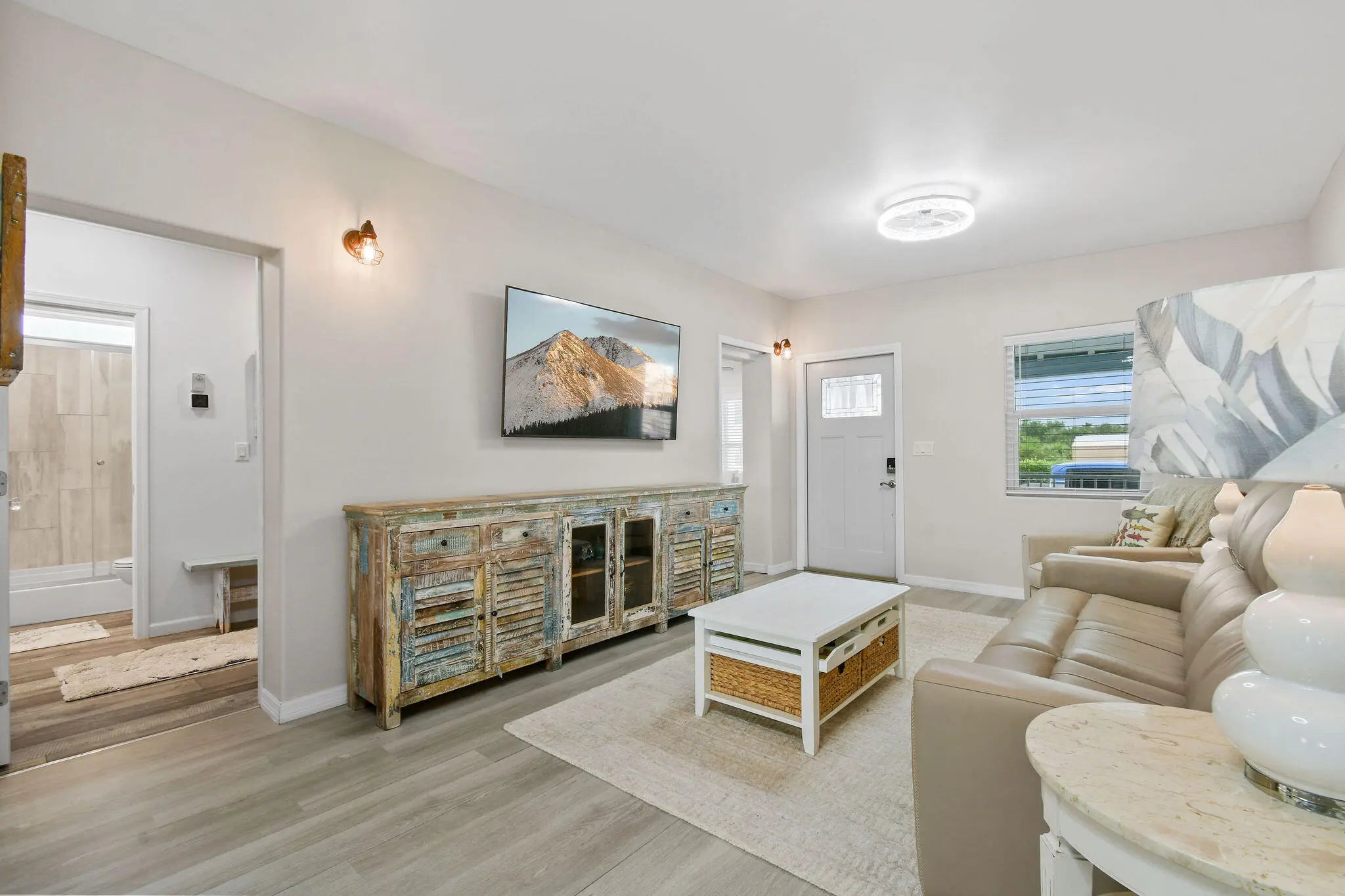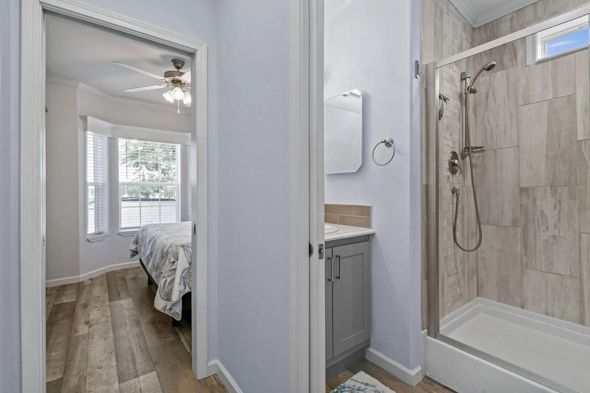 Discover resort-style living close to the shores of Lake Okeechobee at Blue Cypress Golf & RV Resort. Ideally situated along the lake's northeast side, this 55+ and pet friendly community features 248 homes and RV lots. Residents enjoy a 9-hole golf course, vibrant clubhouse, and a sparkling resort pool--heated in winter and cooled in summer--along with pickleball and shuffleboard courts. Multiple tranquil interior lakes provide exceptional freshwater fishing, while the community marina offers complimentary boat docking with access to Lake Okeechobee for qualifying vessels. Renowned for trophy largemouth bass and speckled perch, the lake is a true angler's paradise. FULLY FURNISHED! This FULLY FURNISHED 2022 Skyline Palm Bay Park Model home offers over 3,000 square feet of total space, including approximately 1,100 sqft of air-conditioned living area. The well-appointed kitchen features stainless steel appliances, granite countertops, a center island, and a brand-new Brio water system. The spacious living room overlooks a peaceful lake setting and opens to a 13' x 12' screened patio complete with impact-resistant double doors and a private hot tub. The thoughtfully designed floor plan includes two bedrooms and one-and-a-half baths. The primary suite is enhanced by a premium king-size Tempur-Pedic adjustable mattress (an $8,000 value) and generous built-in storage unit. Additional highlights include a newly installed water softener (2024) with a 10-year warranty, fresh interior paint, vinyl flooring, crown molding, and a full-size washer and dryer. An attached garage provides convenient storage for a golf cart, bicycles, or recreational gear. All information is deemed reliable and subject to errors, omissions and change without notice. All measurements are approximate.