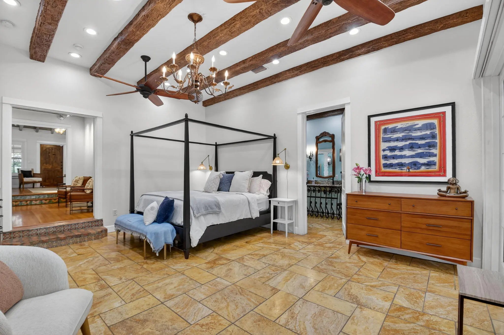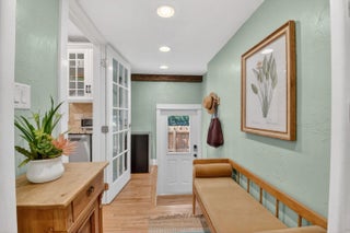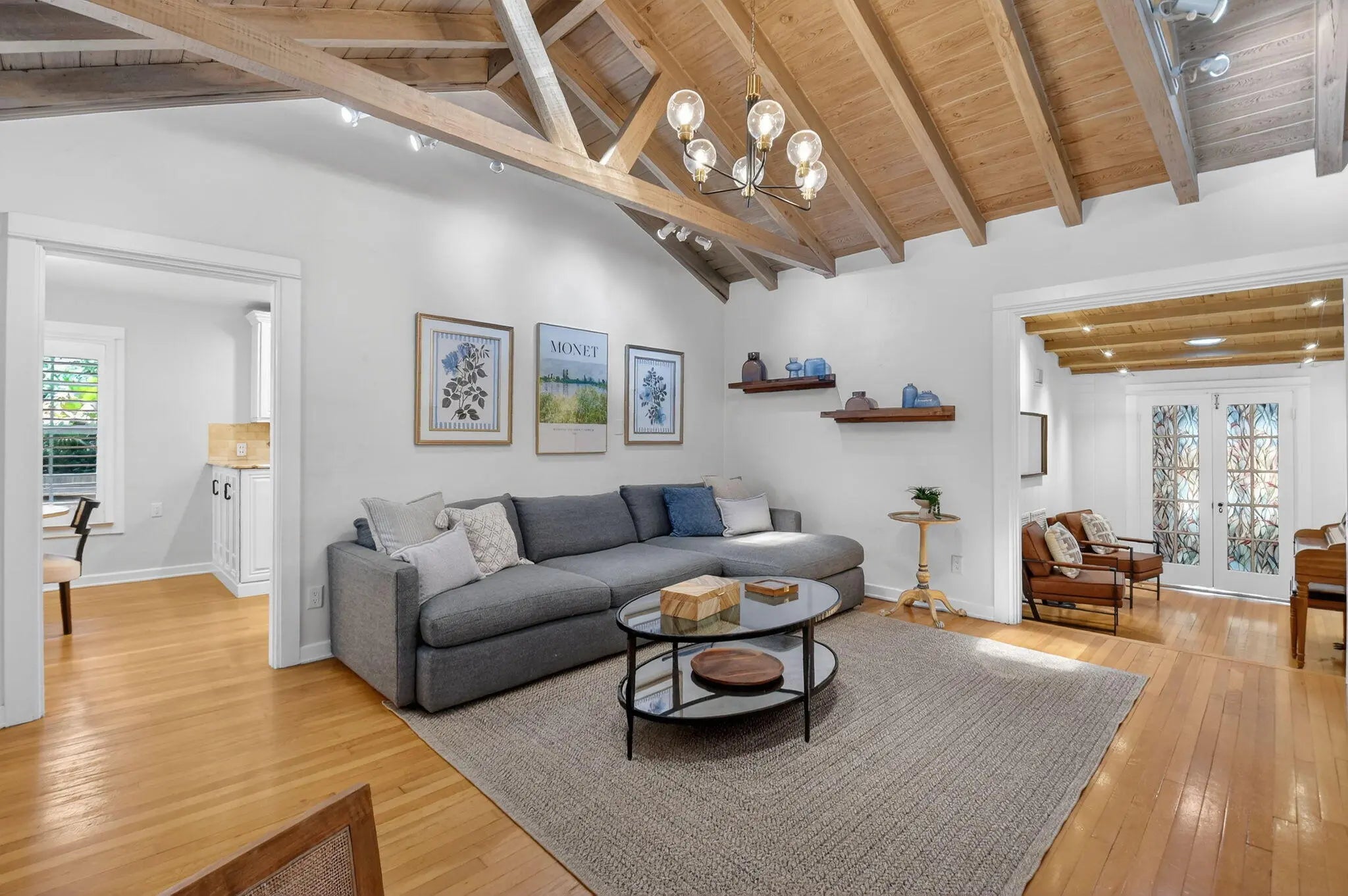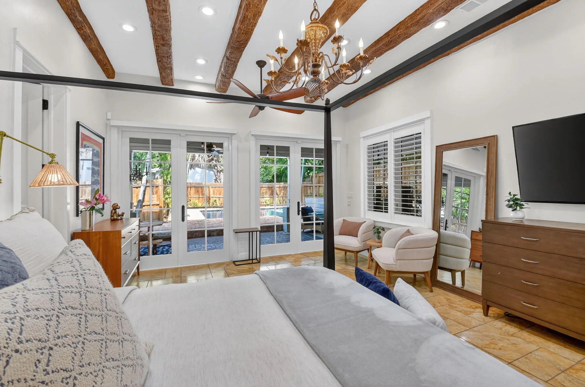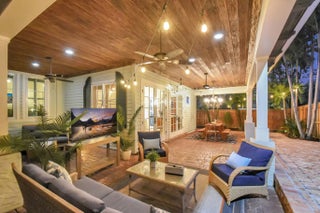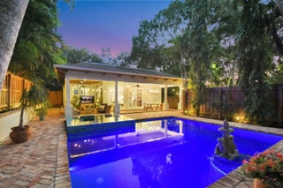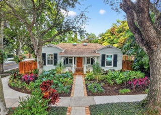 A rare architectural treasure set on a desirable corner lot, this 1,811-square-foot residence (2,482 total square feet) has been masterfully reimagined to seamlessly blend traditional Key West charm with a refined Craftsman interior. Recipient of the prestigious Historic Preservation Award in 2010, the home stands as a timeless tribute to thoughtful design and enduring quality. Positioned to maximize space and natural light, the corner setting offers an open, airy feel with room to breathe. Constructed of solid cypress, the residence showcases exceptional craftsmanship throughout -- from exposed rafter tails and vaulted, beamed ceilings to original oak flooring and custom built-ins. Skylights bathe the interiors in natural light, highlighting curated architectural details at every turn. The thoughtfully designed layout features three bedrooms and two baths, including a serene primary suite complete with a walk-in closet and French doors that open to a tranquil loggia. Step outside to a lushly landscaped private oasis where a saltwater pool, champagne spa, and one-of-a-kind water feature create a retreat that captures the historic essence of the neighborhood. Every element of the outdoor space has been intentionally designed to complement the home's character while delivering a refined luxury experience. Designed for both everyday living and elegant entertaining, the home offers inviting gathering spaces, a spacious pantry, and seamless indoor-outdoor connectivity. A fully fenced rear yard ensures privacy, while the custom-built front porch enhances curb appeal and welcomes guests warmly. Two designated parking spaces add convenience. For added peace of mind, the property is equipped with impact windows and doors, a 2021 roof, 2021 water heater, as well as two A/C units installed in 2021 and 2022. Located in the highly regarded historic neighborhood of Flamingo Park, residents enjoy mature, tree-lined streets, charming architecture, and walkable sidewalks that foster a true sense of community. Just minutes from Downtown West Palm Beach, CityPlace, pristine beaches, and the airport, this exceptional property offers the perfect balance of serenity and accessibility. A distinctive corner-lot residence where history, craftsmanship, and location come together in perfect harmony.
