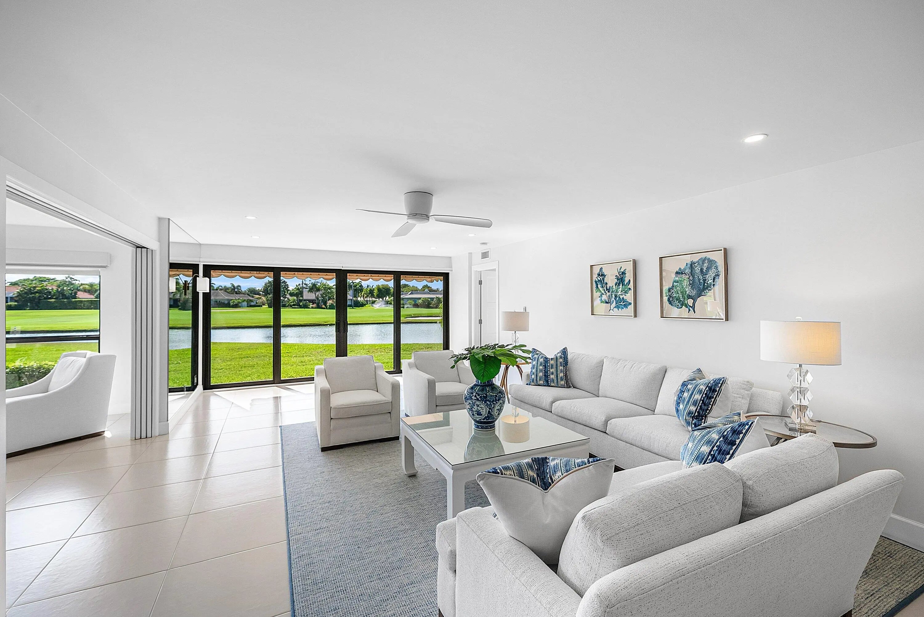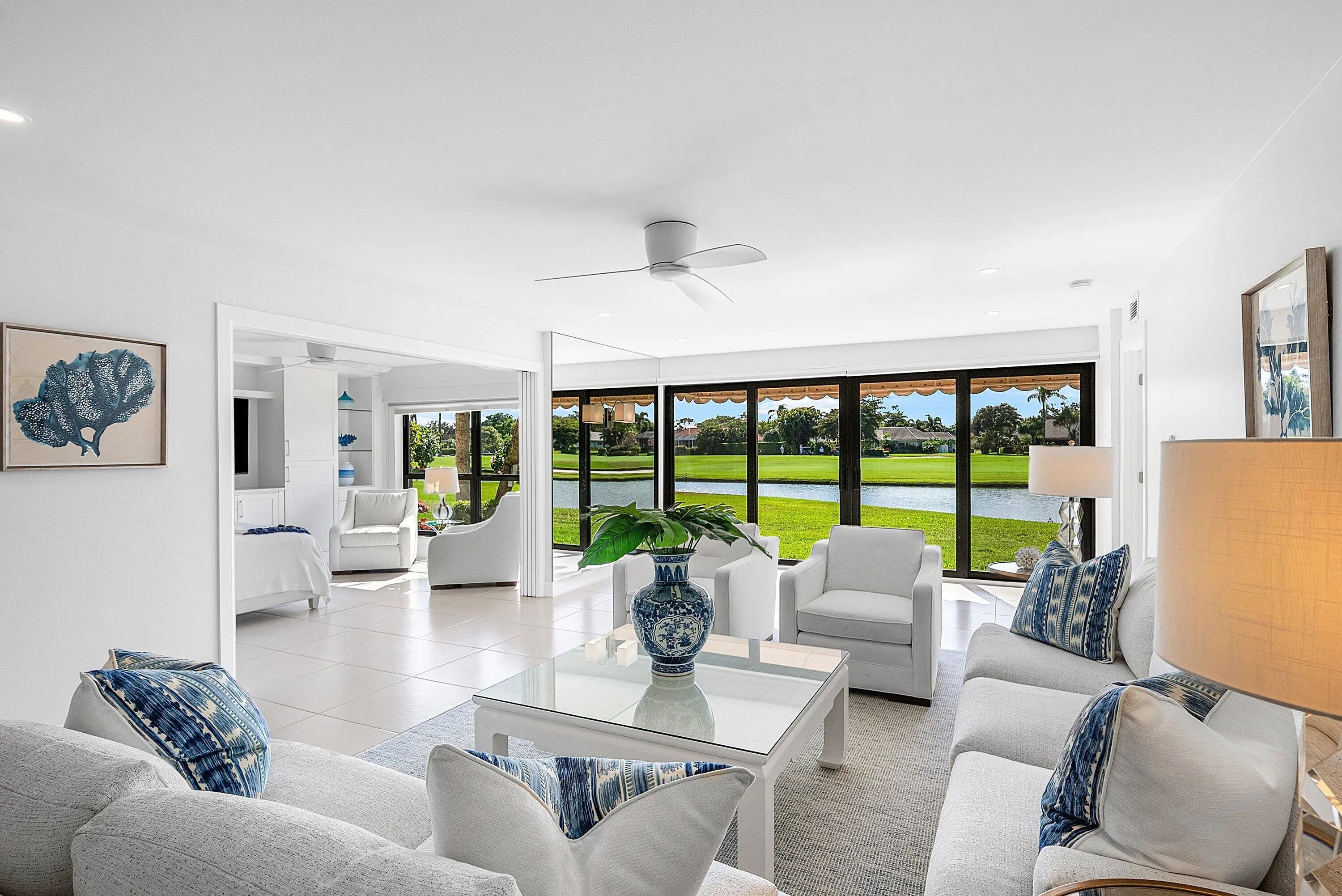 Beautifully updated 3BR/3BA first-floor residence offering panoramic lake and golf course views in the beautiful Bobwhite A area of Quail Ridge. This move-in-ready 3BR/3BA home stands apart with a highly desirable third full bath -- a feature seldom found in most Quail Ridge condominiums - providing added comfort and privacy. . This light-filled home features impact glass windows for added security and peace of mind, along with a spacious, open layout designed for comfortable living and entertaining. A stylish bar area with access to the front open patio creates the perfect setting for entertaining guests or enjoying indoor-outdoor living. The kitchen offers ample cabinetry and workspace. New roof! Quail Ridge is a mandatory membership, private club community.