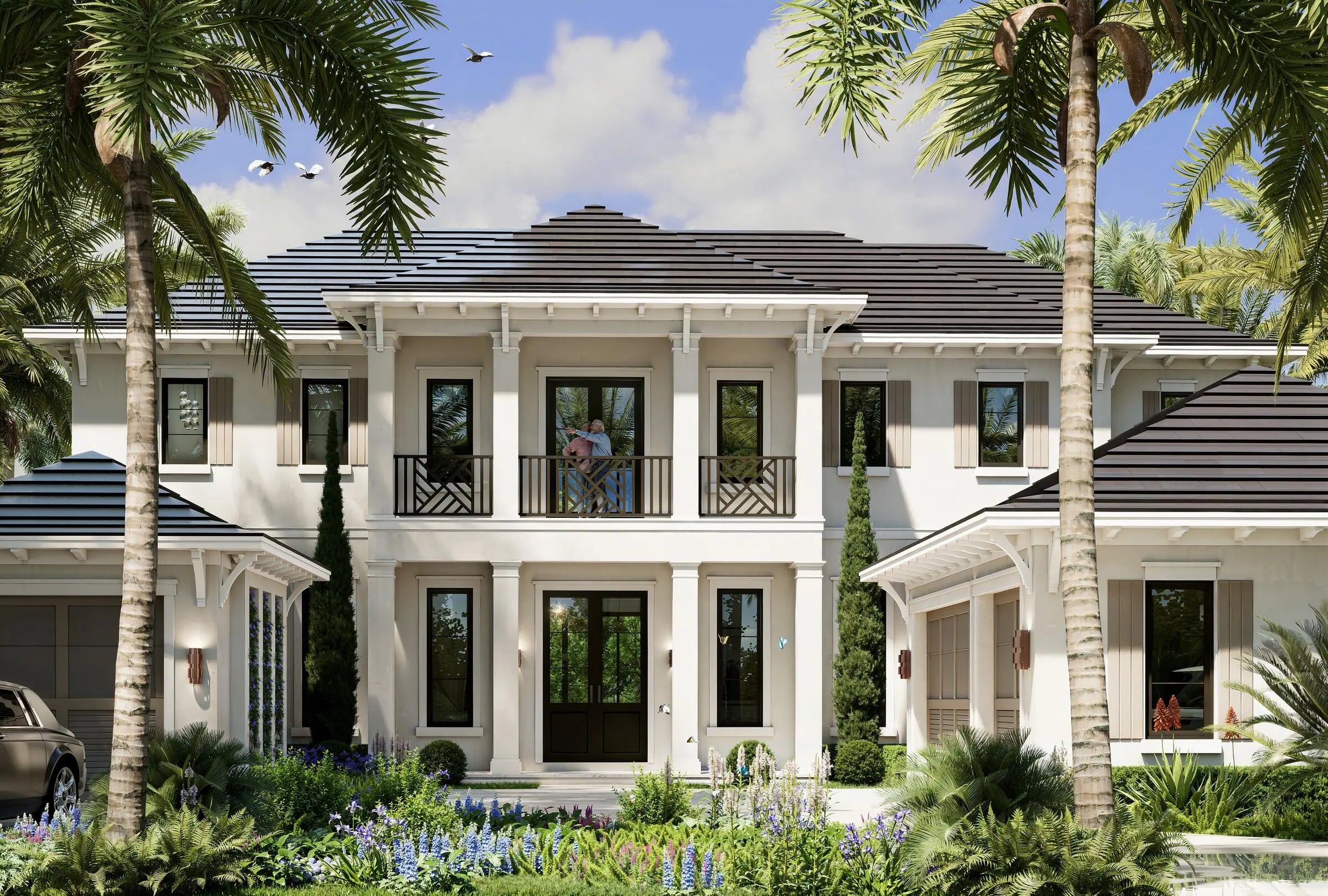 A newly constructed Intracoastal estate, elevated and sited on 93± feet of no-wake Intracoastal frontage, offering commanding water views across the prestigious Fifth Avenue Estates enclave. Designed by award-winning Constructure Inc. in collaboration with Gregory Anderson Architects, this residence represents a rare convergence of architecture, scale, and premier Boca Raton waterfront positioning. A grand auto court and motor plaza framed by mature tropical landscaping sets a sophisticated arrival, leading to an open-air portico entry that establishes a seamless transition between indoor and outdoor living. The residence is designed for both formal entertaining and effortless everyday luxury, with spaces oriented to maximize water views and natural light. Outdoor living is defined by three expansive lanais, including a fully appointed summer kitchen and resort-style pool, creating multiple environments for hosting and private relaxation along the Intracoastal. Interior amenities are curated to the level of a private members' club, featuring a club room with professional bar, library, private office, and a striking two-story staircase tower. An Intracoastal loft room offers elevated water vistas, while refined service areas include a butler's pantry, two utility rooms, elevator, and a four-bay garage--delivering both function and discretion. This exceptional waterfront offering delivers timeless architecture, privacy, and global appeal, positioned among Boca Raton's most distinguished Intracoastal estates and suited for a discerning international buyer seeking enduring value and lifestyle prestige.