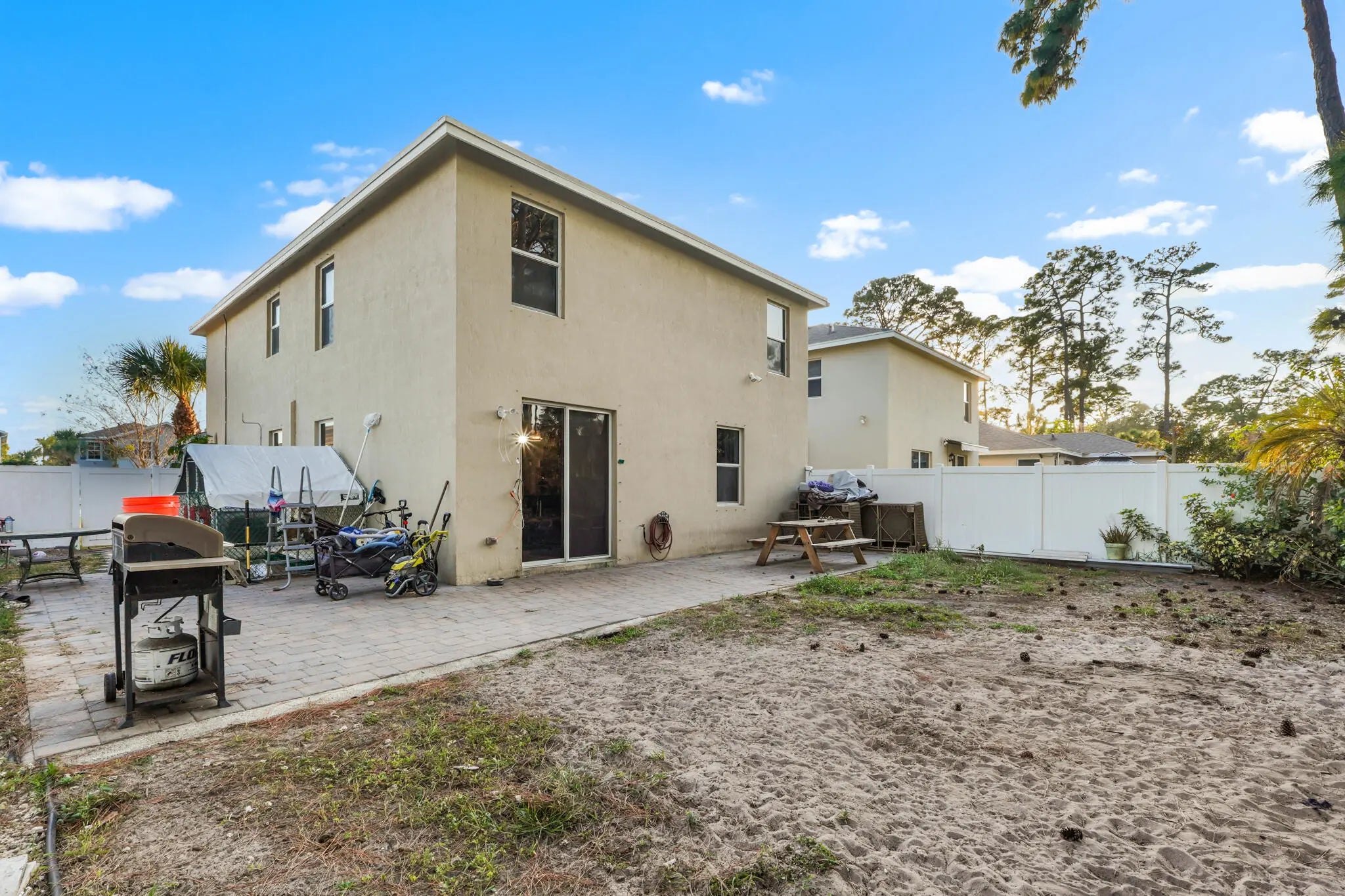 Welcome to this beautifully maintained 5-bedroom, 3-bathroom Mediterranean-style residence in the desirable Jaxon Park community of West Palm Beach. Spanning approximately 2,499 sq ft of thoughtfully designed living space, this home offers an ideal blend of comfort, style, and functionality for modern family living. Step inside to discover elegant 18x18 tile flooring throughout the main areas, complemented by cultured marble vanity tops and granite kitchen countertops. The spacious kitchen features essential appliances (dishwasher, microwave, electric range) and flows seamlessly into the open living and dining areas--perfect for entertaining or everyday gatherings. The split floor plan provides privacy, with the luxurious master suite boasting dual sinks, a separate shower, and separate tub, plus generous closet space. Additional highlights include central air conditioning, in-home laundry connections, and ample storage throughout. Upstairs and main-level bedrooms offer flexibility for family, guests, or a home office. The home is situated on a desirable lot with no rear neighbors in sight in many views, and the community provides low HOA fees covering common area maintenance, landscaping, and more. Conveniently located just minutes from I-95, this prime spot offers easy commutes to downtown West Palm Beach, beaches, shopping, dining, and top-rated schools. Enjoy the Florida lifestyle with nearby parks, nature trails, and quick access to everything the Palm Beaches have to offer.