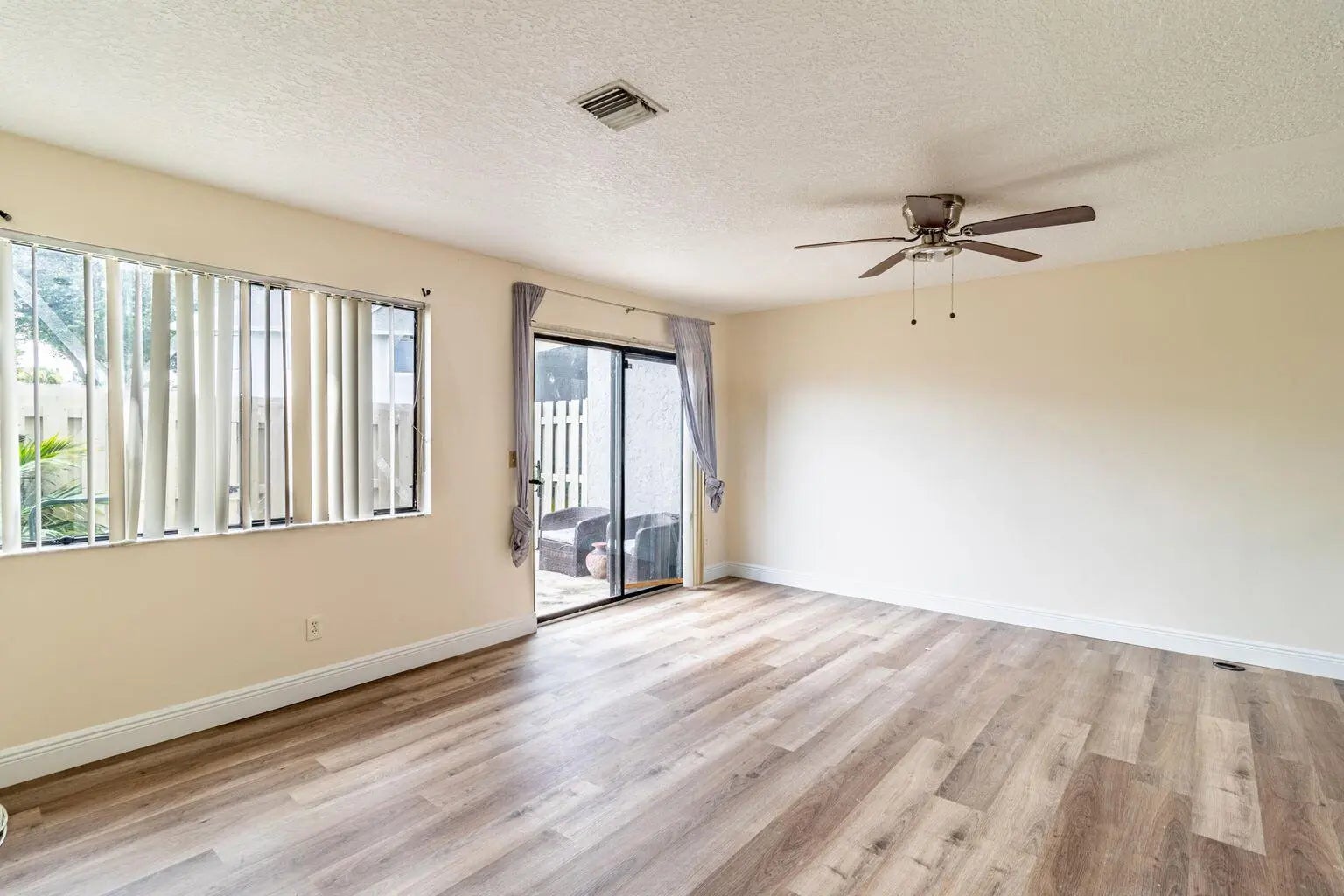 This tastefully updated townhome has been freshly painted and is ready for its next owner to move right in. Located in the desirable Canalakes community, it offers both comfort and convenience in a prime setting. Inside, the open layout showcases wood-look laminate flooring, modernized bathrooms, and updated lighting and hardware throughout. The kitchen is thoughtfully redesigned with classic Shaker cabinetry, a stylish tile backsplash, and stainless steel appliances including the refrigerator and dishwasher. A washer and dryer are also included, adding everyday ease. Step outside to your own private, fenced terrace perfect for morning coffee, casual dining, or hosting friends in a relaxed outdoor setting. Residents of Canalakes enjoy access to community amenities such as a swimmi tennis courts, and additional recreational features. The location provides easy access to shopping, dining, entertainment, and major roadways for convenient commuting.