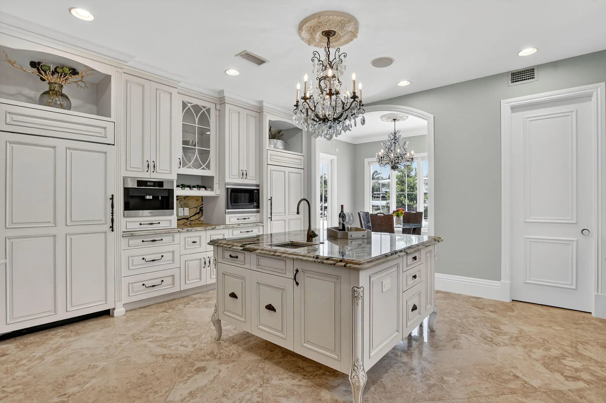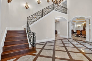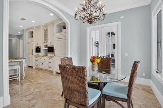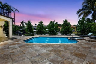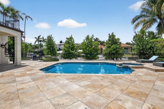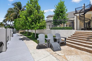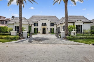 An Elegant French chateau-style residence in the prestigious Royal Palm Yacht & Country Club. Situated on 81 feet of deep water Intracoastal canal with no fixed bridges, ideal for yacht dockage. Spanning 6,365 sq ft, this stunning home offers 5 bedrooms, 6 full baths, and 1 half bath with a desirable split-bedroom floor plan. The ground-level primary suite boasts His & Her spa style baths, each with oversized walk-in closets, and French doors opening to the resort-style backyard. Grand foyer entry with marble and hardwood floors throughout. Enjoy a heated saltwater pool, jacuzzi spa, and outdoor grill surrounded by lush landscaping. Additional highlights include a generator, laundry rooms on both levels, and a gated motor court with 3-car garage. This is Waterfront living at its finest!