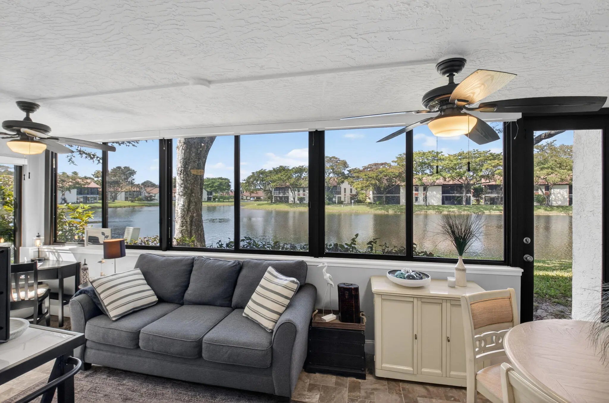 Resort-Style Living with Stunning Lake Views! Stunning 3-bedroom, 2-bath first-floor residence (configured as 2 bedrooms plus a den/optional 3rd bedroom) offering full impact windows, extra storage, and serene waterfront living in the heart of Boynton Beach. This beautifully renovated, move-in-ready home is perfectly positioned in a picturesque lakeside setting. The chef's kitchenfeatures crisp shaker cabinetry, sparkling quartz countertops, stainless steel appliances, and a spacious layout. The open-concept design flows effortlessly into the enclosed Florida room, where custom motorized blinds frame tranquil lake views -- the perfect place to enjoy peaceful mornings and relaxing evenings. The expansive primary suite is complete with a walk-in closet, additional wall closet, and a beautifully updated ensuite bath featuring dual vanities and elegant finishes. Two additional bedrooms (or den/flex space) provide versatility for guests, a home office, or hobbies. Enjoy multiple outdoor spaces including the enclosed Florida room, front courtyard, and side patio -- embracing the best of South Florida's indoor-outdoor lifestyle. Full impact windows throughout provide energy efficiency, and storm protection. Impeccably maintained and ideally located near shopping, dining, and major highways, this exceptional lakefront residence is more than just a home -- it's a lifestyle. Don't miss your opportunity to own this slice of paradise. Property Features: *2 Bedrooms + Den/optional 3rd Bedroom - Versatile space for a home office or guest room *Fully Renovated & Move-In Ready - Stylish, modern updates throughout *Lakeside Location - Enjoy breathtaking water views *Luxury Flooring - Laminate & porcelain tile throughout *Chef's Kitchen - Shaker cabinetry, quartz countertops & stainless steel appliances *Enclosed Florida Room - Impact sliders & custom motorized blinds for serene lake views *Expansive Primary Suite - Walk-in closet, additional wall closet & spa-like ensuite bath *Double Vanities in Primary Bath - Elegant finishes for a luxurious touch *Multiple Outdoor Spaces - Florida room, front courtyard & side patio for ultimate relaxation *Full Impact Windows - Peace of mind with storm protection *Designer Upgrades - Modern elegance in every detail *Community Features: *Resort-Style Amenities *Full Facility Clubhouse *Auditorium *Heated Pool & Hot Tub *Tennis & Pickleball Courts *Fitness Classes *Billiards *Ping Pong *Bocce Ball *Library *Game Nights *Social Clubs & Activities: *Bridge Club *Book Club *Current Events Discussions *Pickleball *Tennis Club *Knitting & Craft Club *The "Dinner Out" Club *Social Club & Community Events