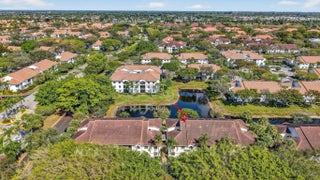 Welcome to this spacious, bright and airy residence in Platina's desirable Lucente Village. Enjoy tranquil lake views from this upstairs condo, offering the convenience and privacy of both an interior elevator and staircase. The eat-in kitchen features granite countertops and a tiled backsplash, combining practicality with a stylish look. Tile flooring spans the main living areas and den, creating a seamless, low-maintenance flow. Crown molding accentuates the soaring ceilings, enhancing the open feel of the living area. The thoughtfully designed split floor plan provides privacy for residents and guests alike. The spacious primary suite features a large walk-in closet and an ensuite bathroom with a walk-in jetted bathtub for added comfort. Double doors open to a versatile den, easily convertible to a third bedroom to suit your needs. Step onto the glass- and screen-enclosed balcony and relax while taking in the glistening lake views. It is the perfect setting for morning coffee or evening unwinding. This light-filled home offers space and flexibility in one of Platina's most sought-after villages. Priced to sell and offering exceptional value for its size, layout, and lake view, this is an opportunity you do not want to miss. Discerning buyers place PLATINA at the TOP OF THEIR LIST! It is a vibrant gated community known for its resort-style living and beautifully maintained grounds. Direct TV, AT&T high speed internet, water and pest control is included. All you pay for is electricity! The active 20,000 square foot clubhouse is stunning! Cafe open for breakfast and lunch offering take-out meals, card rooms, fitness center with stationary bicycles in a solarium overlooking the pool area. Relax in one of the satellite pools or at the enormous free-form main pool and spacious sundeck. Tennis, handball and pickleball courts. There is also an art room with a kiln! With shows, bingo, and an array of clubs, you will not be bored! 24-hour guard gated community. Convenient access to I-95 and the Florida Turnpike. Close to shopping and wonderful restaurants.