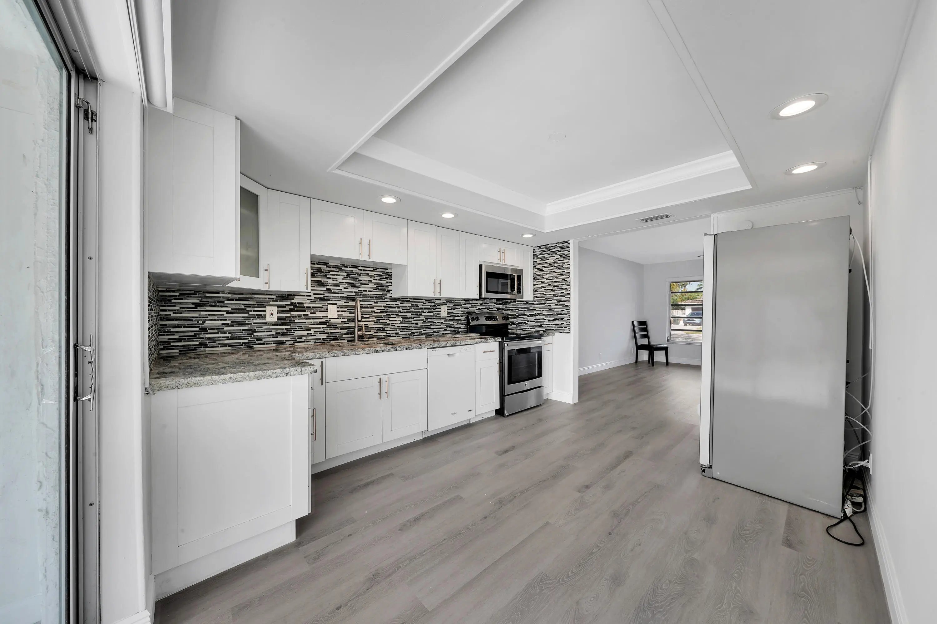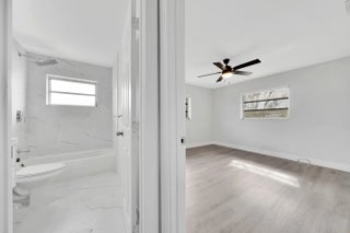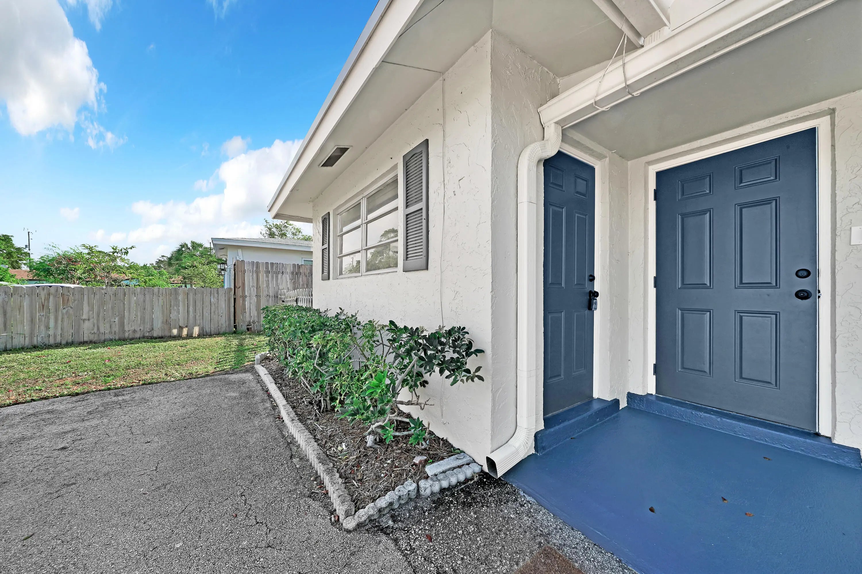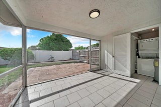 Immaculate EAST BOCA duplex in area of expensive homes close to beaches, parks and downtown Boca and Delray. Gorgeous GOURMET kitchen w/attractive finishes including white wood Shaker cabinets, granite countertops, sizzling glass mosaic back splash, stainless appliances. Tasteful high-end flooring throughout. TOTALLY REMODELED baths w/beautiful tile, white wood vanities w/QUARTZ tops, decorator fixtures .Sound-proofed wall between apts., updated lighting fixtures and fans, window treatments, interior painted in tasteful color scheme. Screened-in 13x10 porch + patio, BIG fenced yard, washer/dryer, hurricane shutters. . Two parking spaces in front of home. Quiet location on side street. Local landlord looking for long term tenant.