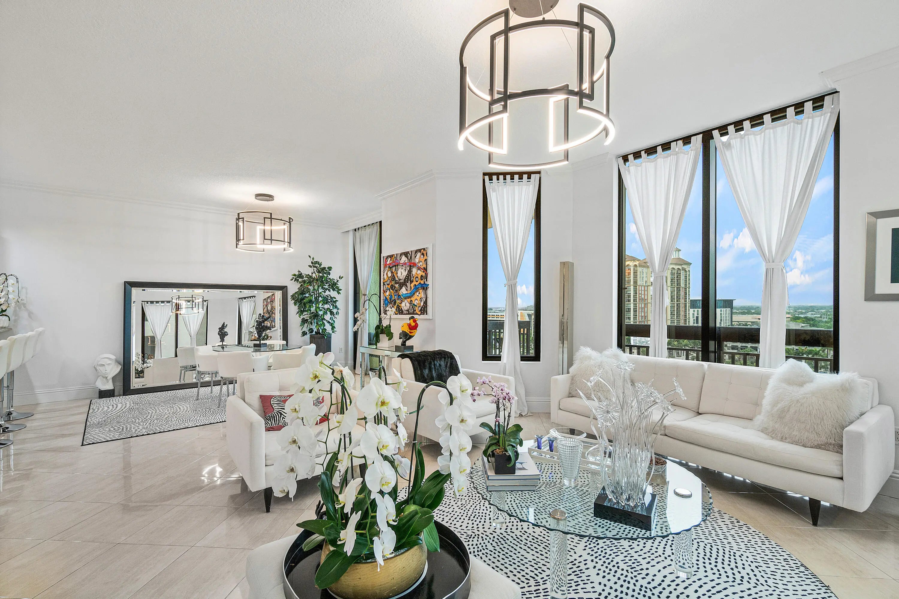 This 3 Bedroom & 2.5 Bathroom luxury corner condo boasts breathtaking panoramic skyline & sunset views over Clear Lake! Dramatic floor-to-ceiling windows, high ceilings, dedicated foyer, full-size upgraded laundry room, and parking on low ''M'' level are just a few of the features that separates this spacious 1858sqft luxury condo. In addition, hardwood, marble & tile flooring throughout, incredible closet space, crown-molding, tray ceilings, light granite counters in gourmet kitchen. Fully furnished turnkey with stunning finishes to truly enjoy your summer season in luxury. Located just moments from dining, shopping, nightlife, and cultural attractions, Two City Plaza offers full-service, resort-style amenities in one of downtown's most desirable addresses. Amenities in this full-service building are endless; 24-hr security, concierge, roof top pool, hot tub, sauna, steam room, fully renovated state of the art fitness center/gym, outdoor kitchen w/ BBQ area and all NEW Restoration Hardware furniture, outdoor & indoor movie theaters, club room, table tennis, lanai courtyard w/ water feature, renovated roof top dog park area, complimentary valet parking & exceptional staff. Centrally located in the heart of Downtown West Palm Beach, across from One Flagler offices, 7 minutes to PBIA airport, award winning restaurants and shopping, and walking to Worth Ave, Palm Beach.