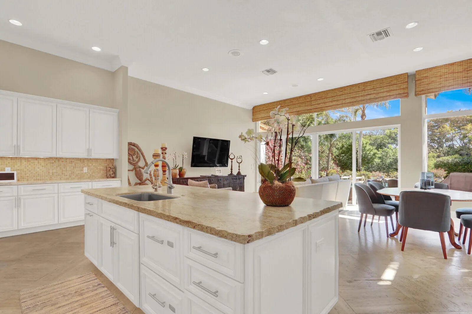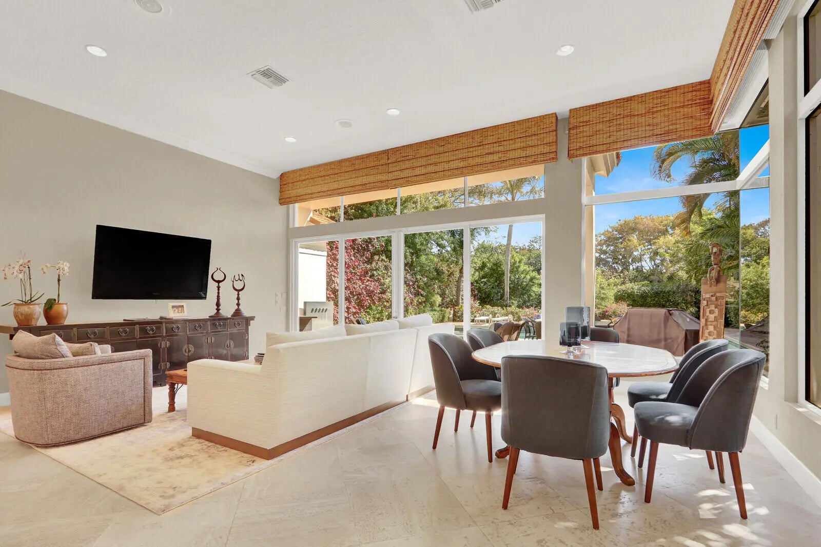 Light and bright pool home nestled in the golf and beach club of Frenchmans Creek. This extended patio residence offers 6 bedrooms, 7.1 baths plus an office and is filled with natural light. All guest bedrooms have ensuite baths. The outdoor space is perfect for entertaining with sparkling pool & spa, covered and open patio, lush gardens, and waterway.