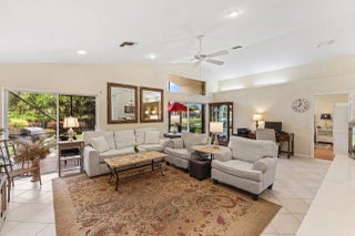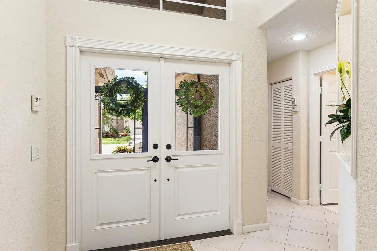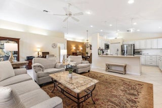 Behold this Coral model that sits on a meticulously landscaped, lakefront & private lot. You'll feel right at home as you enter through the new, impact-rated double door entry. This open and light floorplan features a gorgeous new kitchen, including all-wood cabinetry, quartz tops, buffet, and bar/additional pantry storage. All tile and wood flooring, hi-hat, and accent lighting adds to the luxurious ambiance. Step out back to your tiled and screened-in patio, and enjoy some shaded/covered space to relax or entertain guests. Valencia Lakes is a premiere GL homes community which offers an award-winning 55+ lifestyle experience that has been recently been remodeled in 2024. Discover a full-amenity recreational facility that rivals some of the most prestigious resorts in the area.