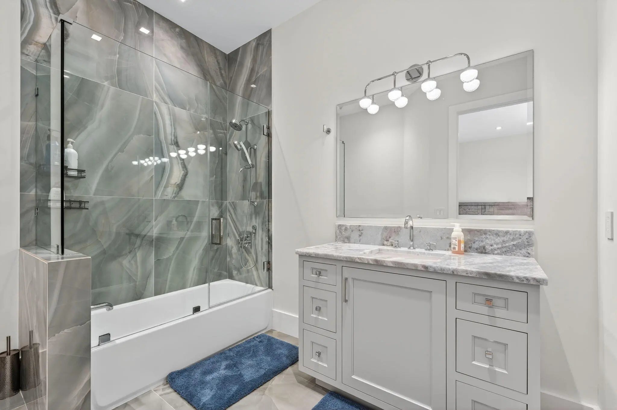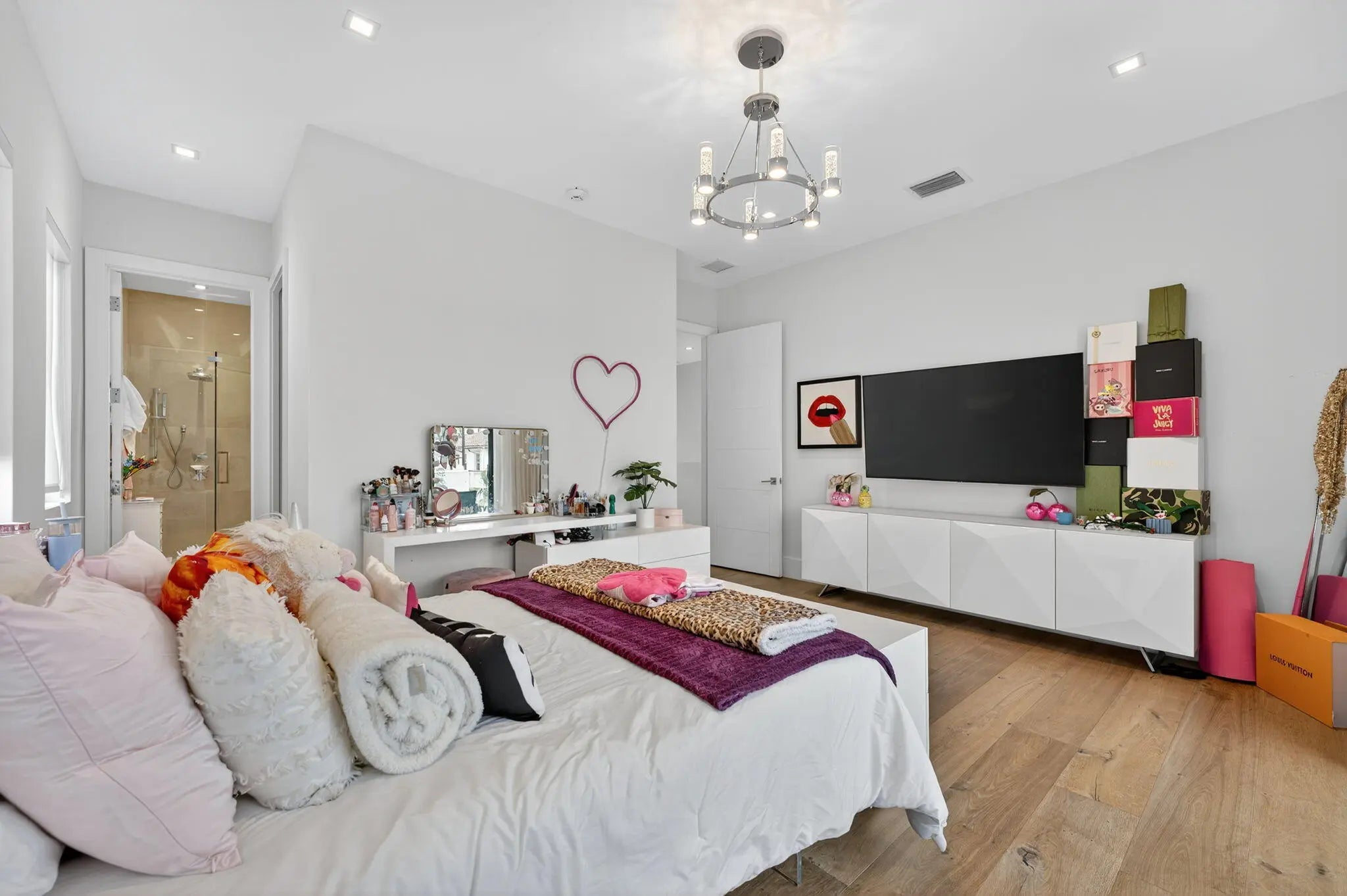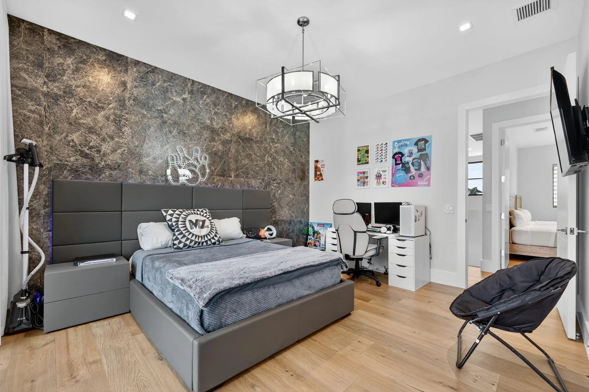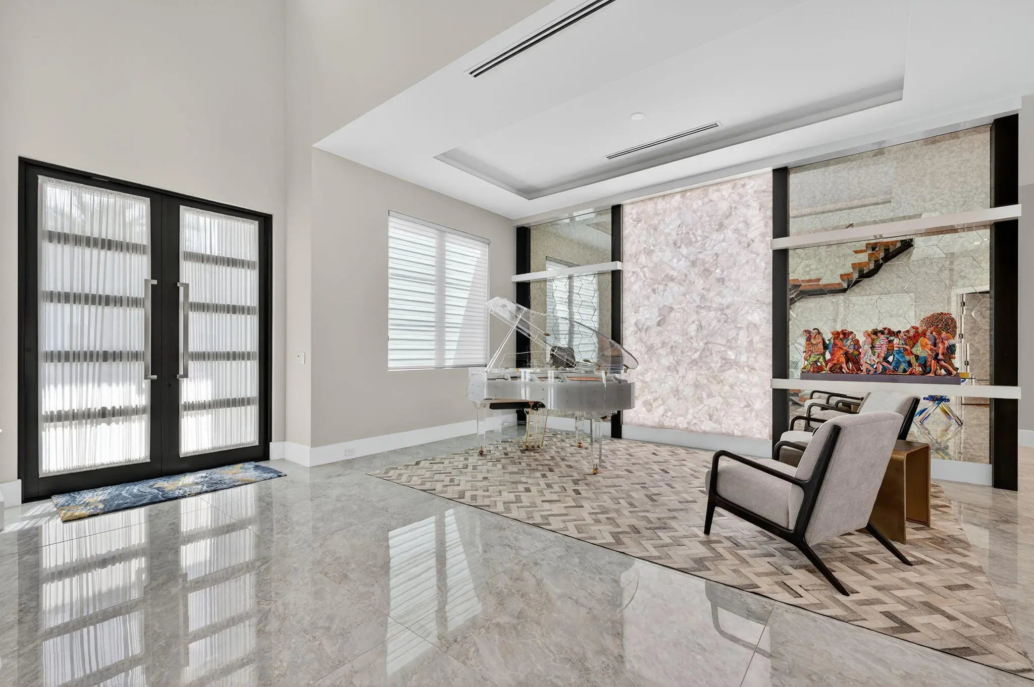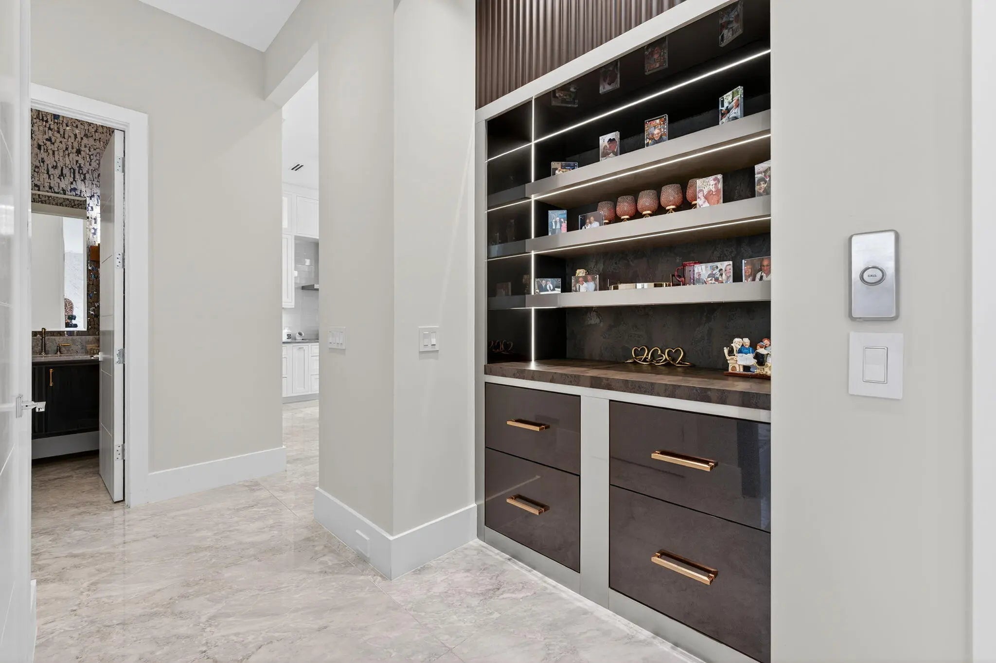 Exquisite Waterfront Estate with Unrivaled Luxury Finishes. Experience modern waterfront living in this magnificent newer-construction residence, showcasing a brand-new seawall and extraordinary high- end craftsmanship. Upon entry, you're greeted by a dramatic illuminated marble feature wall and custom floating staircase--a stunning architectural centerpiece. The open-concept living spaces are highlighted by designer fixtures, impact-resistant windows, doors, and garage doors. 3 Carrier Infinity A/C systems for ultimate climate control. The chef's dream kitchen is a masterpiece featuring all Miele appliances, including oversized refrigerator units, two dishwashers, double ovens, speed oven, built-in coffee maker, pot filler, and induction all surrounded by exquisite custom cabinetry. Adjacent, a built-in beverage station with four Sub-Zero fridge drawers and a custom light-up marble bar with Sub-Zero wine storage make entertaining effortless. Enjoy cinematic experiences in the custom media room/theater, complete with a 7" marble fireplace, cabana bath, and designer lighting. Each en-suite bedroom offers a custom walk-in closet, with finishes such as Italian 48x48 porcelain flooring and 9.5" wide French oak engineered wood floors. The primary suite is an elegant retreat, featuring a private office, built-in dressers with artistic marble tops, additional custom closets, dual Toto toilets, a double shower, freestanding soaking tub, and a pink quartz light-up vanity. Outdoor living is equally spectacular: an outdoor kitchen, turf yard, and resort-style pool (40x14) with Champagne Spa surrounded by marble pavers and lush new palm landscaping. Additional features include an elevator, whole-house generator, and extensive custom built-ins throughout. This home redefines waterfront luxury, a must-see masterpiece for the discerning buyer.