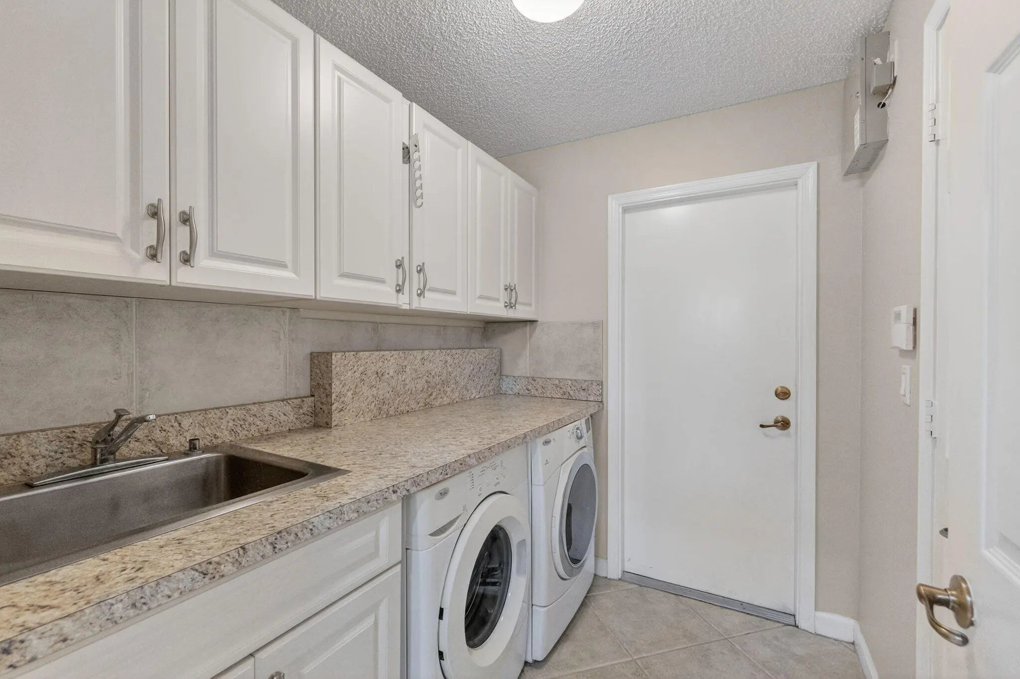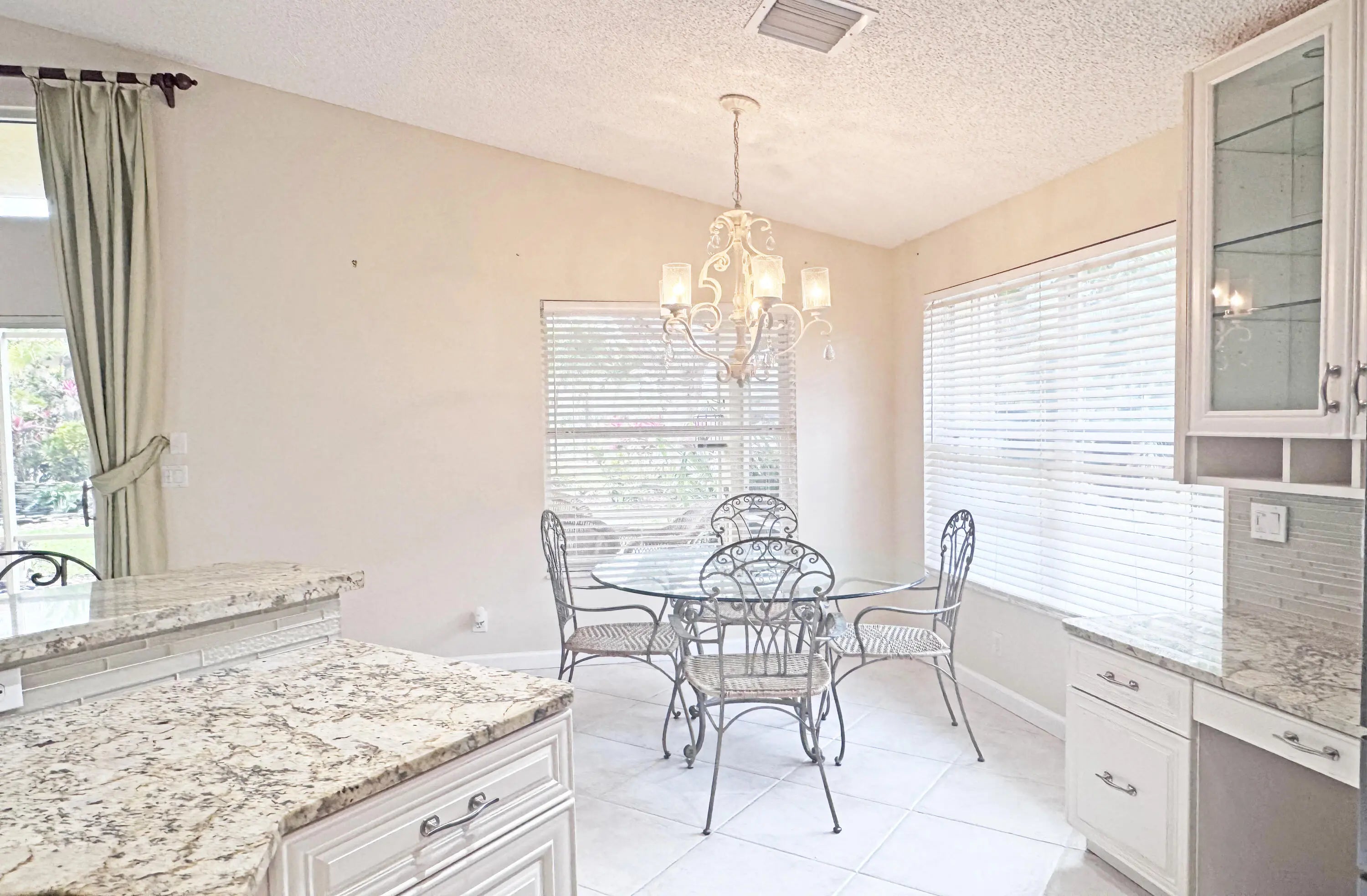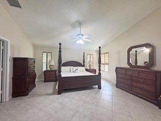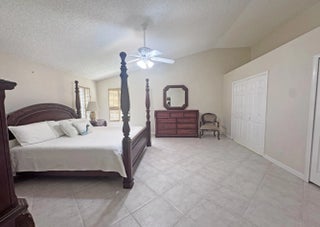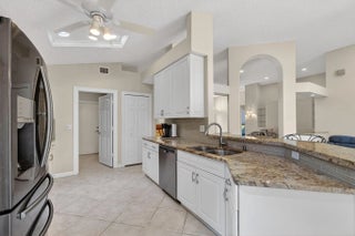 This lake-view home is in an all-ages, gated community on a large waterfront lot. Its almost 3,000 sq.ft. is made even more grand by its vaulted ceilings. There are 3 bedrooms, family room, living room, dining area, kitchen eat-in area, PLUS a flex space that can be used as a den or enclosed as an extra bedroom. The kitchen has granite, breakfast bar, counter lights & pantry. The main bedroom has a walk-in and double-wide closets, and a bathroom with a shower, separate tub and private WC. The screened, covered patio has views of the garden, pond, and a long view of the lake & fountain. The 2022 roof, accordion shutters & impact windows protect this spacious home. The garage has epoxy floors & EV charger. No mandatory country club fees. Joining Aberdeen GOLF & Country Club is optional.