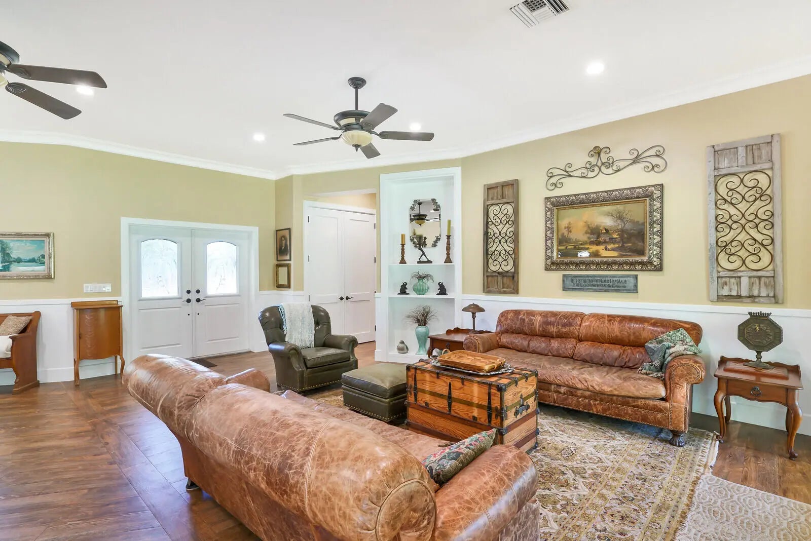 Needle in a Haystack! This Private One Story Oasis sits on 2.39 Acres. Masterfully Reimagined and Redesigned. Reconstructed with New Electrical, Plumbing, Kitchen, Bathrooms, Standing Seam Metal Roof and Custom Millwork. This Private Double Gated Compound is perfect for a Personal Compound, Equestrians, Home Based Business, Airbnb, or Retreat Center. Natural Light Pours into this CBS Built Home w/4 bedroom + Office, 10' High Ceilings throughout, 3 Car Garage with 8,000 sq ft of Brick Paver Circular Driveway. Custom Kitchen with SS Appliances, Granite Counters, Custom soft close Wood Cabinets & Pot Filler. Luxury Commercial Plank Vinyl Flooring throughout. Complete w/Impact Windows & Doors, RV Pad w/Water & Power, Pole Barn, Expansive Pond w/Party Deck, Private Gated Drive and Fully Fenced