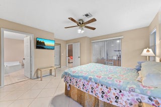 Picture yourself waking up every day in a stunning villa located in the tranquil gated community. This charming villa boasts a open floor plan w/high ceilings & gleaming tile flooring. The entire villa is adorned w/designer finishes & fixtures that give it a luxurious feel. The owner's suite offers ample closet space, a Roman tub, sink, a spacious step-in shower. The outdoor living space is perfect for entertaining, w/a large open patio providing ample seating & dining space. The Palm Isles community offers numerous amenities, including a clubhouse w/a fitness studio, indoor pool, spa, sauna, tennis & pickleball courts