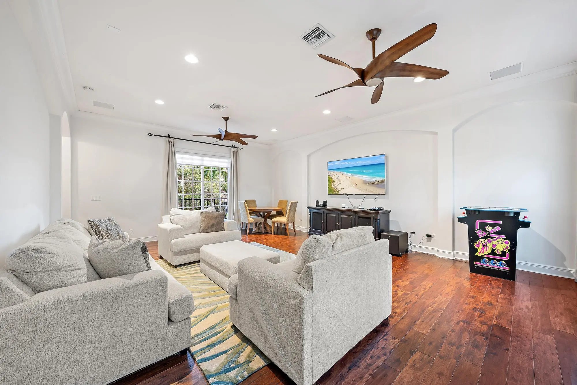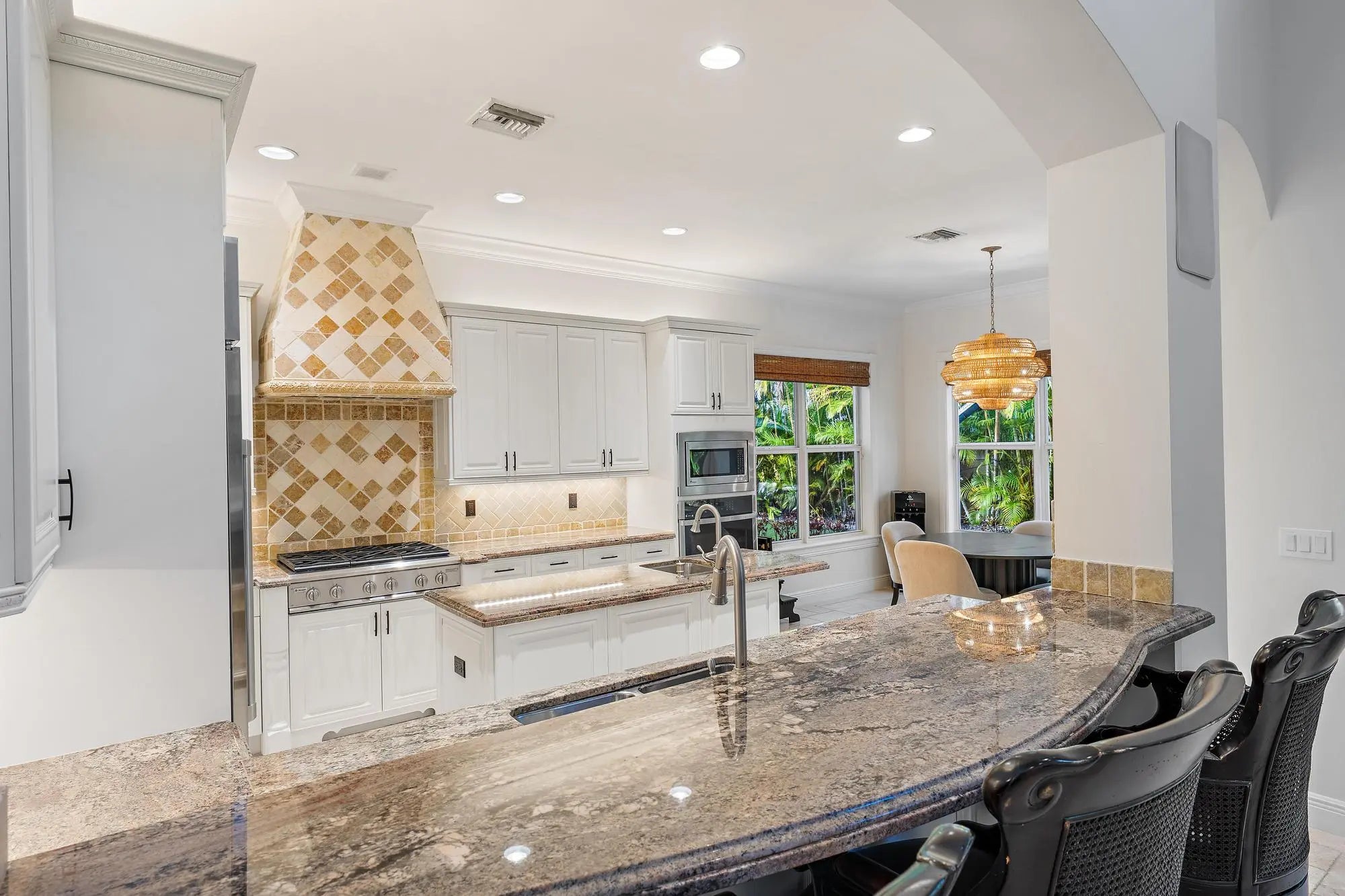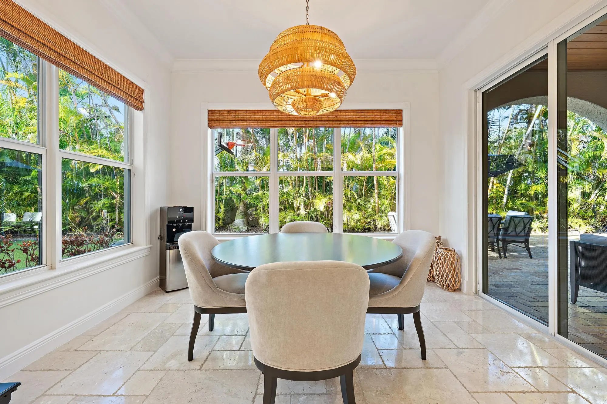 EXQUISITE single-family pool home in gated Nativa of North Palm Beach -- a boutique community of just 14 custom residences. This 4,000 sq ft CBS-built residence offers 4 bedrooms + office, 5.1 baths and showcases an expansive interior paired with a tropical resort-style pool area complete with a heated pool & spa, summer kitchen, lush landscaping and serene backyard views. Enter through a covered front porch into a welcoming foyer that flows to a formal dining area and a living room with soaring cathedral ceilings, travertine floors and abundant natural light. The first floor also includes the kitchen with solid white wood cabinetry, two pantries, center island, new GE appliances and a 6-burner GE Monogram gas stove, a bright breakfast area with sliders to the pool patio, a cabana bath, renovated laundry room, a dedicated office and a convenient half bath located off the primary-suite wing, plus a 3-car garage with custom epoxy flooring. The main-floor primary suite is a private retreat with sliding doors to the pool, solid engineered wood flooring, dual custom California walk-in closets and a newly renovated spa-like bath finished with marble floors, quartz counters, a large walk-in shower, and a freestanding soaking tub. Upstairs features warm wood flooring on the stairs and landing, a large media room with wet bar (easily convertible to a fifth bedroom), a loft with balcony overlooking the foyer, and three bedrooms -- all newly renovated modern ensuites -- plus a covered balcony off one guest bedroom overlooking the pool. Outdoor living is exceptional: fully fenced yard framed by lush tropical landscaping and exterior lighting, heated pool and spa with travertine pavers, covered dining patio, summer kitchen with Wolf gas grill and refrigerator, in-ground basketball system, turf side yard, and a covered front porch for relaxing mornings. Additional highlights and systems include impact windows and doors, commercial-grade tankless water heater, 22 kW whole-home generator, mosquito misting system, built-in hardwired Sonos speakers indoor/outdoor, central vacuum, renovated laundry with quartz counters and soft-close cabinetry, and a 3-car garage with custom epoxy flooring. Ideally located minutes from pristine beaches, hundreds of dining options in Palm Beach Gardens, conveniently near I-95 and PBI airport, this home pairs turn-key luxury with an unbeatable address. Schedule your private showing today -- exceptional homes in Nativa rarely stay on the market long