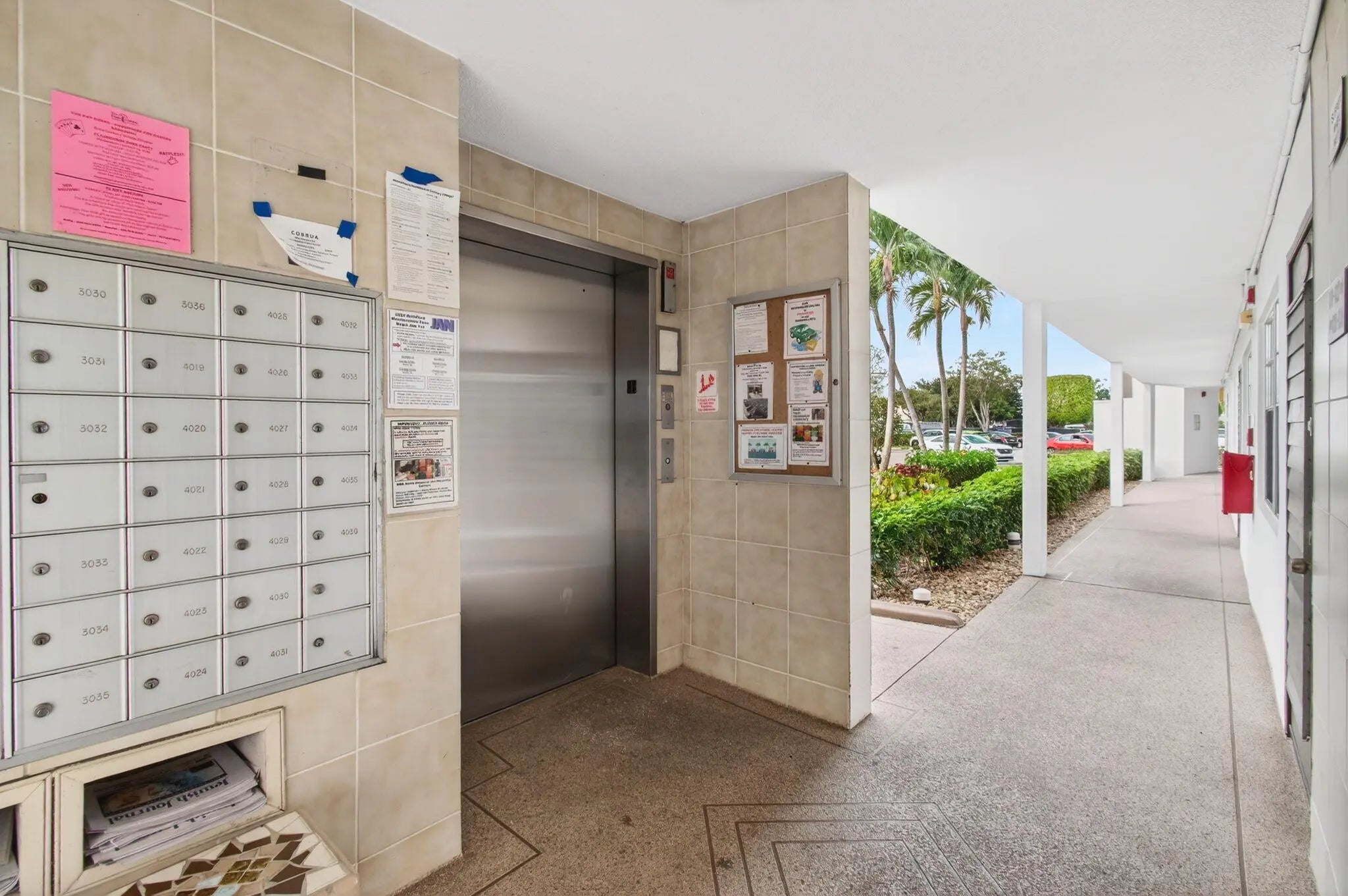 Clubhouse, Elevator(s), Fitness Center, Game Room, Indoor Pool, Laundry, Pool, Sauna, Tennis Court(s), Trash Chute, Courtesy Bus, Library, Putting Green, Street Lights