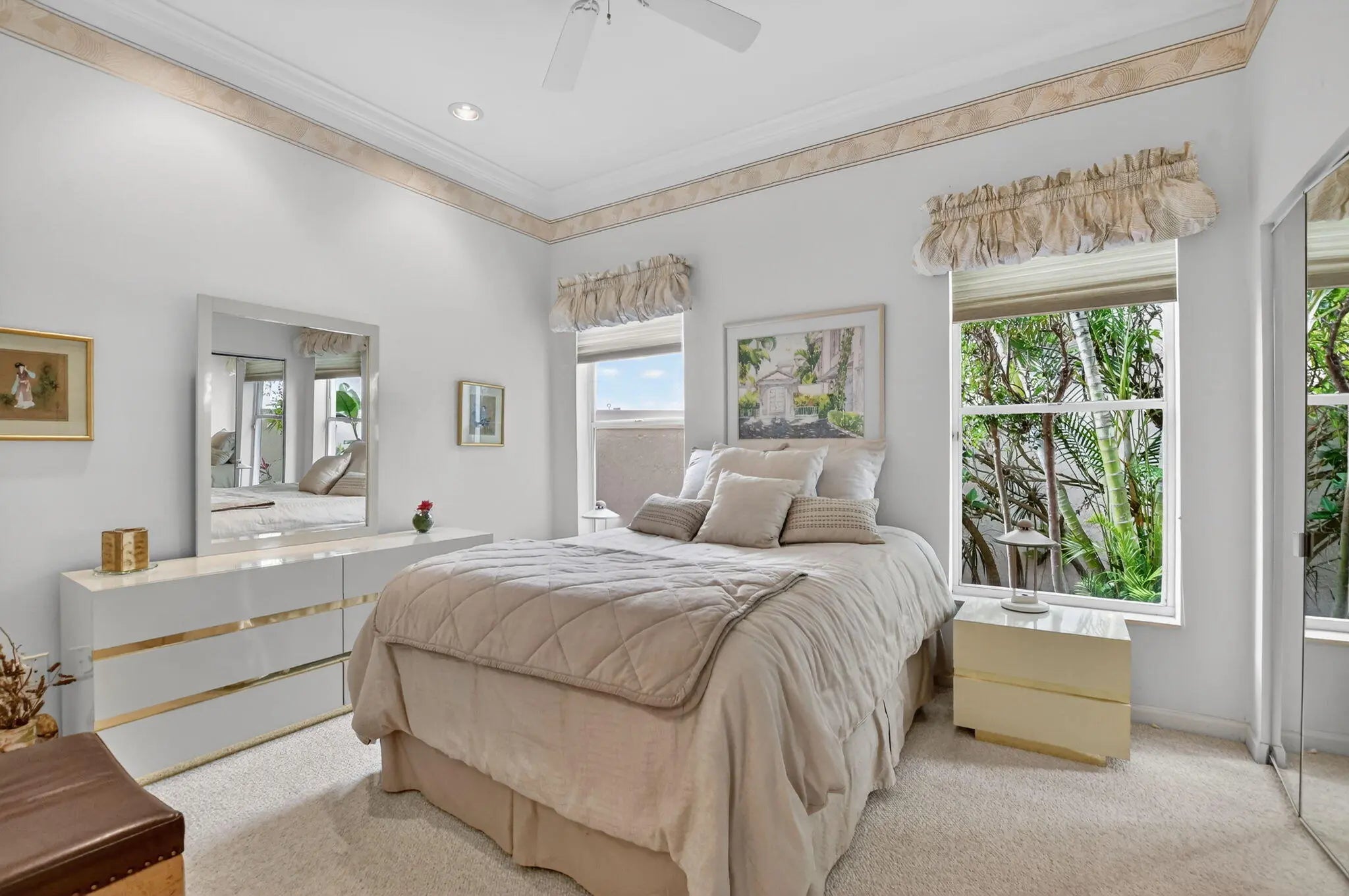 Welcome to this beautifully maintained 2-bedroom, 2-bathroom ranch-style home offering 1,948 square feet of bright and open living space in the sought-after Village of Laurel Pointe within Broken Sound Country Club. This residence is intentionally designed as a true two-bedroom home making it a rare find for buyers seeking spacious living with only two bedrooms. Positioned on a desirable corner lot at the end of a quiet cul-de-sac, this property provides privacy and a peaceful setting. Inside, soaring volume ceilings and large windows fill the home with natural light, enhancing the expansive feel of the main living areas. Both bedrooms are generously sized en-suite suites, offering exceptional privacy and comfort. The primary suite serves as a private retreat, featuring a large walk-in closet and a massive primary bathroom with abundant space for a luxurious spa-like experience. Designed for those who value larger living spaces rather than additional bedrooms, the layout allows for open, comfortable living and effortless entertaining. Step outside to the large screened patio, perfect for year-round Florida living. The outdoor space includes a heated in-ground jacuzzi, creating a private oasis ideal for relaxing or hosting guests. Additional highlights include: -True 2-bedroom / 2-bathroom layout -1,948 sq ft of spacious interior living -Both bedrooms are full en-suite suites -Volume ceilings and oversized windows -Corner cul-de-sac lot -Large screened patio with heated in-ground jacuzzi -First time ever offered on the MLS Located within the prestigious Broken Sound Country Club, residents enjoy access to world-class amenities including golf, tennis, fitness, dining, and a vibrant social lifestyle. This rare two-bedroom opportunity in Laurel Pointe combines generous living space, privacy, and an unbeatable location within one of Boca Raton's premier country club communities.