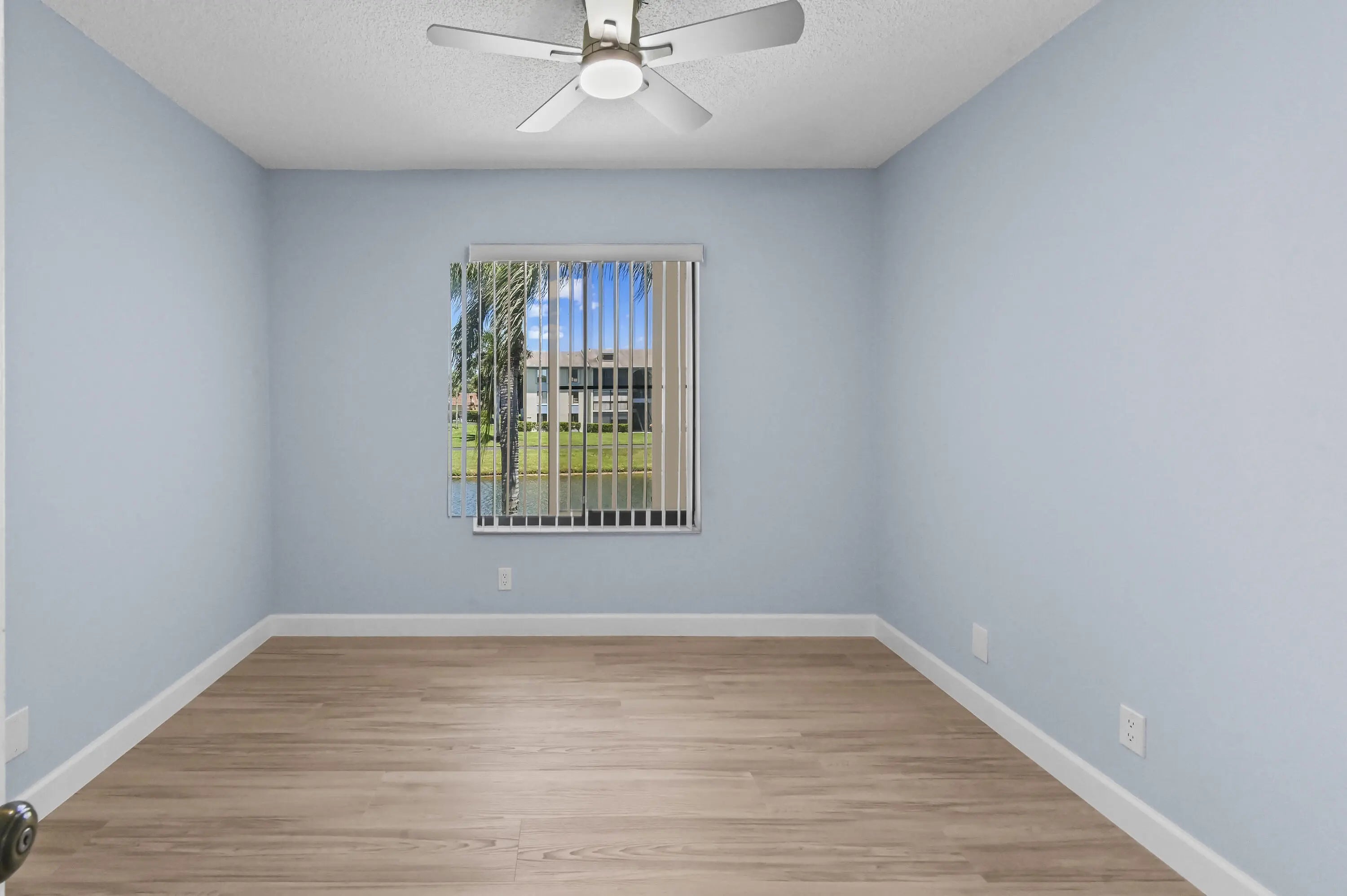 Welcome to Palm Club Village II Condo, a 24/7 manned and gated community offering comfort and convenience. This spacious and renovated lake view condo features 1,106 sq. ft. of living space, including 2 bedrooms, a walk-in closet, 2 bathrooms and a laundry room. The home boasts an entire kitchen remodel, brand new ceiling fans, light fixtures, patio and window screens, and vertical blinds. It has a newer AC and tile flooring in living, dining and kitchen areas and new luxury vinyl plank flooring in the bedrooms. The kitchen features granite countertops with a bar setting and brand new appliances including a refrigerator, oven/range, and dishwasher, perfect for both everyday living and entertaining. A laundry area with a washer and dryer adds convenience. Enjoy relaxing on the screened and covered balcony overlooking the lake. This unit comes with a prime parking spot located directly outside the building, plus ample guest parking. Conveniently located near the pool and tennis courts for easy access to community amenities. Palm Club Village offers a wide range of amenities, including a community pool, clubhouse, tennis courts, bike/jog path, wooded landscaping, and street lights. The location is ideal, close to I-95, major shopping, fine dining, and is just 10 minutes from Palm Beach International Airport.