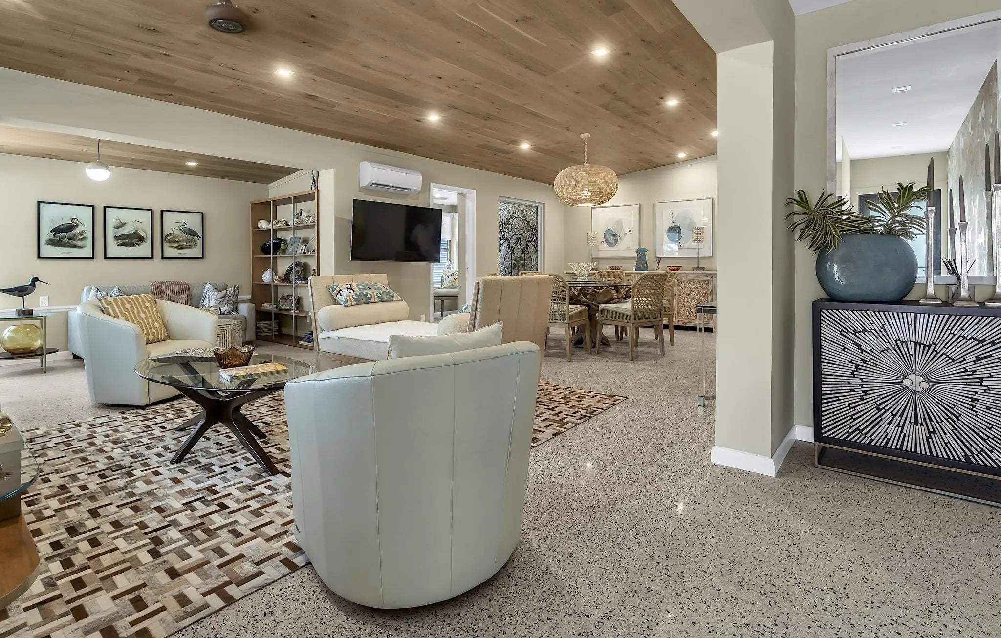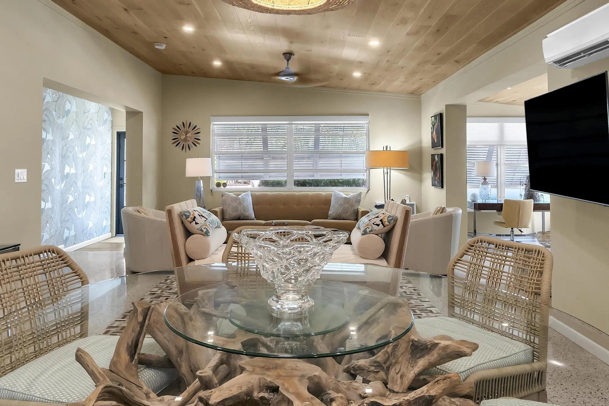 Immaculate Mid Century Modern residence in highly sought-after College Park! Featuring 2 bedrooms, 2 baths and a charming room which could be used as a third bedroom. This home blends timeless design with thoughtful modern upgrades. Original restored terrazzo floors add classic character and elegance. The home features super efficient reverse cycle mini-split systems for year round comfort and energy savings. The brand new kitchen appliances make cooking a pleasure, while the home's bright and airy layout captures the charm of mid century architecture. Step outside to the gorgeous, professionally maintained garden that creates a private tropical setting. The rear patio is perfect for entertaining, complete with a retractable awning ideal for shaded outdoor dining. Truly a must see!!