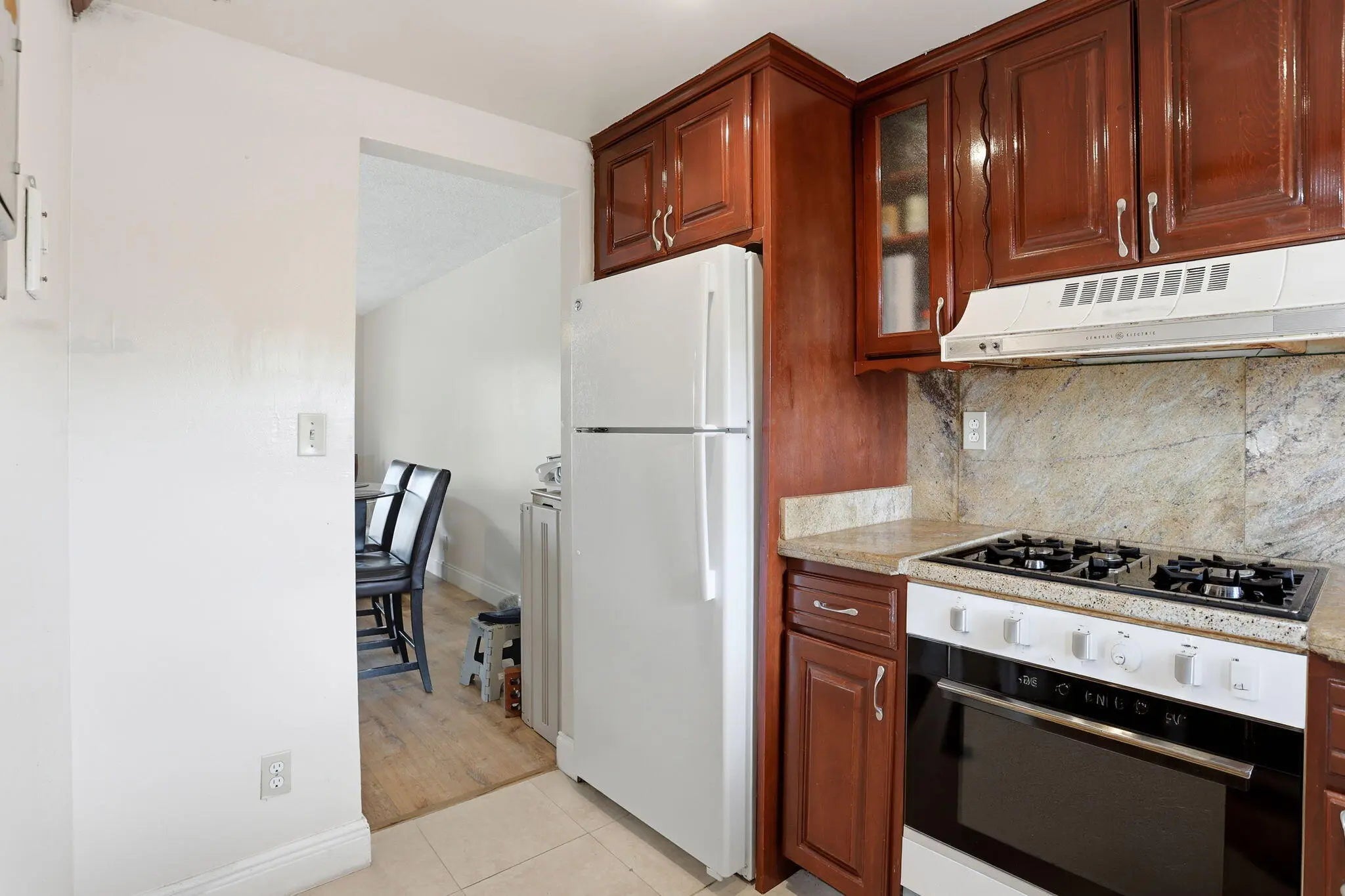 Welcome to this well-maintained 2-bedroom, 1-bathroom third-floor condo with a pleasant pool view. The unit features impact windows throughout and vinyl plank flooring in the living, dining, and bedroom areas. The kitchen offers granite countertops (2013) and a white refrigerator replaced in 2016-2017. Additional updates include AC replaced in 2020-2021, water heater (2015), new baseboards, and recently replaced ceiling sheetrock. The primary bedroom includes blackout shades, new shelving, closet doors, and a dark wood ceiling fan. Community laundry is conveniently located on the same floor with an additional facility on the second floor.