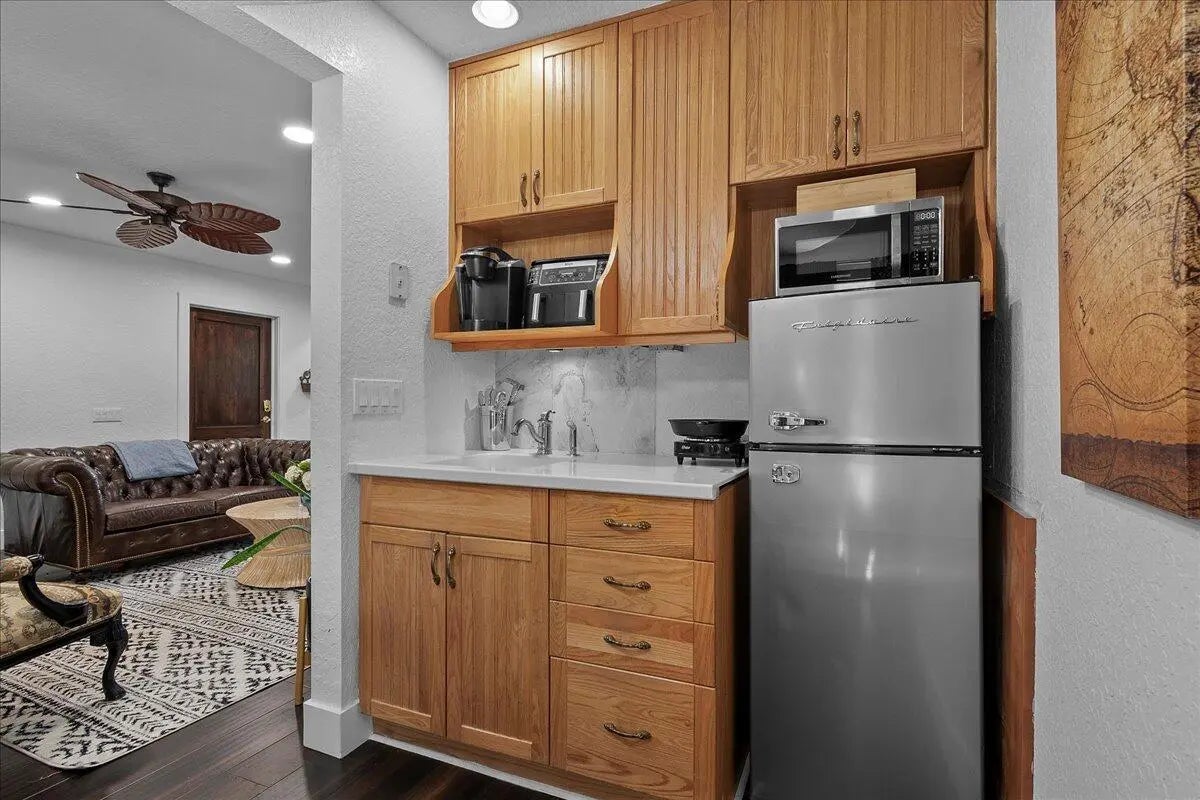 Rare gem in Sugar Pond Manor, golf cart distance to WEF, shops, and restaurants. This is a very special opportunity to live in a fully renovated 4/3 main house-3 bedrooms/2 bathrooms on the ground floor, an en suite loft bedroom/bathroom upstairs, and an additional attached (but private w/separate entrance) 1/1 in-law suite! Add that to a backyard oasis, new roof, newer water heater and AC, 2 car garage, extra wide driveway (3 cars) no HOA fees, and you have your winter haven!