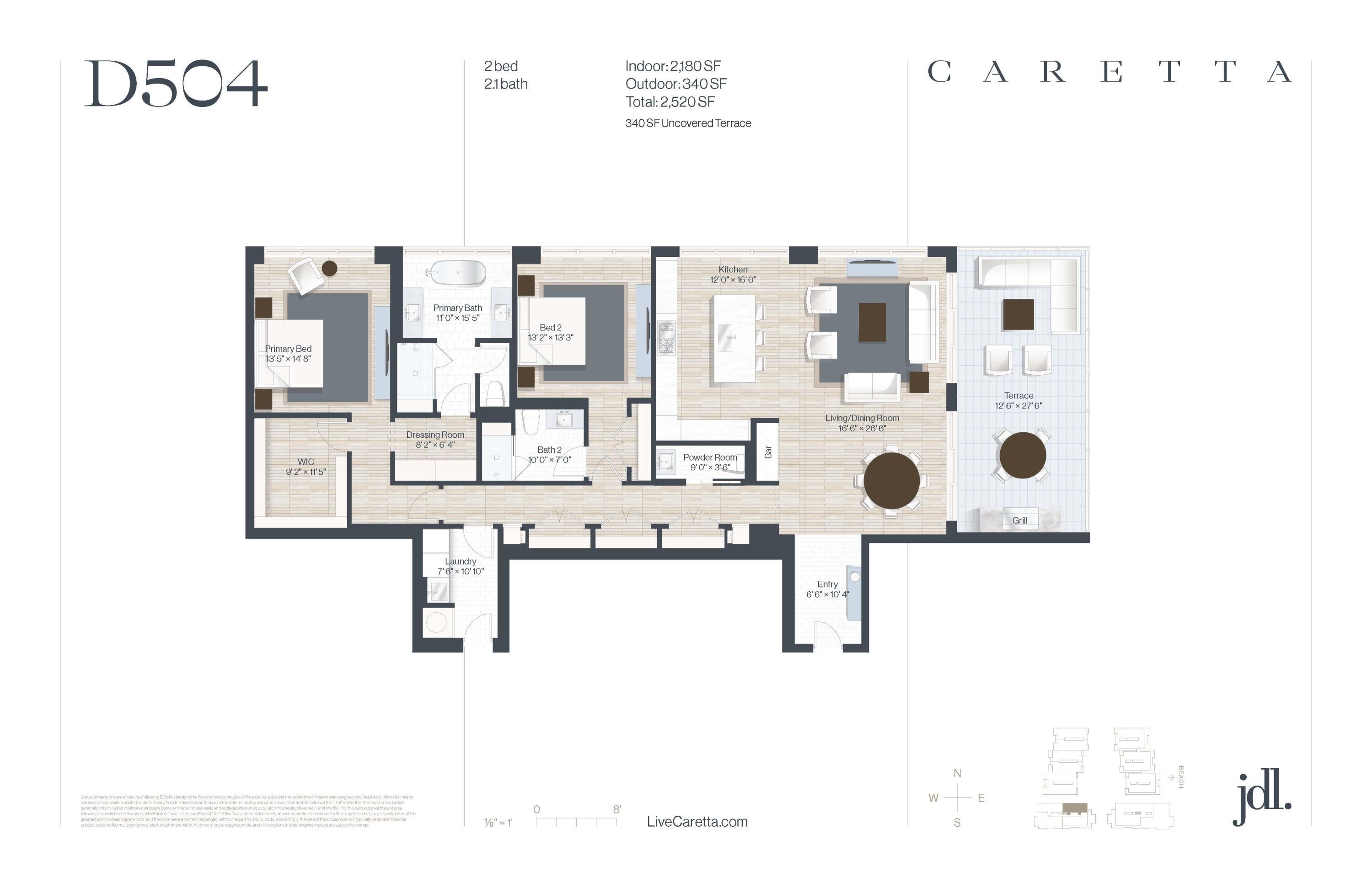 Juno Beach's newest seaside urban community, Caretta! Sales center now open. This corner unit offers all the modern luxuries including a chef's kitchen featuring wolf stove, sub-zero refrigeration and a spacious island with waterfall countertops, elegant features, and 10' ceilings. Enjoy Florida living with an outdoor terrace and outdoor kitchen with a built-in gas grill. Caretta is Juno's newest luxury development with amenities including rooftop pool, sauna, dog park, fitness center, golf simulator, and restaurant. Just 400 yards to the beach. Since 1993, JDL Development has earned a reputation for developing luxury developments that exceed expectations, resulting in some of Chicago's most significant developments like One Chicago and No.9 Walton.