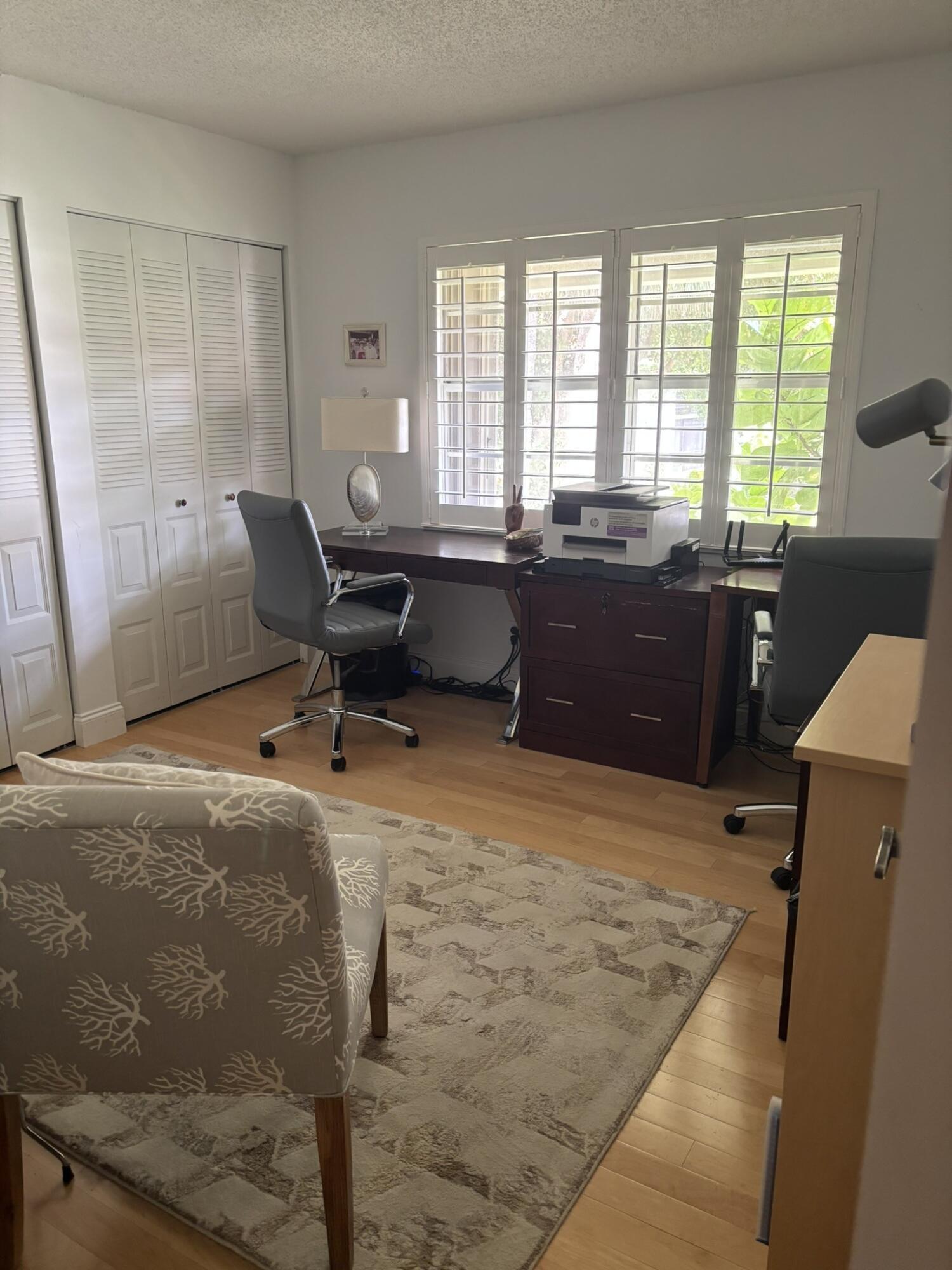 Lovely 2 Bedroom 2 Bath condo at Boca Linda West, in ALL AGES section of the community. Kitchen features new Forno range, luxury quartz countertops. Also, new washer/dryer, wood floors, 2 year old A.C., custom-built cabinetry in walk-in closet in bedroom. Complete accordion shutters for hurricane protection. Roof was replaced in 2024. Great location, east of 95, south of Glades, close to Boca Raton High School, Mizner, Beaches.