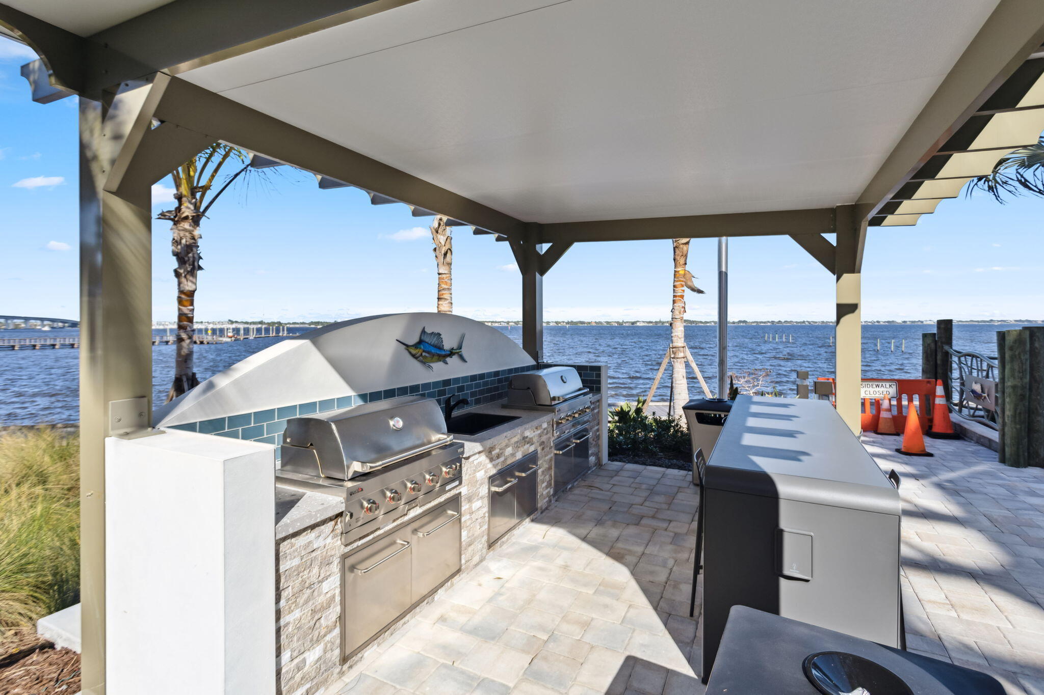 Experience the pinnacle of waterfront living in this newly constructed 2023 condo at Sailfish Cove in Stuart. This 1-bedroom, 1-bathroom corner unit offers 791 sqft of modern elegance, featuring an open kitchen with premium appliances, laminate flooring, impact glass windows, and French doors leading to an oversized private patio with stunning Bay views. The gated community provides resort-style amenities, including a pool, Jacuzzi, outdoor kitchen, panoramic rooftop, and available boat slips with ocean access. With key card entry, assigned parking, and a prime location near shopping and dining, this condo is the perfect blend of luxury, convenience, and coastal charm.