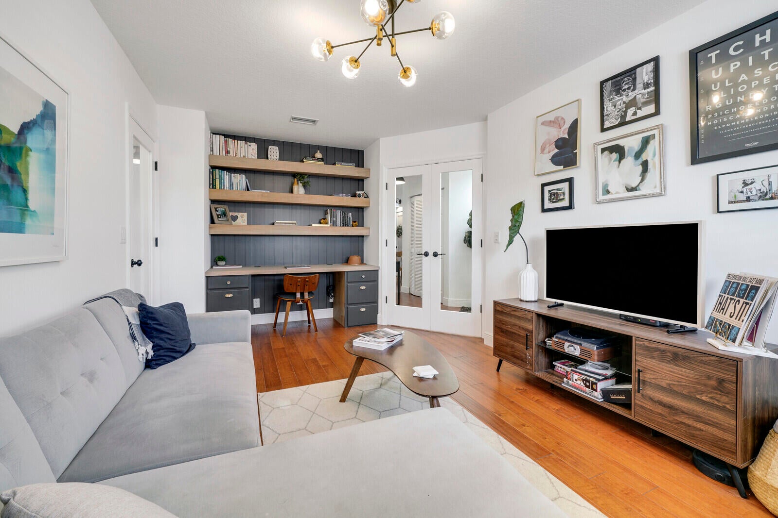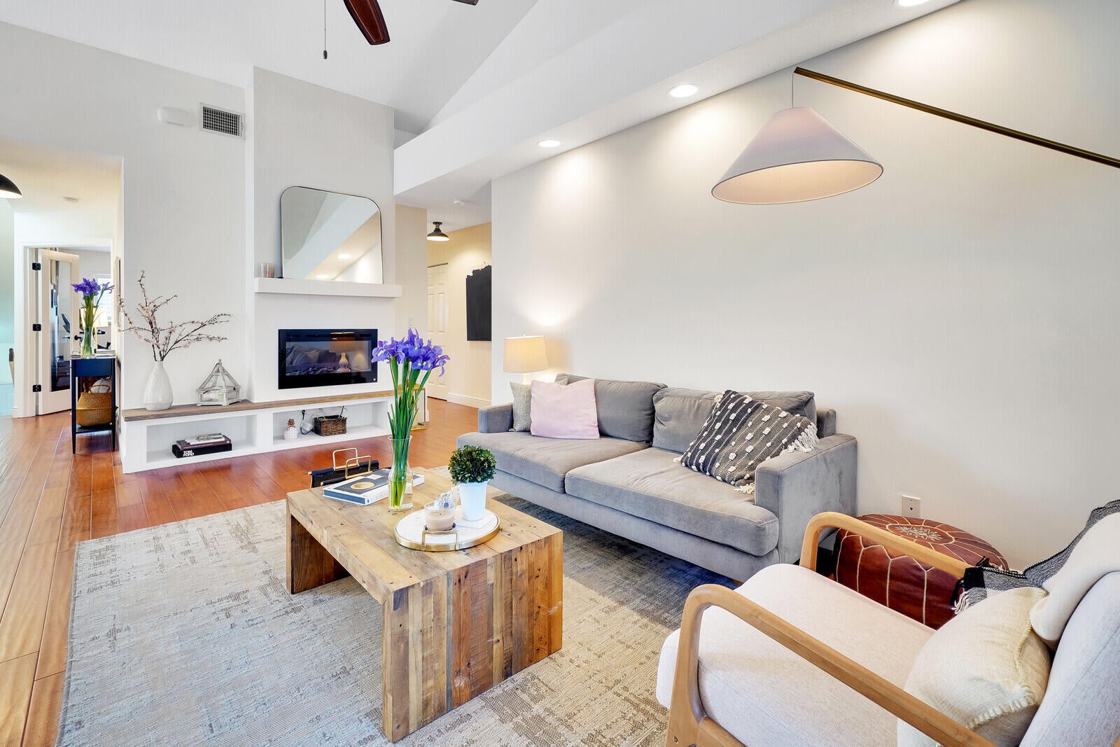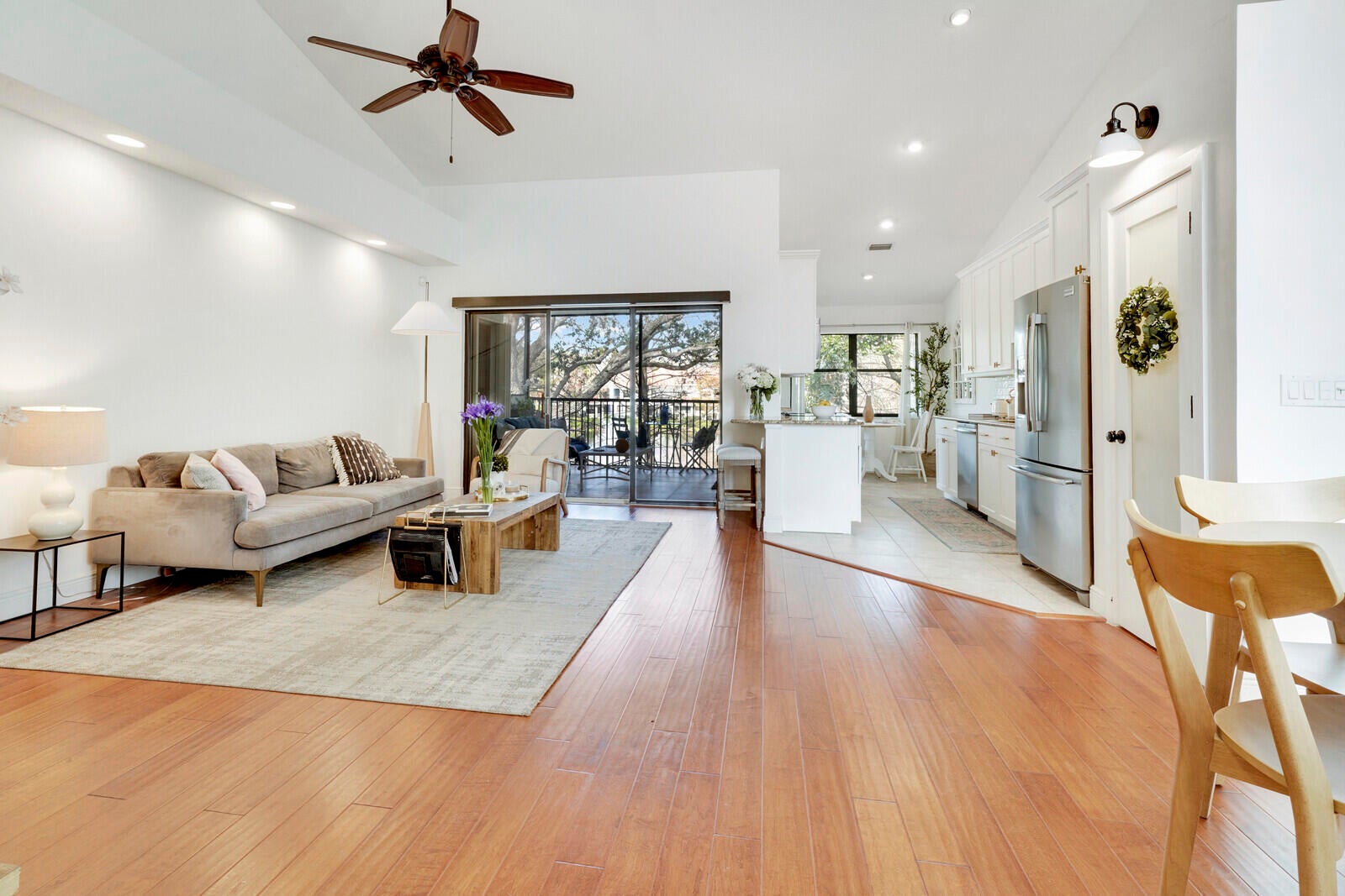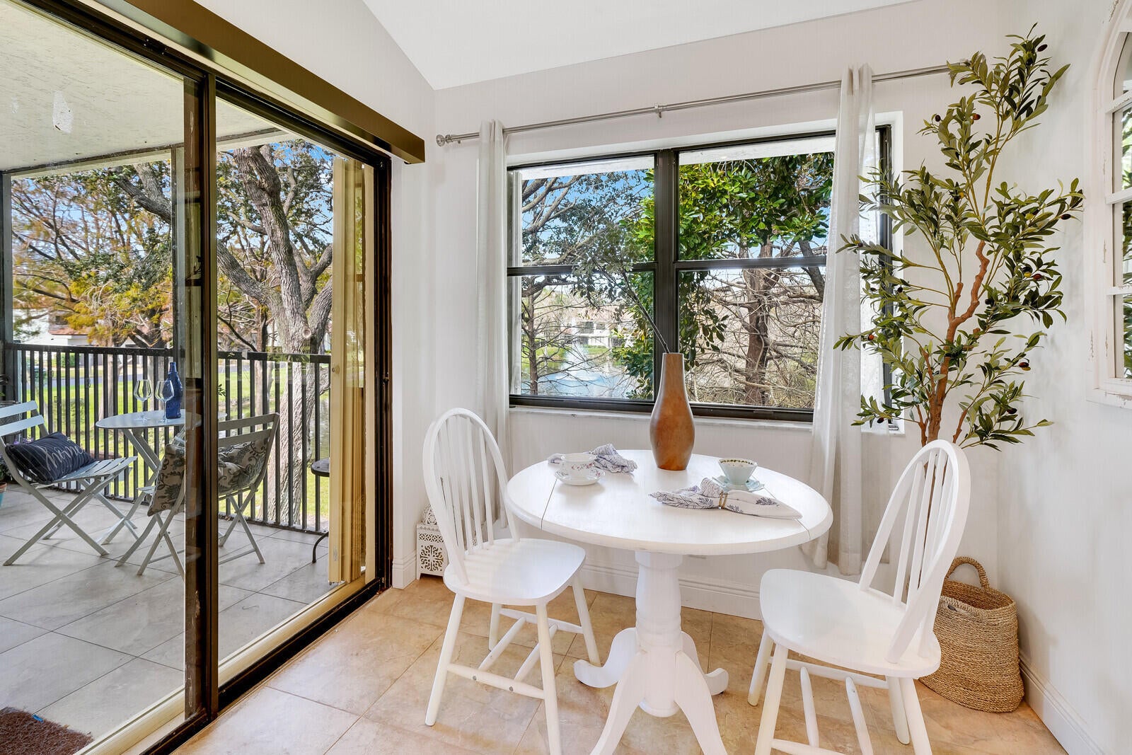 Move in ready! Bright, spacious remodeled 3 Bedroom/2 Bath Lake front home with an attached garage. New roof 2025. Welcome to the well located all ages community of Quail Run with beautiful tree-lined streets, ponds and many resort style amenities. Newly renovated clubhouse, fitness center, heated pool, pickleball, tennis and much more. This light and airy coach house style Condo has a large open living room with sliding doors leading to a cozy screened-in balcony nestled in the tree canopies. The sizable covered lanai provides lovely views of the picturesque lakes, fountains and lush landscaping. The condo features vaulted ceilings, open concept kitchen, special lighting fixtures, custom fireplace, electric blinds, french doors, redesigned master BTH with a custom additional closet...and storage. The 3BDR is currently an attractive highly functional multi-purpose office/den with custom shelves and a large desk/working surface. HOA $550/month plus POA $150/month total approximately $700. New roof assessment of $18,870 paid in fully by owner! The Condo is situated in a peaceful and charming neighborhood. Quail Run boasts a recently renovated community center, heated resort style pool with spa, pickleball, tennis, fitness center, bocce ball and much more. Additional parking spaces adjacent to the Clubhouse can be rented through the Association. Conveniently located close to the beach, lively Delray Beach, two international airports, shopping, restaurants, park, and major highways. Pet friendly, two pets allowed. Great Condo, amenities and location!
