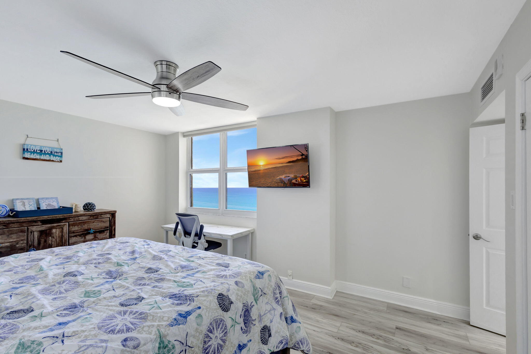 Fully updated, direct ocean condo with impact windows. Unobstructed beach views in all directions and an intracoastal view from your 14th floor wrap-around balcony. Kitchen has stainless steel appliances, granite countertops, decorative tile backsplash, undermount lighting, and white cabinetry. Floors are tile in the living areas and new coastal wood look luxury vinyl plank in the bedrooms. Built-in wet bar with wine rack. A/C is 2022. Covered parking spot. Storage cage. HOA includes exterior insurance, water, cable/internet package, gym, grill, and pool. If you are ready to live the beach lifestyle with quick access to some of the best restaurants and shops. Washer and dryer can be installed with ARC approval. Cats allowed, no dogs, but ESA dogs will be approved.