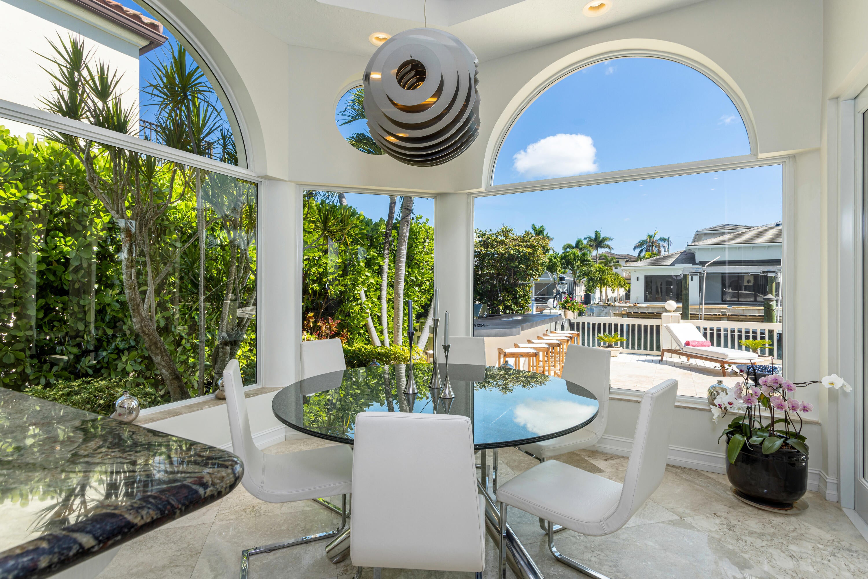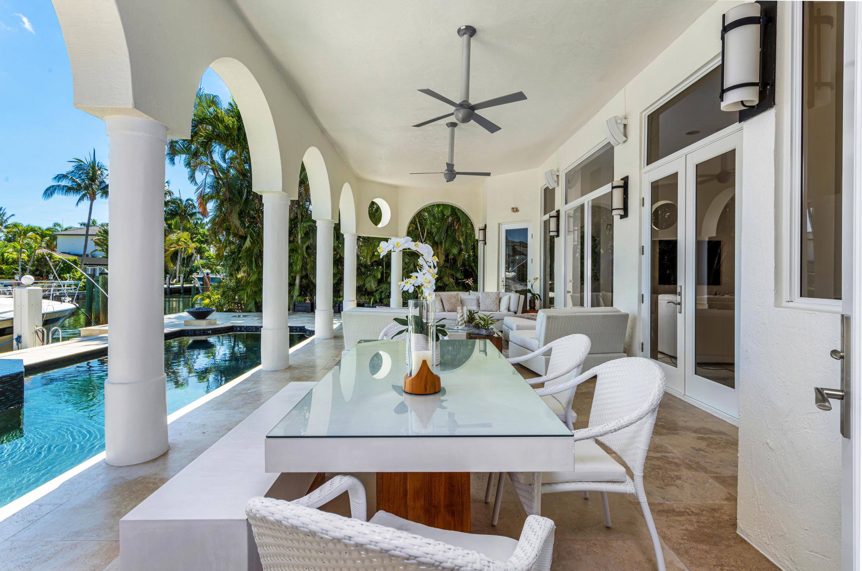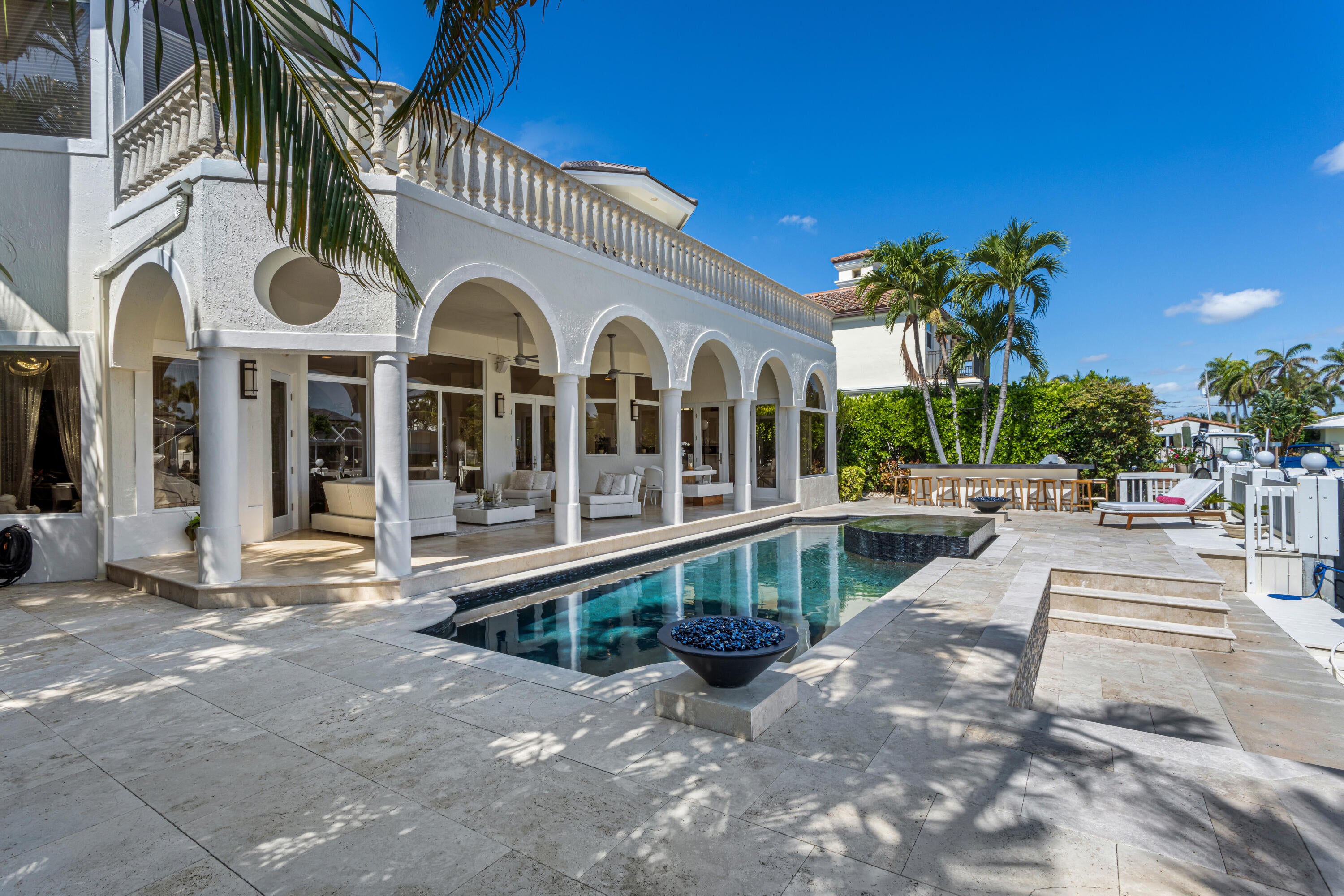 Luxe Boca Raton deepwater estate in the desirable Lake Rogers community fronts 80 feet on a deep-water canal with a dock offering easy ocean access, desirable for boaters. Interiors are peerlessly defined by grand architectural adornments, and the magnificent outdoor entertaining area centers on a sun-splashed pool with a spill-over spa bounded by an expansive patio with a wet bar and barbeque area.LOCATION: 797 NE 33rd Street, Boca Raton, Florida: On the western shore of the Intracoastal Waterway, Lake Rogers is located a sought after enclave in Boca Raton with direct Intracoastal and Ocean access. This idyllic waterfront community is renowned for its remarkable tranquility that borders Lake Rogers and is a short distance to the lush woodlands of Spanish River Park and pristine sandy white beaches. PROPERTY: Presenting a stunning sense of place with transitional styling dominated by a dignified portico entrance, this impressive residence is introduced by a paver motor court, accentuated by tropical landscaping and punctuated by stately specimen palms. In the rear outdoor entertaining area, the loggia overlooks the sun-splashed pool, with an overflow spa, framed by an expansive terrace, where an entertainment bar offers an invitation to enjoy casual Intracoastal living or formal gatherings. Bounded by 80± feet of deepwater frontage and a dock, boaters have easy access to the ocean, with no fixed bridges. RESIDENCE: Exceeding all expectations for elegance and elan in a magnificently manicured landscaped setting, this five-bedroom, 6,048± total-square-foot waterfront estate is embellished with stunning architectural detailing that includes stately columns, gracefully entries and windows, exquisite moldings, marble flooring, and designer-curated vaulted ceilings. Creating a breathtaking first impression, the refined foyer introduces the main living areas, comprising a music room, topped by an intricate triple-tray ceiling; the formal dining room, delineated by columns; and the chic living room, featuring a wet bar. In an open-floorplan configuration, these rooms are infused with natural light and boast a seamless indoor-outdoor connection, attributed to a bank of impact-glass sliding doors, topped by transoms, that open to the grand pool-side loggia, where a serene water view is the dramatic backdrop. The masterfully composed gourmet kitchen, centered on a work island, is handsomely finished with contemporary white-lacquered cabinetry, high-end appliances, and lustrous stone counters, with the pool-view atrium-inspired breakfast room just adjacent. A peaceful sanctuary, the water-view secondary primary bedroom suite opens to the pool patio and comprises two walk-in closets and a luxe bathroom. Upon ascending to the second floor, a breakfast bar in the loft serves a garden-view guest bedroom and the luxurious secondary primary main bedroom suite with an enormous walk-in closet and a spa-inspired bathroom, appointed with a soaking tub as well as double vanities, shower and water closets. All three rooms open to the magnificent water-view balcony. Completing the layout are a garden-view office, a first-floor guest bedroom suite with cabana bathroom, a dramatic black-and-stainless-finished powder room, laundry room and two-car garage. Reinterpreting coastal living in one of Boca Raton's most premier locations, this superlative water-view estate delivers an incomparable haven of refinement and charm. DISCLAIMER: Information published or otherwise provided by the listing company and its representatives including but not limited to prices, measurements, square footages, lot sizes, calculations, statistics, and videos are deemed reliable but are not guaranteed and are subject to errors, omissions or changes without notice. All such information should be independently verified by any prospective purchaser or seller. Parties should perform their own due diligence to verify such information prior to a sale or listing. Listing company expressly disclaims any warranty or representation regarding such information. Prices published are either list price, sold price, and/or last asking price. The listing company participates in the Multiple Listing Service and IDX. The properties published as listed and sold are not necessarily exclusive to listing company and may be listed or have sold with other members of the Multiple Listing Service. Transactions where listing company represented both buyers and sellers are calculated as two sales. Cooperating brokers are advised that in the event of a Buyer default, no financial fee will be paid to a cooperating Broker on the Deposits retained by the Seller. No financial fee will be paid to any cooperating broker until title passes or upon actual commencement of a lease. Some affiliations may not be applicable to certain geographic areas. If your property is currently listed with another broker, please disregard any solicitation for services. Copyright 2024 by the listing company. All Rights Reserved.