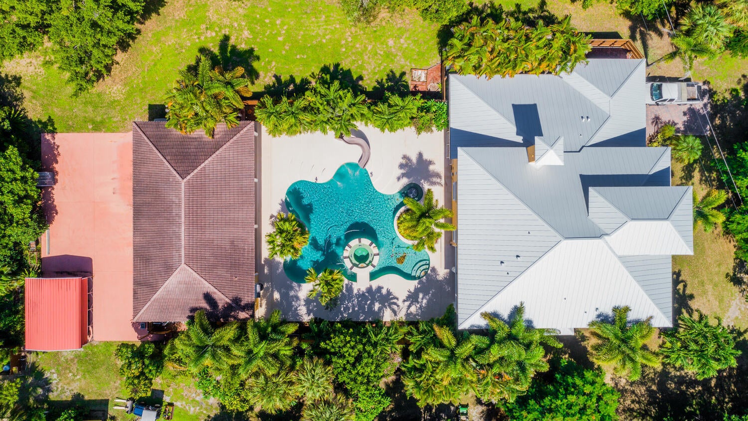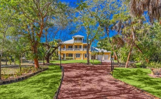 **3+ Acre Riverfront Estate Home with Attached 2-Car Garage and Detached 1,600 Sq Ft 4-Car Garage with/A/C, Featuring Bath, Gym, and Workshop, Generator, Carport, and Concrete Pad.**This property boasts a private 435-foot boat dock/pier, built in 2017, and is situated high and dry with a 30-foot el (as per the owner). Set back over 250 feet for added privacy, this home offers 4,600 square feet of a/c space and a total of 6,400 square feet, 10-foot ceilings spanning across three stories. It includes 4 bedrooms, 4 baths, a kit w/ granite counters, a double oven, a media room, and covered balconies front and rear, newer aluminum roof, impact windows 2nd and 3rd floors, and electric panel. Enjoy a stunning 60,000-gallon free-form saltwater pool Explore paradise on Florida's Treasure Coast