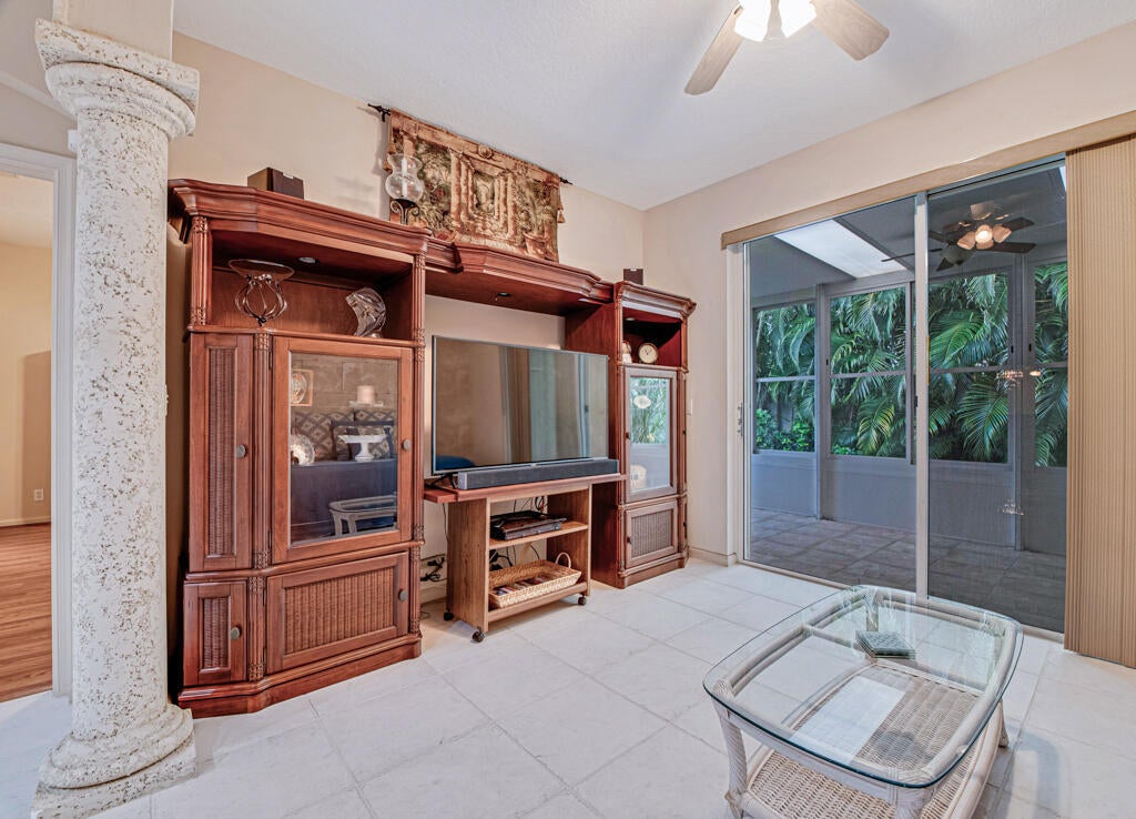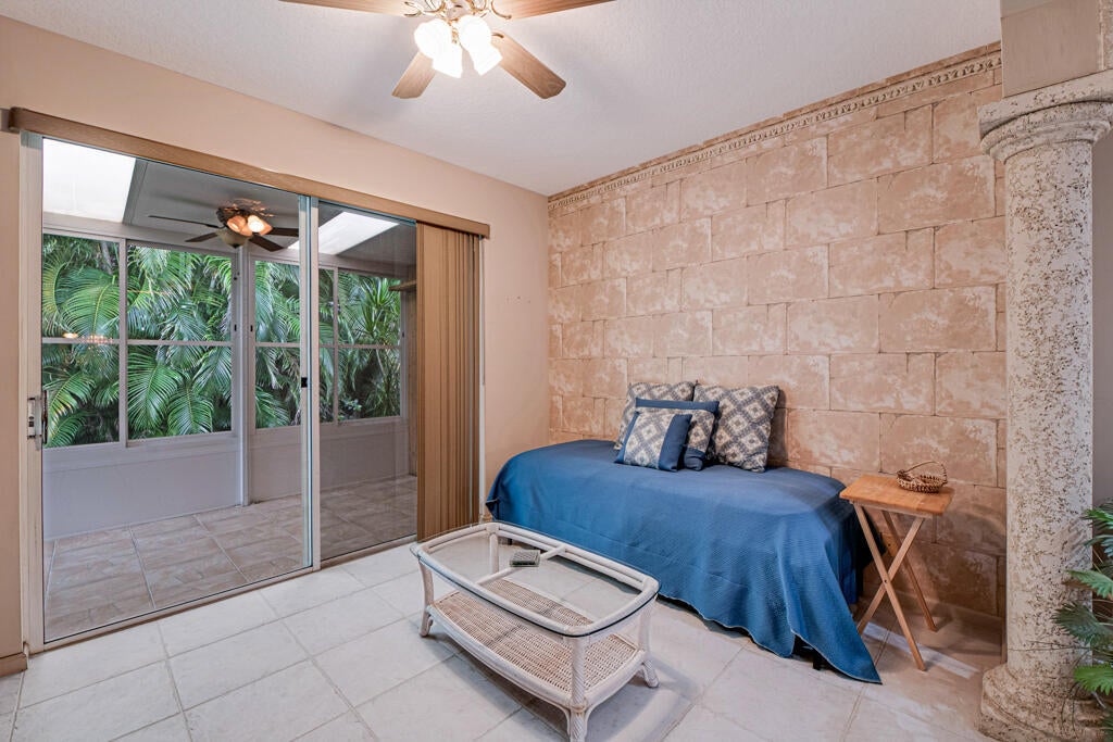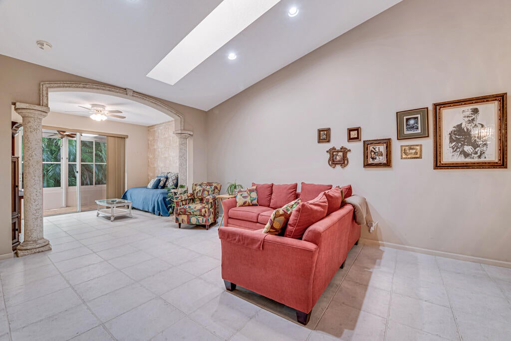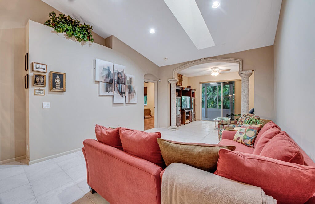 BRAND NEW ROOF! This spotlessly clean villa has been impeccably maintained. Featuring a versatile den/office space that can easily serve as a third bedroom and a glass-enclosed patio perfect for enjoying the serene surroundings. The open, split bedroom floorplan offers high vaulted ceilings and a skylight, beautifully illuminating the family room. Nestled amidst lush tropical landscaping this property feels like a private oasis. Check out the 3D virtual tour for an ''in person'' view. Palm Isles boasts multiple tennis courts, pickleball courts, pools, on site cafe & more to keep you engaged and entertained! Multi-million Dollar Renovated Clubhouse reopens later this year! Get in now and get ahead! Property being rented seasonally 1/2026 - April 30th 2026.