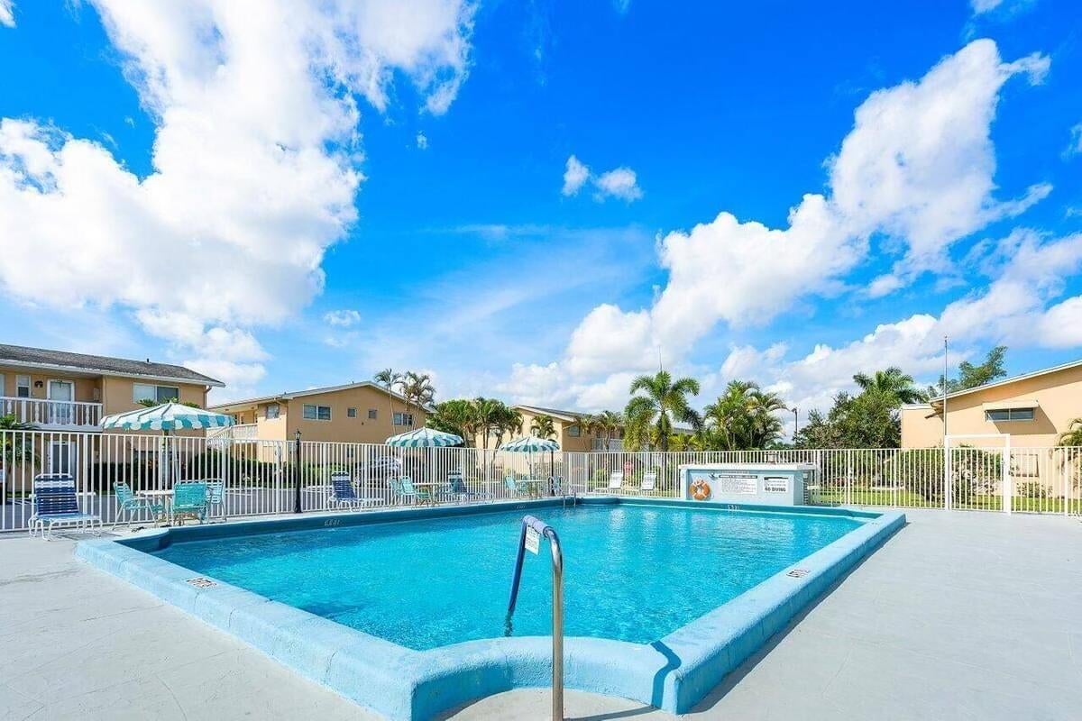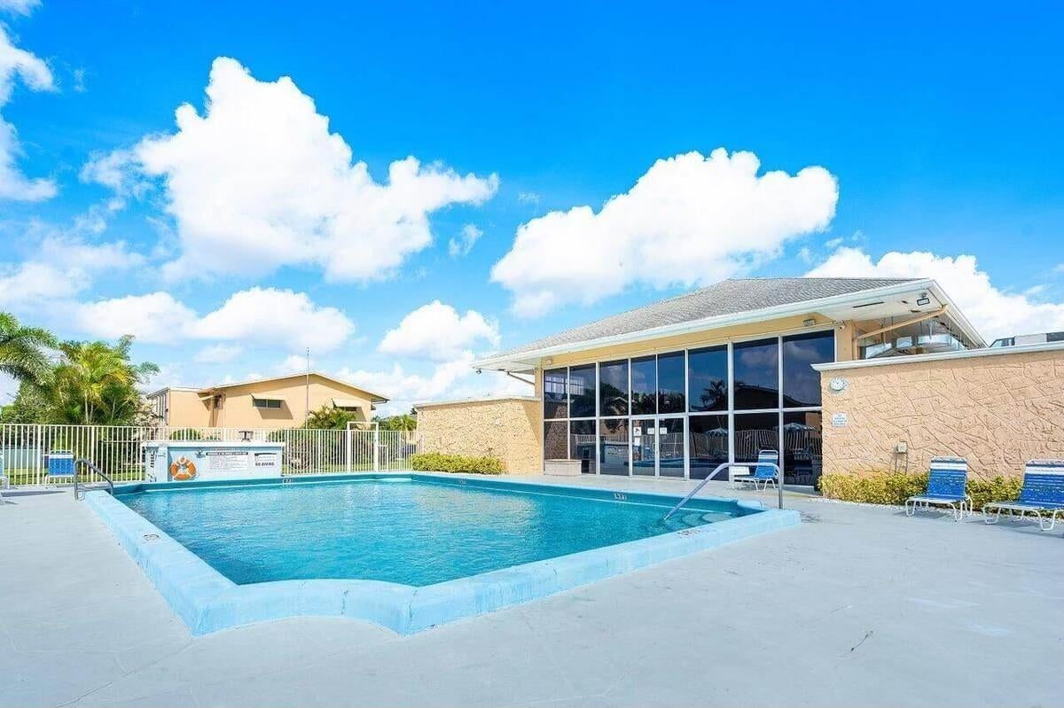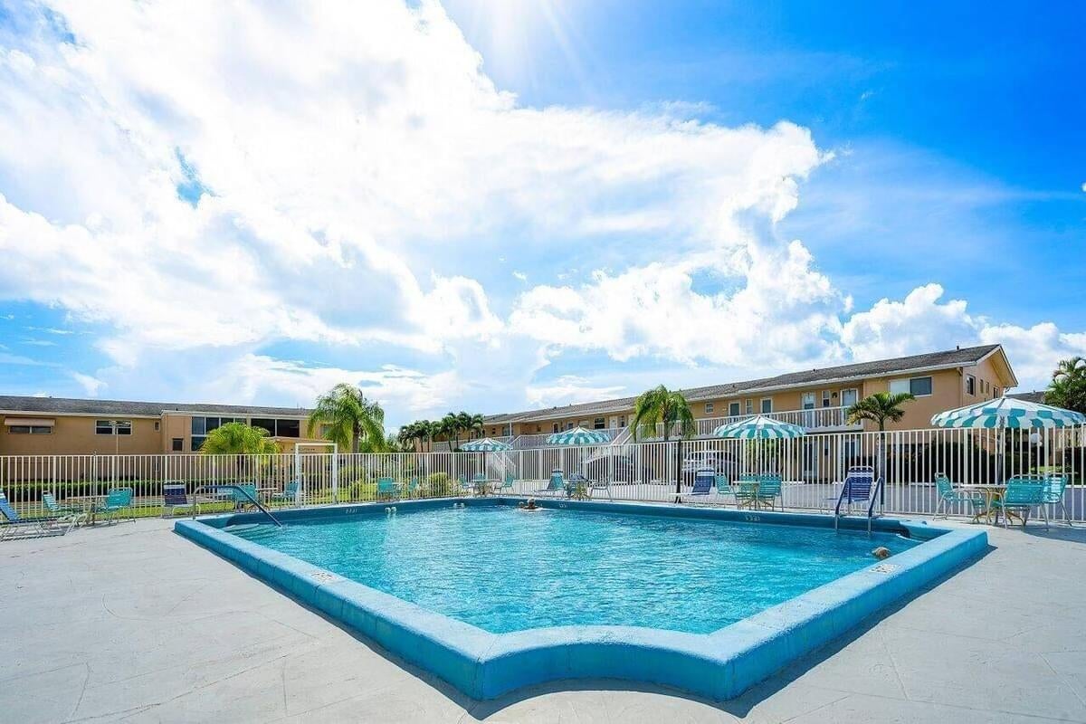 MOTIVATED SELLER! Welcome to this hidden gem at Village Royale! This vibrant 55+ community exudes old Florida charm and offers a variety of amenities for an active lifestyle, including a beautiful outdoor pool, a clubhouse, billiards, library, shuffleboard courts, and a BBQ/picnic area - and it's close to the beach! Once inside, you'll appreciate the modern and updated kitchen with white shaker cabinetry, granite counters and backsplash, stainless appliances and counter-height seating overlooking the living & dining areas. Other features include NEW hurricane impact windows in both bedrooms and kitchen, new flooring throughout, a contemporary color palette, sliding glass doors to the enclosed balcony with storage and full-size washer/dryer. This home is being sold fully furnished/turnkeyso you can start enjoying it right away. Perfect for year-round residents or those looking for a second home. Don't miss out on this wonderful opportunity to make this your own!